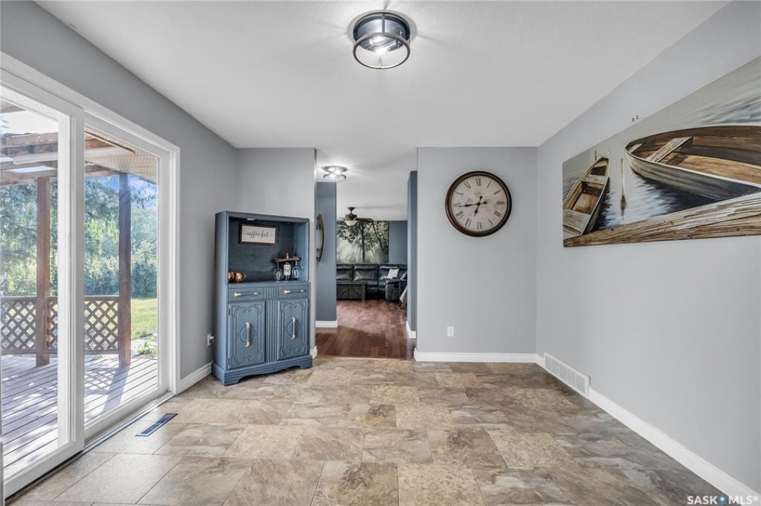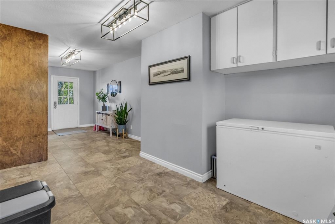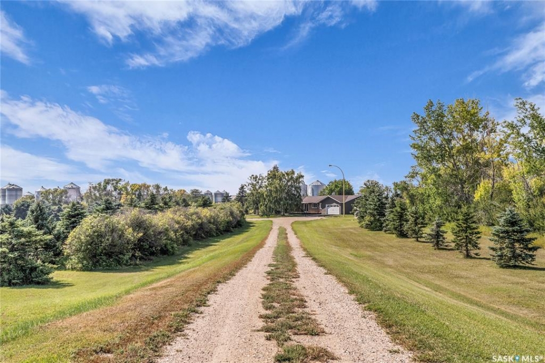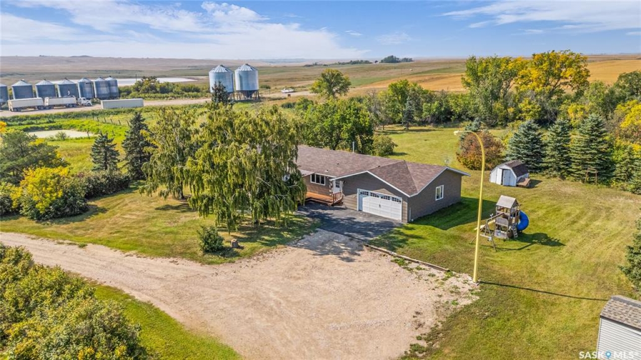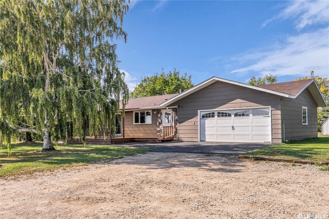 You will appreciate this family sized, country bungalow located SE of Allan and or SW of Young. This 10 acre mature treed yard site is a great place to raise a family or enjoy what country living has to offer. When you enter this home, you are welcomed to a spacious mud room with cabinetry and storage spaces for clothes and footwear. There is a home office off the mud room with a view of the backyard. The kitchen and open eating area is a great space to gather around the kitchen table. The island provides a great spot to prepare the meals. Sliding doors for quick access to the east facing deck from the dining area. Large living room and three spacious bedrooms, 5 piece bath (2 sinks) and a dedicated main floor laundry room with a sink and cabinetry. The basement features a large family room and an area for games, 3 pc bath, storage and utility room. The insulted attached garage with direct entry is a great benefit. Come and view this great property. You could be spending your next Christmas in the country?