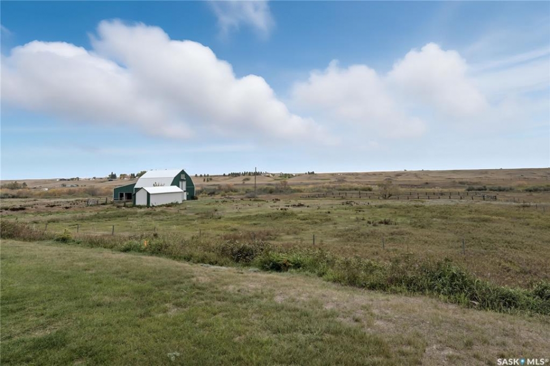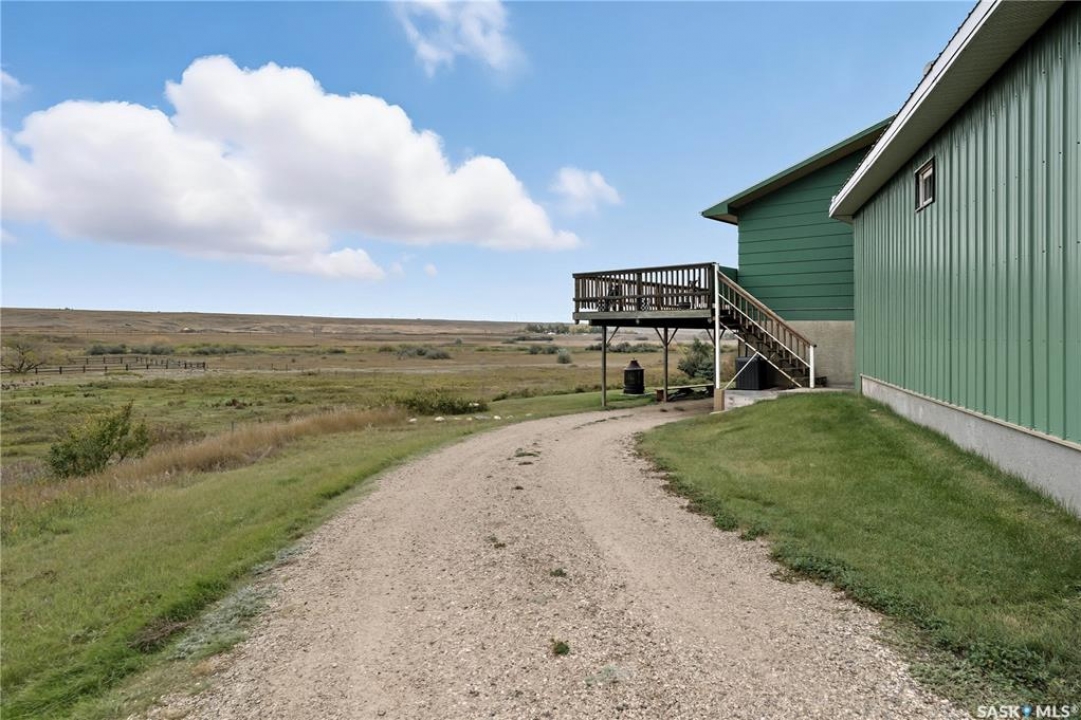 Exceptional Acreage Living – Just Minutes from Moose Jaw!! Discover the perfect blend of rural tranquility and modern convenience with this stunning 49.6-acre property, located only minutes east of Moose Jaw. Offering ample space and a thoughtfully designed home, this acreage is ideal for those seeking comfort, functionality, and the beauty of country living. This 1,334 sq. ft. bungalow features a spacious living room and an open-concept kitchen and dining area, creating a bright and welcoming layout. The home offers three comfortable bedrooms and three bathrooms, making it an ideal choice for family living, with a partially finished basement open for your design. Expansive north and south-facing decks provide the perfect setting to take in the prairie views, relax with your morning coffee, or host gatherings in every season. There is a 14 x 32 steel sided building perfect for all your storage needs down close to the barn. The Equestrian and hobby farm enthusiasts will appreciate the barn with six stalls, a fully usable loft area, attached horse shelter that are both sheeted with steel along with a large corral that was used in the past for outdoor riding arena. There is an automatic waterer at the barn along with a hydrant inside the barn to water all your animals. Acreage also offers endless potential for storage, livestock, or future development. A private well with sustainable water supply (and a filtration system), that you can use for your home yard and animals to complete this acreage's self-sufficient appeal. Whether you're looking for a family home with room to grow, a hobby farm, or simply the peace of the countryside within minutes of city amenities, this property delivers it all!! The exterior was painted last year.