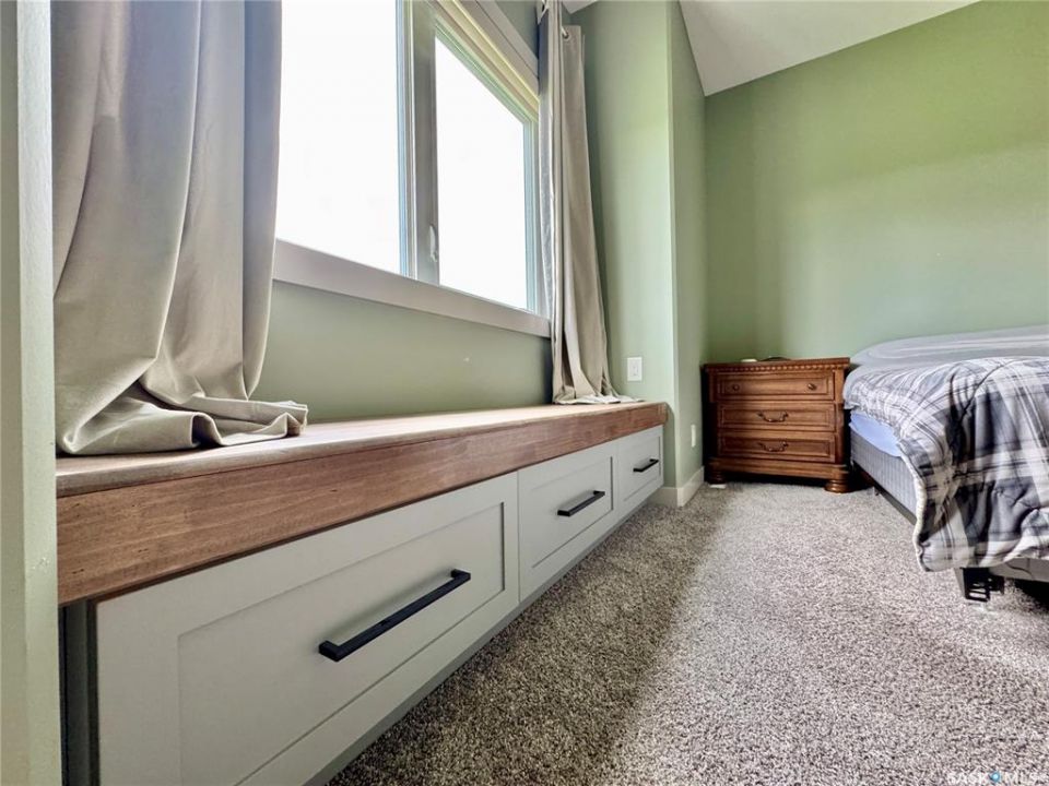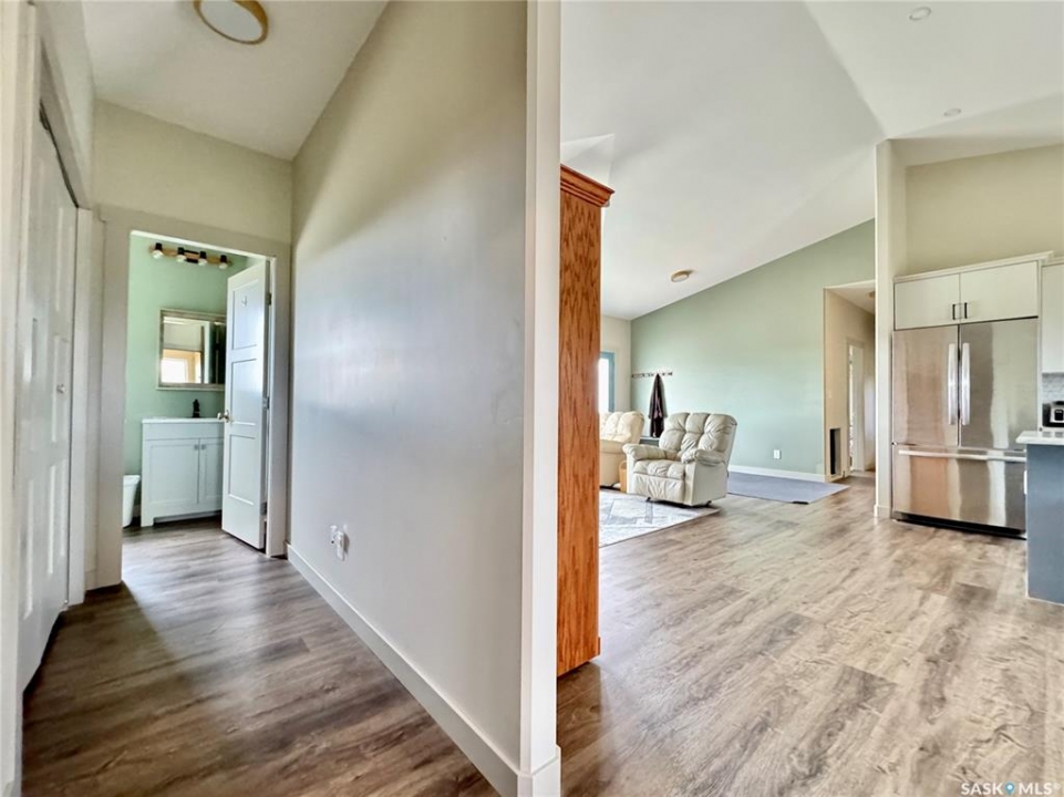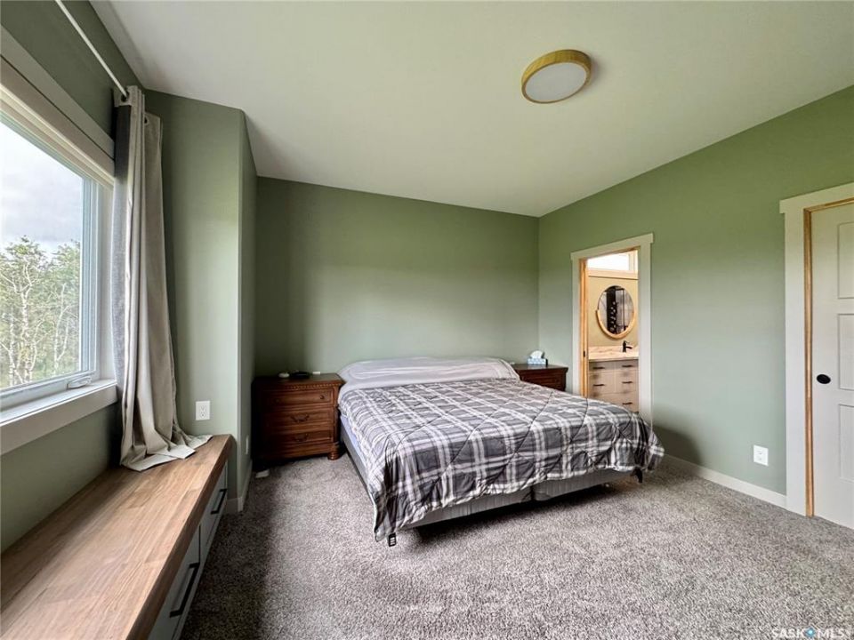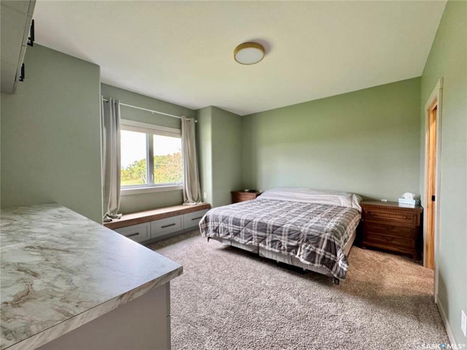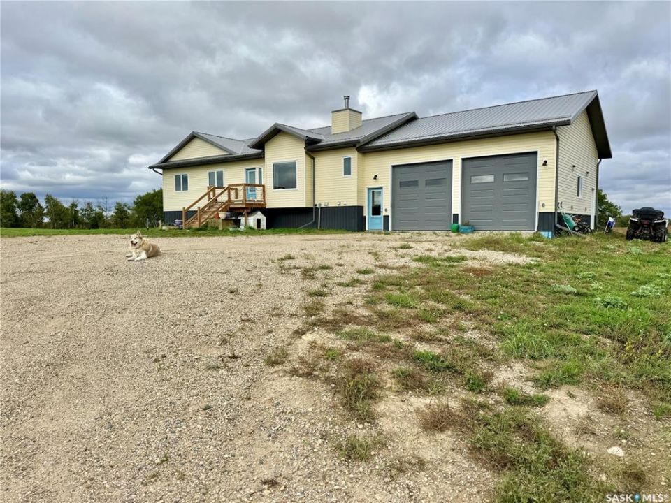 At Natures Edge Acres, nature and new construction come together in a way rarely seen in SE Saskatchewan. Tucked behind a mature shelterbelt where deer and songbirds wander, this 2022 custom build delivers more than 3,000 sqft. of exceptional living space—a chance to own a true countryside original without the wait of building. Designed from the ground up with family and entertaining in mind, the home offers 5 bedrooms and 4 bathrooms, plus a surprise you'll be talking about long after the showing: a 6th bedroom with a built-in slide right at the heart of the house. Whether it's kids at play or simply hauling heavy bags downstairs, the slide turns everyday tasks into something fun. The main living area wows from the moment you walk in. Vaulted ceilings and wall-to-wall windows capture prairie light from sunrise to those legendary Saskatchewan sunsets. A dramatic floor-to-vault river rock fireplace anchors the space—beautiful to look at and practical too, with settings that keep the home warm even if the power goes out. The chef's kitchen is ready for gatherings big or small, complete with a generous prep island, deep dovetailed pot drawers, and soft-close cabinetry. The sink frames tranquil eastern views while the west-facing picture window serves up nightly sunset shows. Built with modern efficiency in mind, the home features geothermal heating and cooling, weeping tile, excellent insulation, and spa-style ensuite showers. The electrical wiring has been thoughtfully planned—“overbuilt,” as the owners like to say—so you're ready for anything from a future basement bar with toe-kick lighting to advanced tech upgrades. Outside, the unfinished shop is already set up for big projects with a welder plug, 30-amp camper hookup, and doors tall enough for a lifted truck. Whether you're after a family retreat, a place to host unforgettable gatherings, or simply room to breathe, this acreage offers a rare combination of new-home comfort and Saskatchewan's natural beauty.
