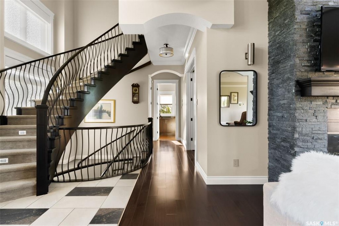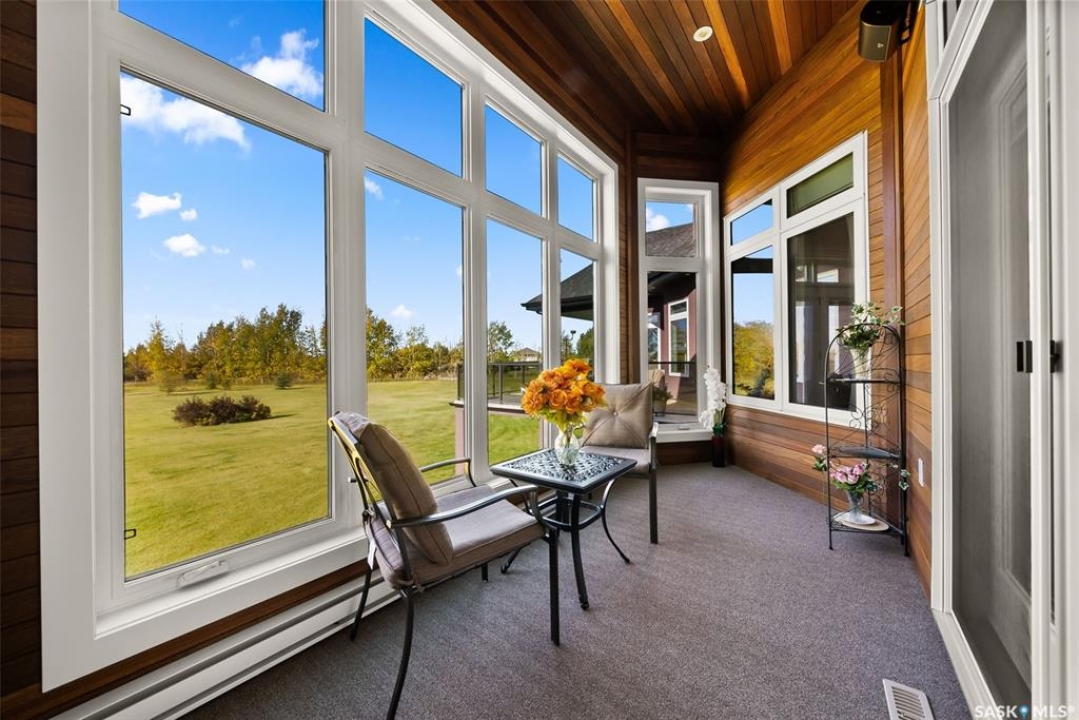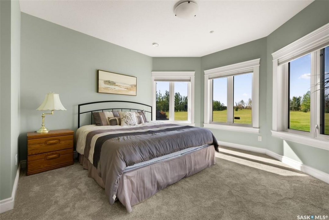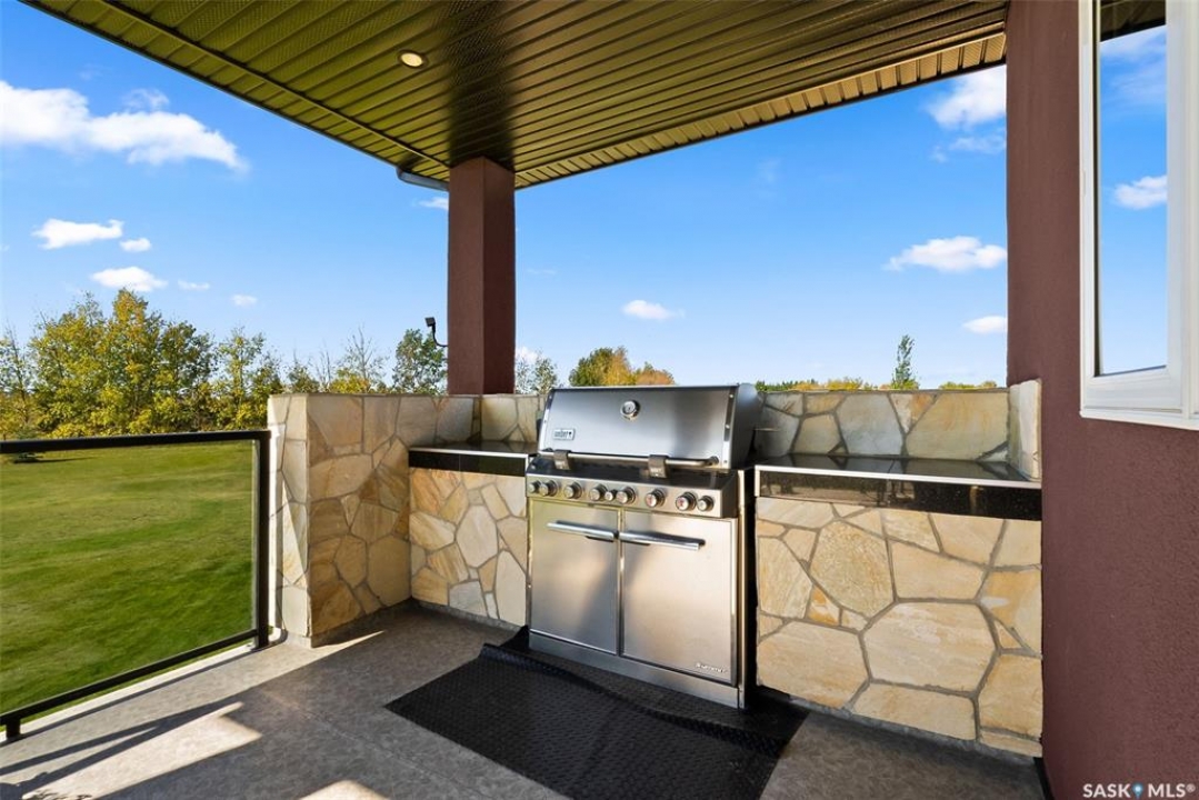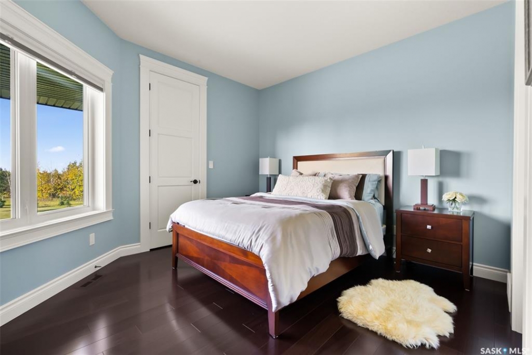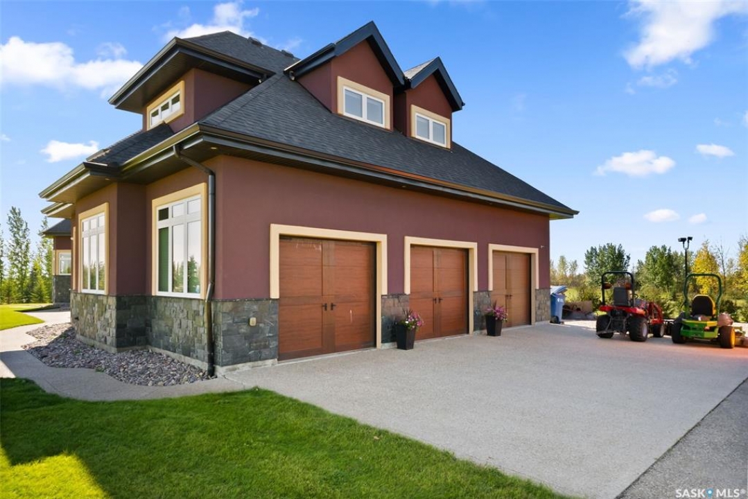 Step into unmatched luxury with this one-of-a-kind custom property, offering over 4,075 sq. ft. on the main and second levels plus a fully developed 2,500 sq. ft. walkout. Situated on 4.89 landscaped acres, this home blends elegance, comfort, and technology. A grand foyer with heated granite tile and a sweeping spiral staircase set the tone for the home's sophistication. The living room features expansive windows and a cozy gas fireplace, opening to the dining area with bar fridge and custom cabinetry. The chef's kitchen boasts Sub-Zero refrigeration, Jenn-Air appliances, walk-in pantry with heated tile, Culligan water filtration, and direct access to a three-season sunroom. The primary suite is a private retreat with cork flooring, his & hers walk-ins, spa-inspired ensuite with heated tile, Bain Ultra soaker tub, dual vanities, and a built-in mirror TV. Upstairs are 3 bedrooms and 3 baths, including 2 ensuites and a shared bath with tub/shower, plus a large bonus room. The walkout lower level includes a theatre with projector/screen, wet bar with wine room, exercise studio, sewing/office space, and an additional bedroom with ensuite. In-floor heat runs throughout, and 4 rooms offer direct backyard access. Smart home features include Savant automation for TVs, fireplaces, and blinds, Apple TV, Xbox/DVD integration, and 3 Shaw Direct satellite dishes. Bedrooms have blackout + lace blinds, while automated blinds are in the kitchen, living, and theatre. Additional highlights include heated mudroom tile, central vac with extra hoses, security with 8 cameras, fire sprinklers, and a heated 5-car garage with wheelchair-ready access. Outdoors, enjoy a multi-purpose sport court, solar-lit driveway, upper & lower decks with built-in BBQs, underground sprinklers, and wiring for a future hot tub. This property offers acreage living at its finest — a perfect blend of luxury, technology, and comfort in a private setting. Ask your REALTOR � for a full list of features!