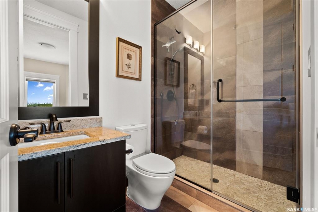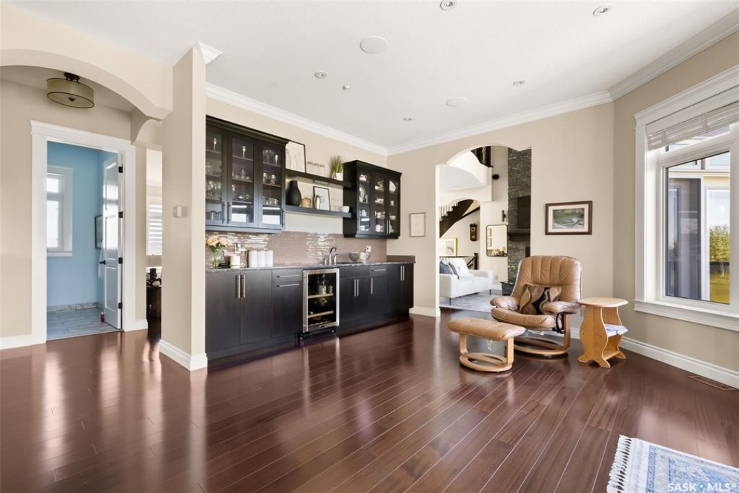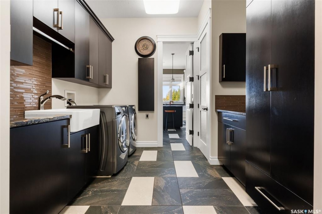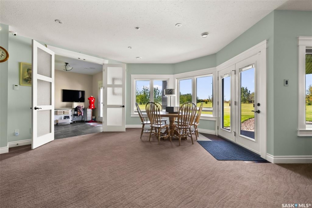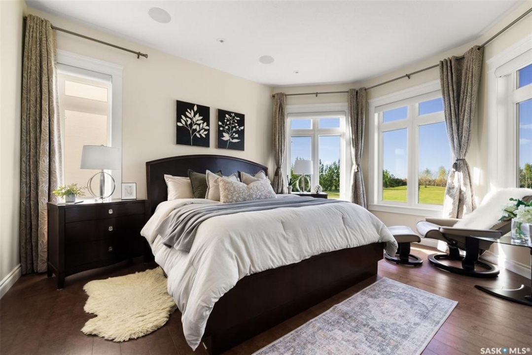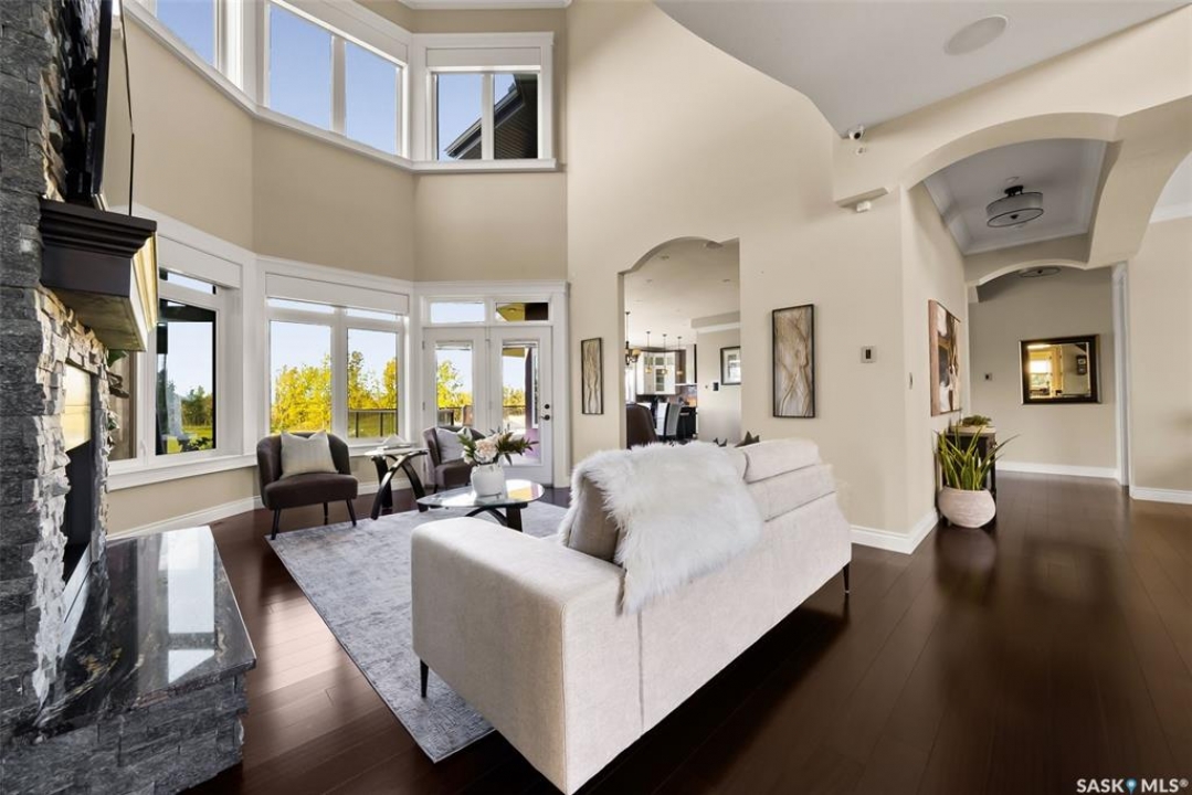 Step into unmatched luxury with this one-of-a-kind custom property, offering over 4,075 sq. ft. on the main and second levels plus a fully developed 2,500 sq. ft. walkout. Situated on 4.89 landscaped acres, this home blends elegance, comfort, and technology. A grand foyer with heated granite tile and a sweeping spiral staircase set the tone for the home's sophistication. The living room features expansive windows and a cozy gas fireplace, opening to the dining area with bar fridge and custom cabinetry. The chef's kitchen boasts Sub-Zero refrigeration, Jenn-Air appliances, walk-in pantry with heated tile, Culligan water filtration, and direct access to a three-season sunroom. The primary suite is a private retreat with cork flooring, his & hers walk-ins, spa-inspired ensuite with heated tile, Bain Ultra soaker tub, dual vanities, and a built-in mirror TV. Upstairs are 3 bedrooms and 3 baths, including 2 ensuites and a shared bath with tub/shower, plus a large bonus room. The walkout lower level includes a theatre with projector/screen, wet bar with wine room, exercise studio, sewing/office space, and an additional bedroom with ensuite. In-floor heat runs throughout, and 4 rooms offer direct backyard access. Smart home features include Savant automation for TVs, fireplaces, and blinds, Apple TV, Xbox/DVD integration, and 3 Shaw Direct satellite dishes. Bedrooms have blackout + lace blinds, while automated blinds are in the kitchen, living, and theatre. Additional highlights include heated mudroom tile, central vac with extra hoses, security with 8 cameras, fire sprinklers, and a heated 5-car garage with wheelchair-ready access. Outdoors, enjoy a multi-purpose sport court, solar-lit driveway, upper & lower decks with built-in BBQs, underground sprinklers, and wiring for a future hot tub. This property offers acreage living at its finest — a perfect blend of luxury, technology, and comfort in a private setting. Ask your REALTOR � for a full list of features!