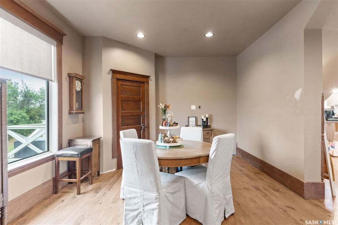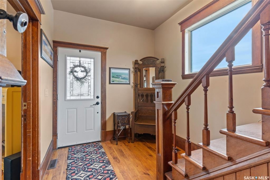 Welcome to this one-of-a-kind Eaton's character home, where classic charm meets modern living on a picturesque 13-acre estate near Lucky Lake. This meticulously restored property invites you into a world of timeless elegance, from the inviting wrap-around deck to the expansive, tree-lined yard that offers complete privacy and tranquillity. Originally relocated to its current location with a brand-new basement in 2007, this home has undergone extensive updates, including newer plumbing, wiring, and windows, ensuring that the historic beauty remains while offering today's modern conveniences. The spacious kitchen, remodelled with maple cabinetry in 2008, is a cook's dream, perfectly designed for creating memorable meals. The main living area, with large windows and 10-foot ceilings, floods with natural light, offering breathtaking views of the countryside. Upstairs, the primary suite is a peaceful retreat, complete with a cozy loft space, ideal for quiet moments or creative pursuits. The fully renovated basement, with 9-foot ceilings, provides ample space for a home gym, family room, or guest quarters. The updates continue with a high-efficiency furnace (2015) and a 2022 on-demand hot water tank for added comfort. Step outside to experience the full beauty of this property. The covered and uncovered portions of the deck are perfect for savouring the peaceful sounds of nature or watching the sunset over the rolling hills. For those dreaming of country living with modern amenities, this acreage is fully fenced for livestock and features both a pond and a dugout. An old barn and woodworking shed add even more character, while the meticulously tended gardens offer endless potential for the green thumb. With natural gas heating, municipal water, and paved access right to the property, convenience is at your fingertips. Schedule your viewing today and experience firsthand the charm, history, and peace that await you at this extraordinary acreage home!