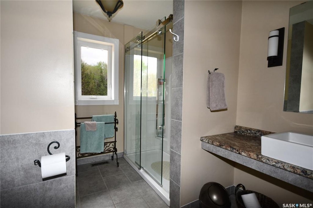 Expansive ranch-style home boasting over 4,500 sq. ft. on the main level, featuring 5 bedrooms—each with its own ensuite bathroom—plus 2 additional bathrooms. This charming home includes a luxurious chef's kitchen and an 800 sq. ft. suite of equal elegance. The original home was built in 1989, with seamless additions of 2,000 sq. ft. in 2010 and another 1,100 sq. ft. in 2022. Nestled amidst serene forest surroundings, this retreat sits just 1.8 km from pavement on 154 acres, close to lakes, numerous recreational attractions, and the vibrant resort town of Big River. A stone fireplace warms up to 2,000 sq. ft., complemented by wood and propane furnaces, with Generac power backup in place. Whether for a large family, a business opportunity—which the current owners have established as an income producing Bed and Breakfast—or a personal sanctuary, this home fulfills every need. The open basement awaits minimal finishing. The 800 sq. ft. suite offers an aging-in-place design with double vanity sinks, an age-friendly shower and toilet, laundry facilities, a kitchenette, and a scenic backyard view. Covered decks at the front and back enhance entertaining possibilities, while a water filtration system ensures pristine drinking water. The chef's dream kitchen boasts double ovens, ample fridge and freezer space, expansive countertops, and abundant storage, complemented by outdoor perennials, fruit trees, perennial berries and vegetable garden. Details regarding the sturdy construction and excellent insulation—as well as outbuildings (24'X32', 20'X20', 8'X8', 12'X26') —are available upon request for serious, pre-qualified buyers. Viewings require reasonable advance notice and promise to impress!