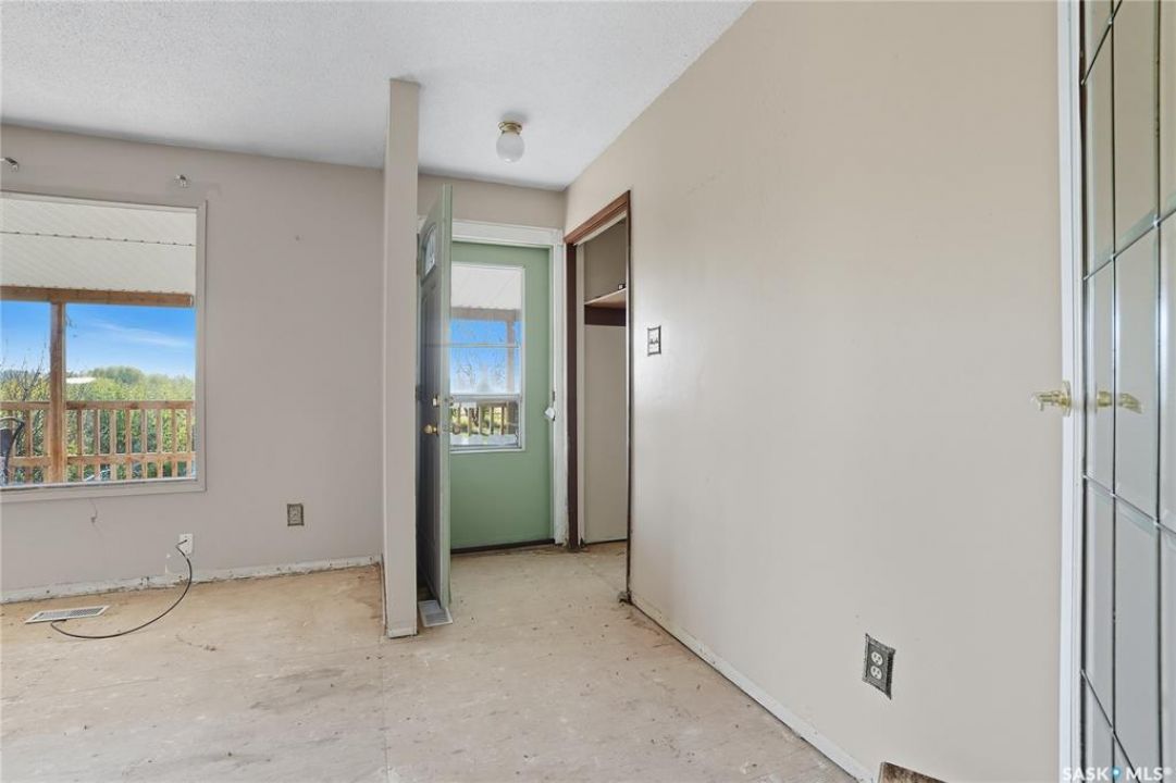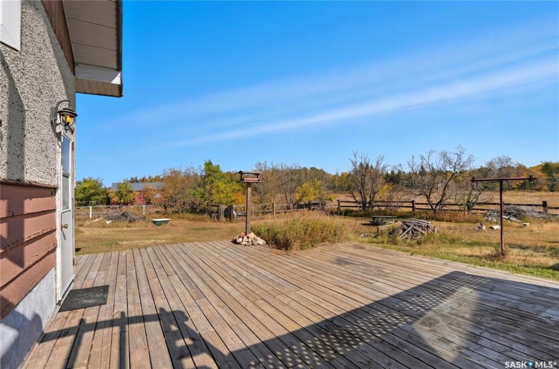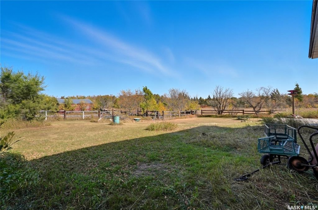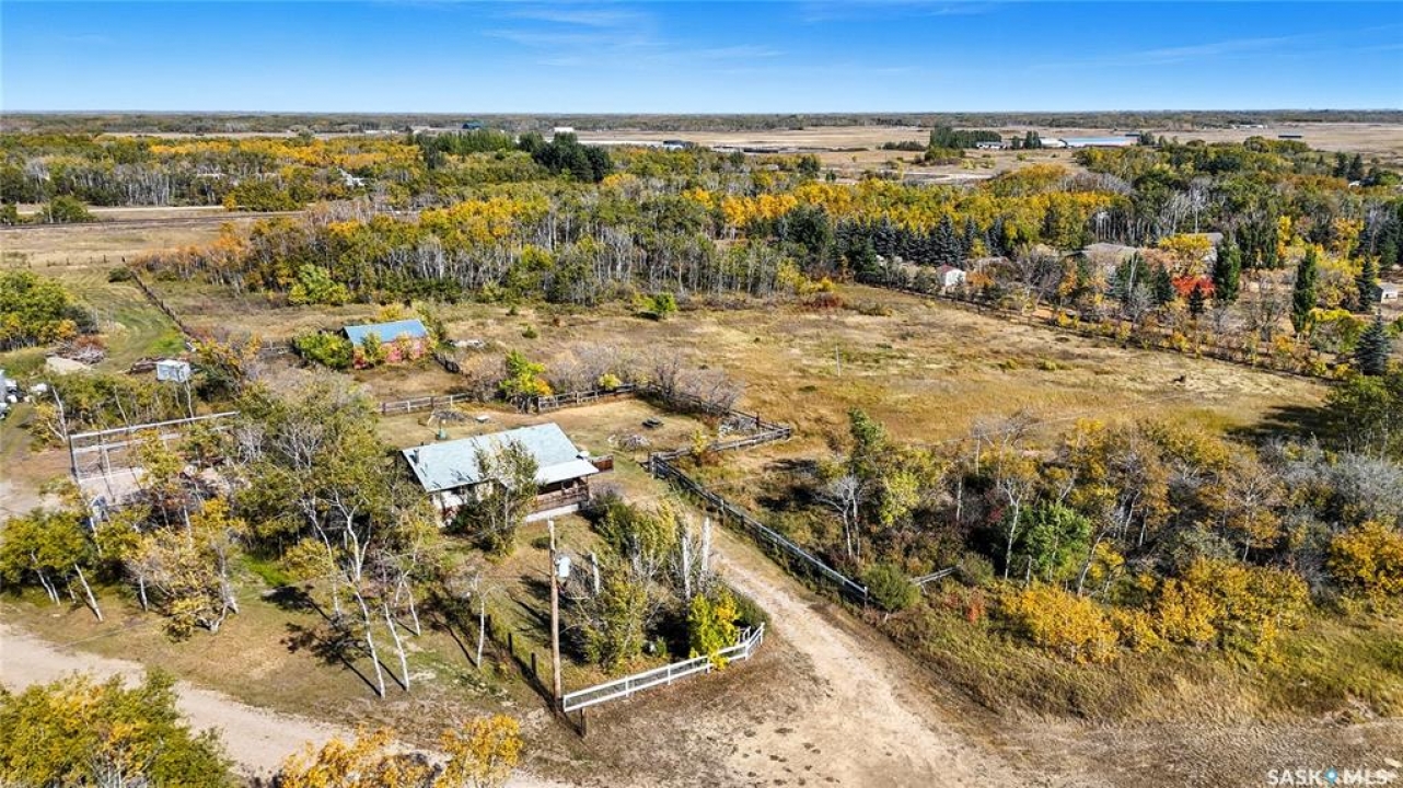 Don't miss out on this unique opportunity to own 4.6 acres less than 15 minutes west of Saskatoon! This bungalow is 1008 square feet with 3 beds + a den, and 2 bathrooms. This home may need some TLC, but its solid structure and spacious layout offer a good foundation for your dream renovation. Even diamonds start out a little rough! The main floor features a large living room adjacent to the kitchen and separated by a partition wall. This wall could potential be removed to create an open concept that totally revitalizes the space! There are three bedrooms on the main floor and a large 3 pc bathroom. The basement of the home is a literal blank canvas as you can see everything is white. Downstairs you'll find a large open living area - a den that could be used as a bedroom - and a 2 piece bathroom. The possibilities are endless with this place especially when you consider the yard that you're getting! Isn't that why you move to an acreage in the first place?! The yard has some established fences that could be used to contain a horse or two. The parcel is thick with trees and bush and invites exploration with adventure. There are already a few trails that wind through the property, but there's ample space to carve out new ones and make the land truly your own! The property is located walking distance from Sandy Ridge Gas Station which offers amenities and of course, delicious ice cream and fresh baking. This property is meant for someone, and that someone could be you! Don't hesitate, call your Realtor immediately and book a showing!