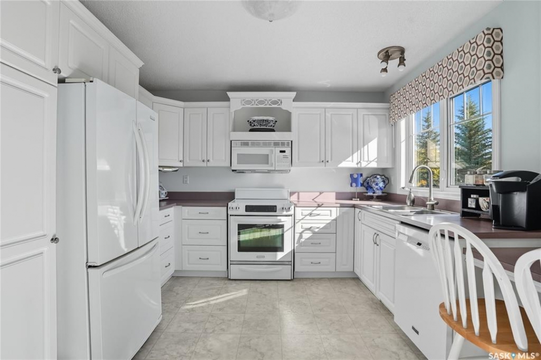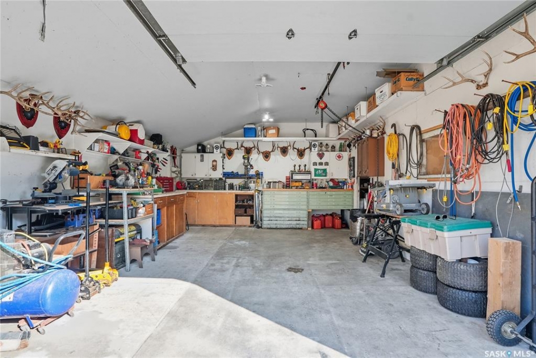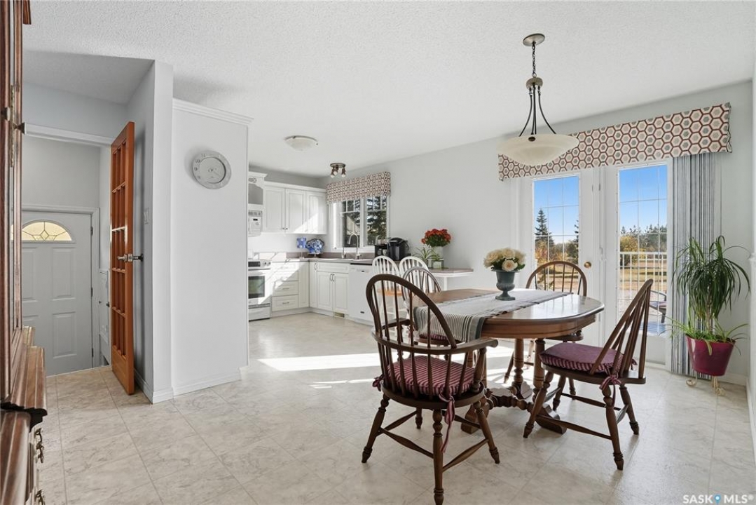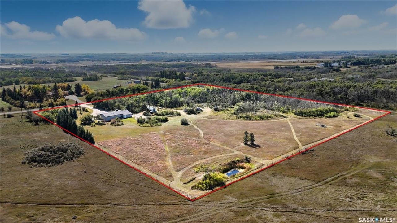 This beautiful family acreage is located right off Highway 14, only 10 minutes west of Saskatoon and nearby shopping. Sitting on 10 acres of land that could be subdivided - this 1392 sq ft raised bungalow offers space, privacy and adventure. Trails wind through the trees and bush, giving you and your family the chance to enjoy dirt biking, quadding, snowmobiling, or even horseback riding right on your own property! The 24'x42' triple car attached garage/shop features 10' ceilings, a spacious work area, and plenty of shelving and storage for tools and toys. Inside the house, you'll feel the character the moment you walk in. The bright living room welcomes you with south-facing windows that flood the space with natural light throughout the day. In winter, the passive solar gain helps keep things cozy, and the wood-burning fireplace adds warmth and charm on a cold winter day. The kitchen is open and functional, with lots of cabinet space and room to host family meals and get-togethers. Just off the kitchen, you'll find a 2-piece guest bath and a convenient main floor laundry room. The main floor also features three big bedrooms and a 3-piece bathroom. Downstairs, the fully developed basement offers two more bedrooms, a large living area, and oversized windows that brighten the space and make you forget that you're in a basement. There's room for a games area, TV room, kids zone, or even a pool table! There are also multiple storage rooms and a utility space that will help keep you organized. The property is serviced with natural gas and electricity, and includes a cistern for water that can be easily filled by hauling your own city water, or by delivery. The septic system consists of a concrete holding tank and a grey water pump out. Don't worry about getting the kids to and from school in Saskatoon, because school buses pick up right at the driveway! This acreage is the perfect place to call home and improve your lifestyle and quality of living - book a showing today!