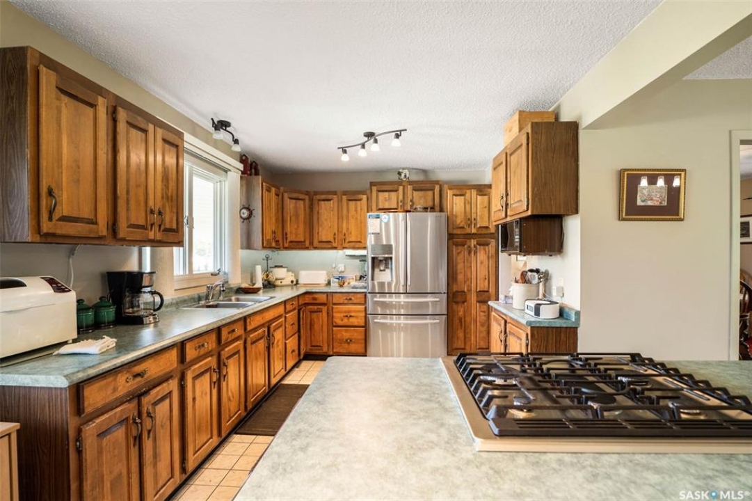 153.84 Acres with a Large Ranch Style Bungalow a Mature yard well Treed with a Park like setting. Only 1 mile from Aberdeen that features K-12 School Shopping A Rec Centre. The Farmyard Features a large Arch Rib Shop and outbuildings School Bus Available to driveway and has City Sourced water and additional well and Dugout .