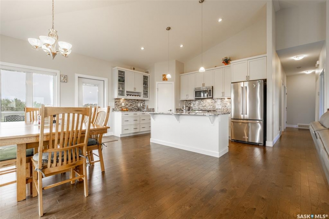Welcome to 118 Louise Crescent in the coveted acreage community of Cherry Hills — just 15 minutes from Saskatoon's edge. This 1,502 sq. ft. executive bungalow is a stunning blend of modern design, smart functionality, and country charm. Step inside to discover a bright, open-concept main floor with an exceptional window package that floods the home with natural light. The spacious living room, dining area, and kitchen flow seamlessly under a vaulted ceiling, creating the perfect setting for entertaining or relaxing. The kitchen features quartz countertops, a corner pantry, roll-out drawers, stainless steal appliances. The dining room can easily seat a large extended family for holiday meals and the gas fireplace in the adjoining living room makes for cozy evenings. Hardwood runs throughout the main level, and a covered deck off the dining area allows for year-round BBQ. The primary suite is a lovely retreat, offering a large walk-in closet and an ensuite with a soaker tub beneath a privacy rain-glass window, heated floors, and a walk-in shower. A 2nd large bedroom (or office), another 4-piece bath, and a spacious mudroom/laundry room with built-in cabinetry, quartz countertops, and deep utility sink complete the main floor — all leading to an oversized triple-car garage with a separate workshop bay and a sunlit all-season greenhouse.The fully finished basement features a large family and games area, 2 more bedrooms, 4-piece bath, and a vented cold storage room perfect for preserves or wine. Outside, the 7.14 acre property is 3/4 fenced with treated rail fencing, hotwired, & divided into five paddocks with a 4-season watering bowl sourced by underground lines. Mature spruce trees border the property, and there's a drive-in garden shed, an adorable matching horse barn, and 2 fully developed gardens with direct waterlines. Complete with central air, central vac, and window coverings, this Cherry Hills acreage offers comfort with country serenity — a truly rare find.