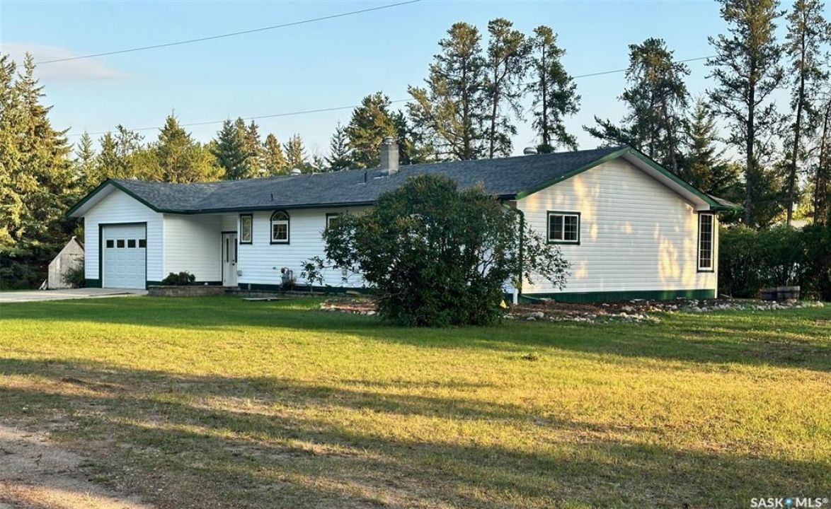 Welcome to this beautiful acreage offering 3.64 acres of peaceful living just a short walk from town. Set back from the road for extra privacy, this property perfectly balances country tranquility with in-town convenience. Enjoy natural gas heat, excellent water, and sandy soil ideal for gardening and landscaping. Across the highway, you'll find the 9-hole golf course, making it easy to enjoy a round whenever you like. The home features 3 bedrooms and 2.5 bathrooms, an attached garage, and a spacious mudroom with walk-in closets for added functionality. Great space for book bags, hockey bags, boots and coats etc. Inside, you'll appreciate the hardwood floors, custom oak kitchen, and oak baseboards, all adding warmth and timeless character. Step through the garden doors to a large two-tiered deck, surrounded by mature trees that create a private and peaceful setting. A heated shop provides ample room for projects, hobbies, or extra storage. As well as the shop there is an additional 2 car detached cold storage building. If you've been dreaming of a property that offers space, serenity, and convenience, this acreage has it all. Call today to schedule your private viewing!