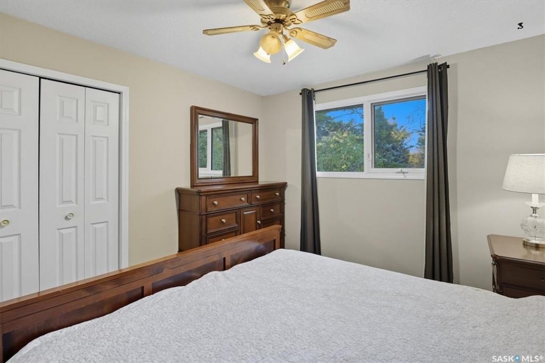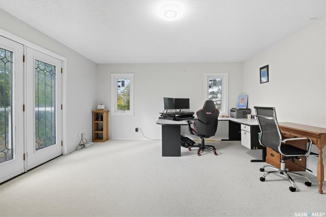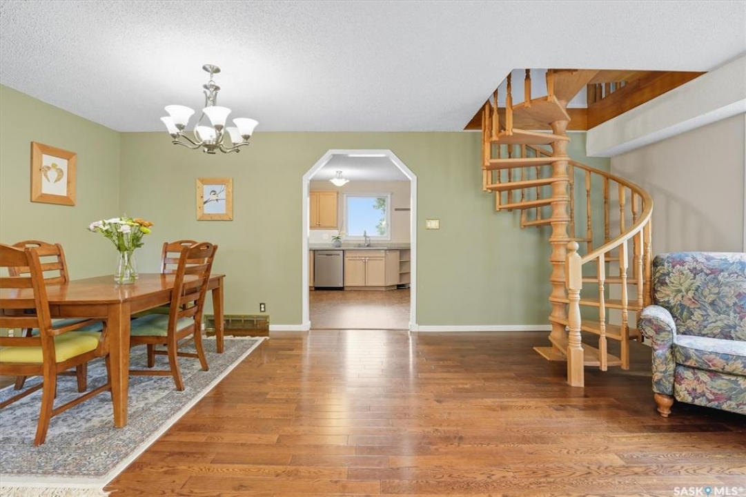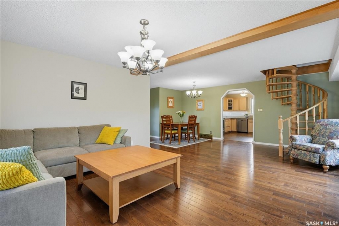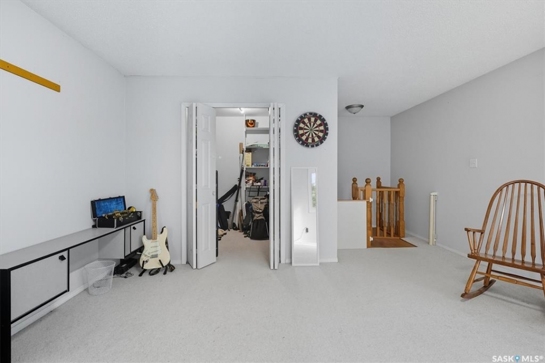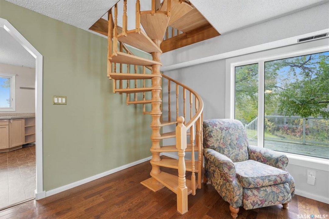 Acreage living just 7 minutes from Saskatoon! Welcome to 203 Spur Way in Saddle Ridge Estates — a charming 1.5-storey home on 4.99 acres in the rolling hills. This 4-bedroom, 2-bath home offers warmth, functionality, and space to grow — inside and out. The main floor features hardwood floors, a spacious kitchen with quartz counters, soft maple cabinetry, and matching appliances. The living room flows to the deck through patio doors, making entertaining a breeze. Cozy up downstairs by the gas fireplace, or retreat to the stunning loft bedroom via the oak spiral staircase, complete with Juliette balcony. Enjoy updated central A/C, windows and front door (all within the last 2 years), and a triple attached garage. The acreage includes a barn with box stall, water, tack room, and loft — perfect for horses, storage, or a studio. Now for the showstopper: a thoughtfully planned food forest with 25+ varieties including apple, plum, cherry, pear, grape, haskap, raspberry, kiwi, seabuckthorn, hazelnut, herbs, strawberries, and even asparagus. Over 70 haskaps, 65 asparagus, and dozens of fruit trees, all mulched, edged, and connected by a line watering system. A fenced 200m � no-till garden produces enough vegetables for full seasonal self-sufficiency. Serviced with city water, septic mound, Fiber Optic internet with Prairie Crocus, school bus access to Clavet, and fully paved development - this property offers a rare blend of rural privacy and urban access. Acreages like this — with natural abundance, modern comfort, and easy commuting — are truly one of a kind.