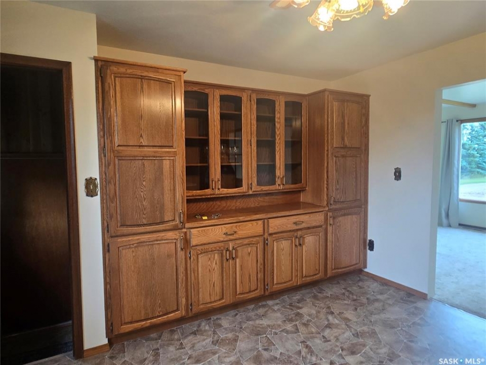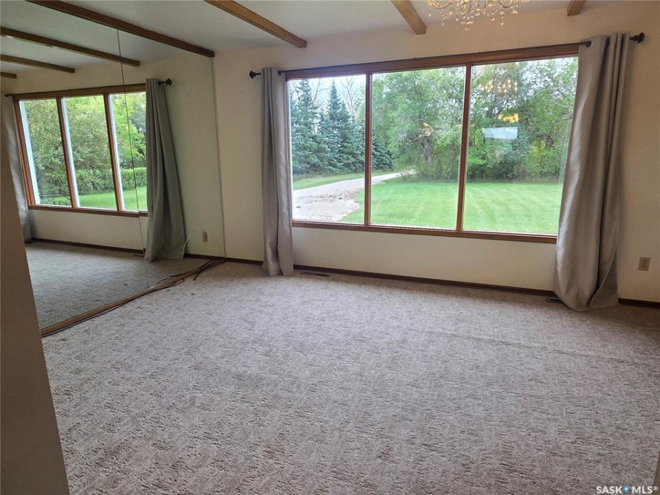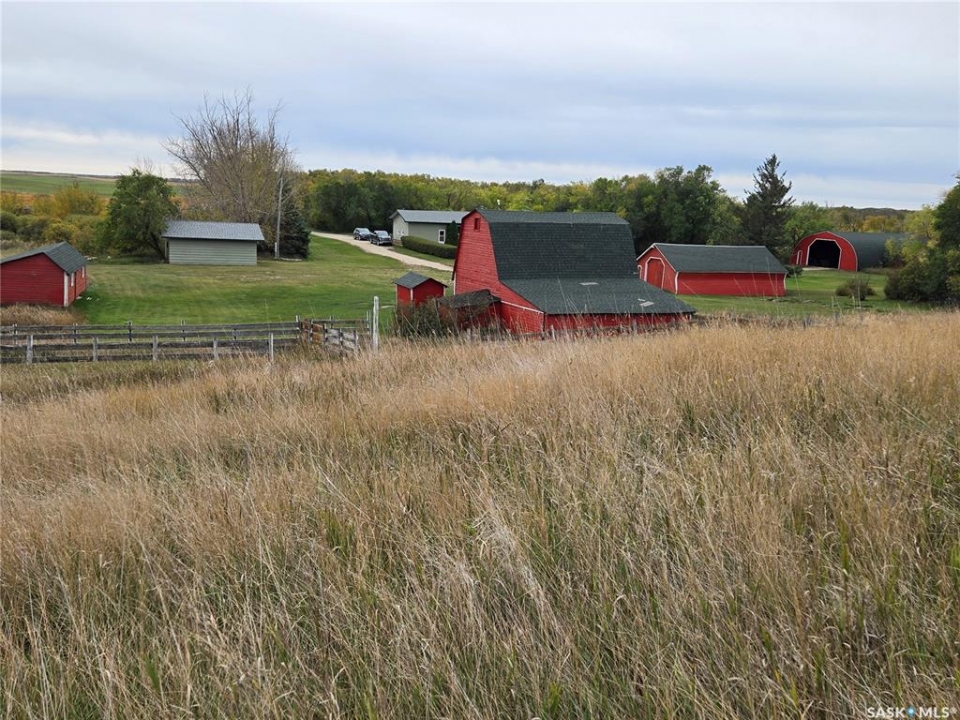 Nestled within the quiet countryside of the RM of Grayson No. 184, the Kuntz Acreage offers the perfect blend of rural charm, space, and functionality. Situated on 15.25 acres of beautifully sheltered land, this six-bedroom bungalow provides room for family, hobbies, and the serenity that only country living can bring. Step inside to find a welcoming main floor featuring a bright, open-concept kitchen and dining area, complete with solid oak cabinetry and plenty of counter space for cooking and gathering. The spacious living room invites relaxation with its generous size and cozy atmosphere. Down the hall, you'll find five comfortable bedrooms on the main floor, offering flexibility for family, guests, or home office use, along with a 3-piece bathroom conveniently located nearby. The fully finished basement adds even more living space, featuring a large family room, an additional bedroom, and a utility area with ample storage and workspace. The home's systems include electric and oil-forced air heating, a central vacuum system, reverse osmosis water treatment, and softener, ensuring comfort and practicality year-round. Outside, the acreage truly shines. A lush mature shelter belt surrounds the property, offering privacy and protection. The beautifully maintained yard includes fruit-bearing trees—apple and saskatoon—along with raspberry and haskap bushes, a large garden area, and a greenhouse for extended growing seasons. There's plenty of space for equipment, recreation, and outdoor projects, with a gravel driveway, attached single garage, garden shed, and open parking. This property backs onto open fields, providing stunning prairie views and an unmatched sense of peace. Conveniently located just a short drive south of Melville and near the community of Grayson, the acreage offers both seclusion and accessibility. If you're dreaming of country living with room to grow, garden, and enjoy the outdoors, the Kuntz Acreage could be your perfect match.