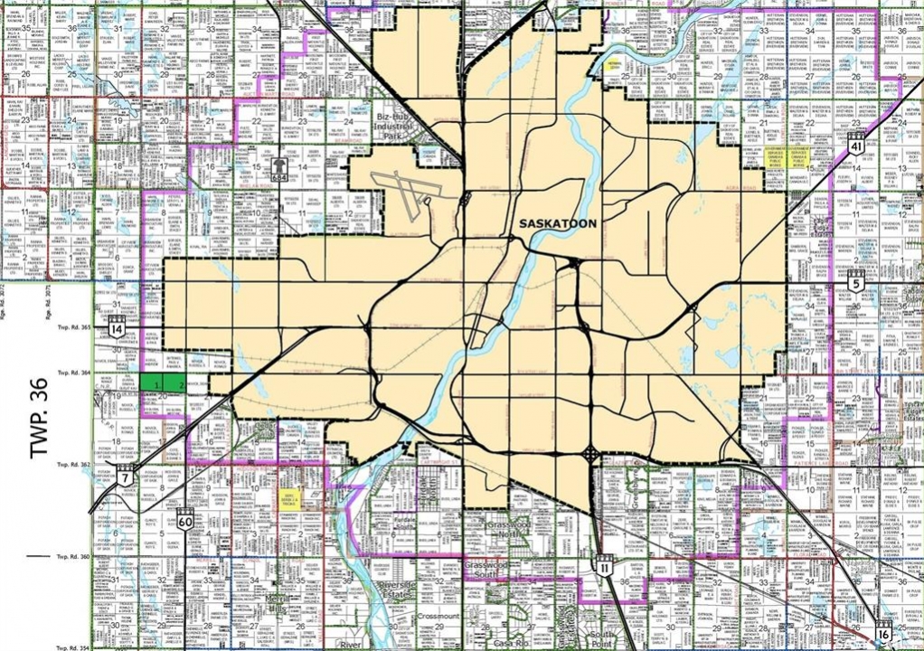 265 Acres – Prime Farmland & Former Feedlot – Just West of Saskatoon, SK An exceptional opportunity to acquire 265 acres of grain farmland located just � mile from the west boundary of Saskatoon. This versatile property offers agricultural potential, valuable infrastructure, and a prime location for investment or development. This property is ideal for continued agricultural use, agribusiness expansion, or investment purposes. With city water, rail access, and proximity to major industrial operations, this is a rare find near Saskatoon. Property Highlights: • 265 acres currently in grain production; historically used as a feedlot. • Independent city water line to the property. • 3-phase power available adjacent to the land. • CN Rail line borders the south side of the property – ideal for logistics or agribusiness. • Located just south of DG Global West Inc., and only 1.5 miles from the PotashCorp mine entrance. • Paved access from the north via Twp Rd 364. • Excellent proximity to Saskatoon – easy access via 11th Street West and Hwy 7. Residence & Outbuildings: • Bungalow Residence (1,274 sq. ft.), built in 1940, includes a 17.5' x 27' attached garage. • Red Barn / Shop (40' x 90' plus 27' x 14' addition), asphalt shingles, cement foundation & floor, 110V and 220V power, propane forced-air heat, divided into 4 main floor rooms, with solid upstairs loft designed for heavy storage, reinforced metal-sheet flooring – ideal for equipment or grain storage • White Barn (34' x 128'), asphalt shingles, cement floor, includes power and partial hay loft • Guard House (20' x 20'), stucco finish, metal roof, power, currently used for storage Numerous additional outbuildings, corals, and cement slabs provide flexibility for livestock, equipment, or future development (no added value).