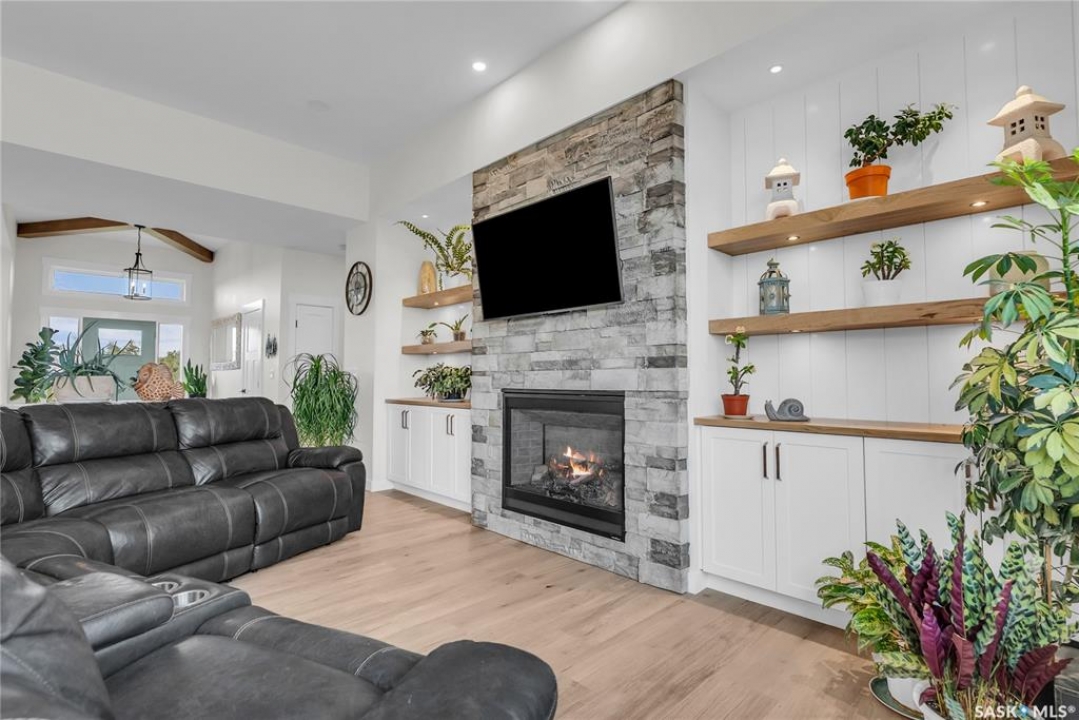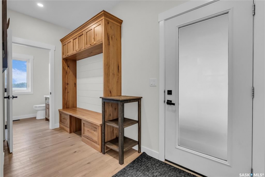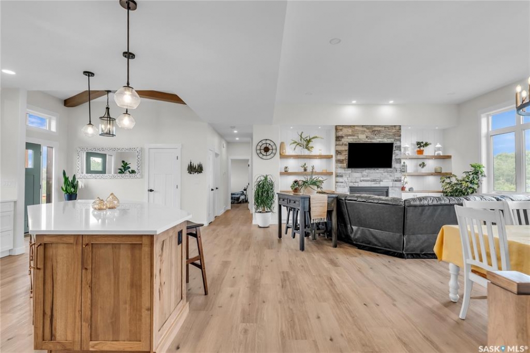 Rare opportunity with this beautiful acreage just minutes south from Saskatoon situated on 69.54 acre's & located just off Merrill school road right beside Merrill school! This peaceful paradise offers the privacy & tranquility of country living, just 7 minutes to circle drive in Saskatoon, close proximity to the popular Berry Barn, a community center, a rink, a heated ice shack in the winter as well as school bus pickup right at the property to many schools in Saskatoon. This one of a kind 1832 sq.ft raised bungalow, Energy Star Certified home features a triple attached garage & shop! The attached shop has a 12 ft. overhead door with 14 ft ceilings, in floor draining, room for 4 vehicles & a future vehicle lift! The exterior of the home has Hardy plank siding, an 8x22 front deck as well as a concrete walkway/patio area. The home features triple pane windows, insulated concrete floors in the garage & basement, an ICF foundation, 14 inch walls, R50 insulation in the attic & energy efficient utility bills. The main floor is inviting with 11” ceilings, vinyl plank flooring & a stunning kitchen that is open to the dining/living area! The kitchen features a large island, quartz countertops, tile backsplash, black stainless steel appliances, a hood fan that vents directly outside & a butler's pantry with sink built in. The Great room has a beautiful gas fireplace with brick surround. There is a commercial grade water heater & reverse osmosis system as well as a rough in for a future wet bar. All services were newly set up in 2022; (1000 Gal Septic tank, Septic field, Well - 50 feet & 40 gal per min). The current zoning of the property allows for a large detached shop or Quonset, & this perfect family acreage comes complete with a firepit, a water softener, central air conditioning, central vacuum, natural gas bbq hookup, all appliances & many Saskatoon berry bushes. Subdivision is a possibility in the future & any remaining SK New Home warranty can be transferrable.