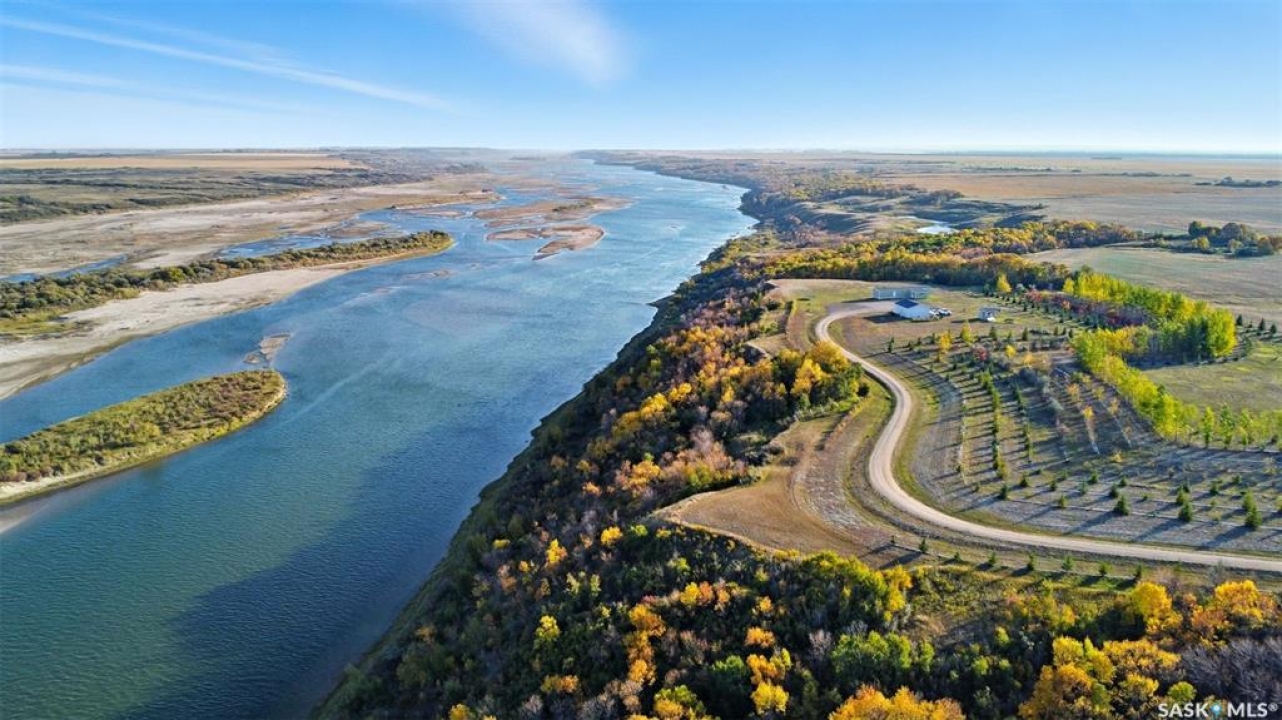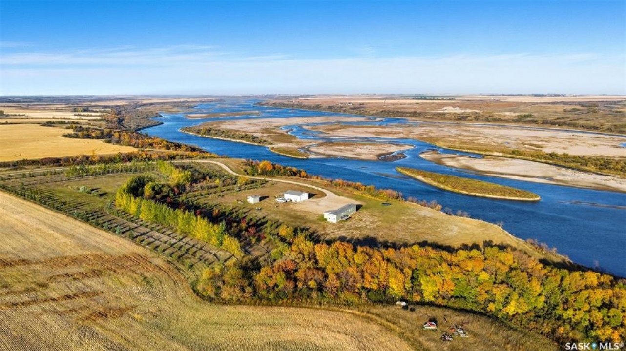 Just north of Outlook, Saskatchewan, this extraordinary property offers the perfect combination of riverfront property, and luxury country living. Spread across 22 acres of private riverfront property along the South Saskatchewan River, it's an unparalleled opportunity to create the lifestyle you've always dreamed of. Imagine waking up to breathtaking river views and stepping outside to enjoy direct water access. Whether you build your dream home, or simply savor the wide-open spaces and peaceful views, this property delivers. The 22-acre riverfront parcel provides the perfect canvas to build your dream home, while a 1,200 sq. ft. mobile home allows you to move in immediately. Enjoy modern conveniences and extra space with a massive 24 x 32 double detached garage, perfect for vehicles, equipment, or a workshop. For relaxation and luxury, the property also features an outdoor wood-burning sauna, the ideal retreat after a day on the land or by the river.