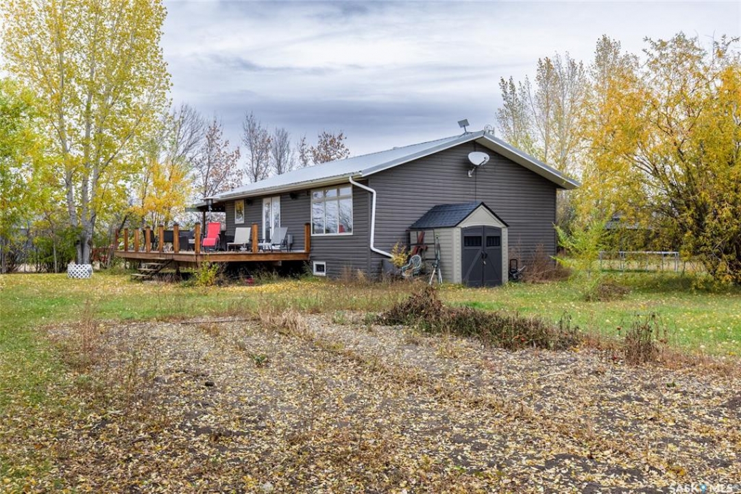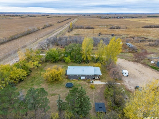 Just five minutes North of Mortlach, this 40-acre property is a fantastic opportunity for hobby farmers, ranchers, or anyone looking to enjoy a rural lifestyle with room to grow. The land is set up for livestock, featuring two bison pens secured with 5-wire fencing and a massive quonset that offers plenty of space for machinery, equipment, or feed storage. You'll also find a variety of established fruit trees and berry bushes, including apple, plum, cherry, and raspberries. The well-kept bungalow offers comfort and functionality, with a wrap-around deck to enjoy prairie views and a thoughtfully updated interior. The main floor includes a mudroom entry, updated kitchen, dining area, living room, two bedrooms, and a 4-piece bathroom (with in-floor heating). Downstairs, the mostly finished basement features a large family and games room, laundry/utility space, and a generous primary bedroom with walk-in closet and 3-piece en suite. Whether you're looking to raise animals, enjoy wide open space, or settle into country living with modern comforts, this property delivers!