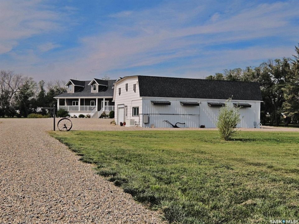 This stunning 2,298 sq. ft. executive bungalow, built in 2015, offers exceptional quality, modern comfort, and country living at its finest. Designed with attention to detail and built to impress, this home combines luxury finishes with practical features, all set on a beautifully developed 14-acre property, located directly across the road of the west side of town limits. Inside, the home features an open and inviting layout with two spacious bedrooms and an optional third, along with a main floor office and laundry for ultimate convenience. There are 3.5 bathrooms, including a luxurious 5-piece ensuite off the primary bedroom complete with double sinks, a soaker tub, and separate shower. The fully developed basement, built with 9-foot ICF walls, provides generous living space ideal for family recreation or entertaining. The attached 1,398 sq. ft. heated garage is fully finished, offering ample room for vehicles, hobbies, or storage. Outside, the property is equally impressive — a fully fenced 14-acre yard with a keypad remote entry gate ensures both privacy and security. The yard is beautifully landscaped with approximately 1,200 planted trees, all supported by a drip irrigation system. A Generac generator provides full-yard backup power, adding peace of mind in any situation. Additional features include central air, central vacuum, a hot tub, and several outbuildings — including a 60x100 canvas-covered storage building, a quonset, and a shop — providing incredible versatility for work, storage, or recreation. This property is truly in like-new condition and showcases pride of ownership throughout. With its exceptional craftsmanship, thoughtful layout, and impressive amenities, it offers the best of both luxury and practicality — a rare opportunity for those seeking an executive home with space to live, work, and play.