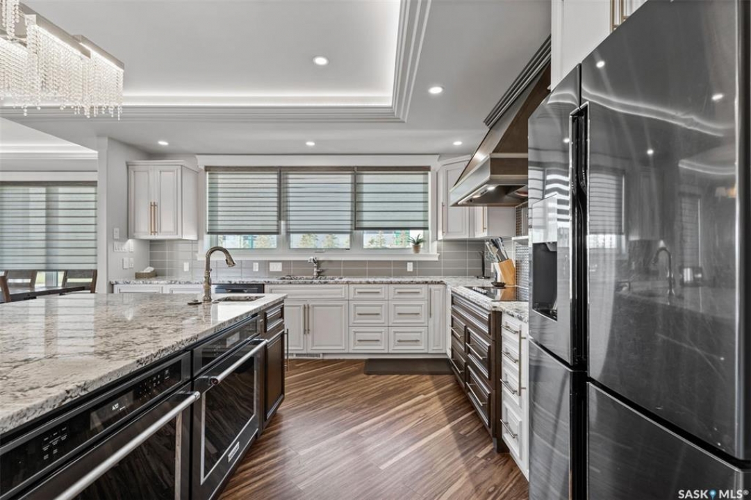 Welcome to luxury country living just outside the town of Kamsack, SK, where you overlook the town and have a large plot of land sitting on 14.37 acres. This parcel has a shelterbelt with plenty of trees planted, a 48 x 35 detached shop with solar panels to help offset the cost of the house and the shop. This luxury custom bungalow is 3,283 sq ft with a triple attached garage, two furnaces, three Van-ee systems, an on-demand hot water system with an additional hot water tank, two AC units, an emergency generator to power the house, and it's connected to city water. The main floor consists of a primary bedroom wing, the dining/kitchen/living room, and on the far side, children's bedrooms, laundry, and entry to the garage. This floor has vaulted ceilings, plenty of natural light, and beautiful views of the backyard, with luxury lighting throughout. The primary bedroom wing has a vaulted ceiling with doors exiting to the deck, a walk-in closet, and a beautiful 5-piece ensuite with a get-ready table, jacuzzi tub, steam shower, and his-and-her sinks. Also in the wing is a nursery room (or additional closet space), a 3-piece bathroom, and an office turret. Coming back into the living room, with an open floor plan and a gas fireplace with 4 different entrances to the backyard. The kitchen has two ovens, a 5x9 island that can seat up to five people, and off to the side is a butler's pantry with an additional fridge, sink, and plenty of storage. The children's rooms come with a Jack-and-Jill bathroom (5-piece), and down the hall is the laundry room equipped with a dog wash station. Downstairs has a family room with in-floor heat, a luxury bar with keg taps, dishwasher, fridge, microwave, and an additional office with a bedroom, kids' playroom, and a 4-piece bathroom. The backyard has a hot tub, kitchenette with a BBQ/griddle, sink, sunken fire pit, and a gas fireplace with a TV mount to enjoy those late summer evenings.