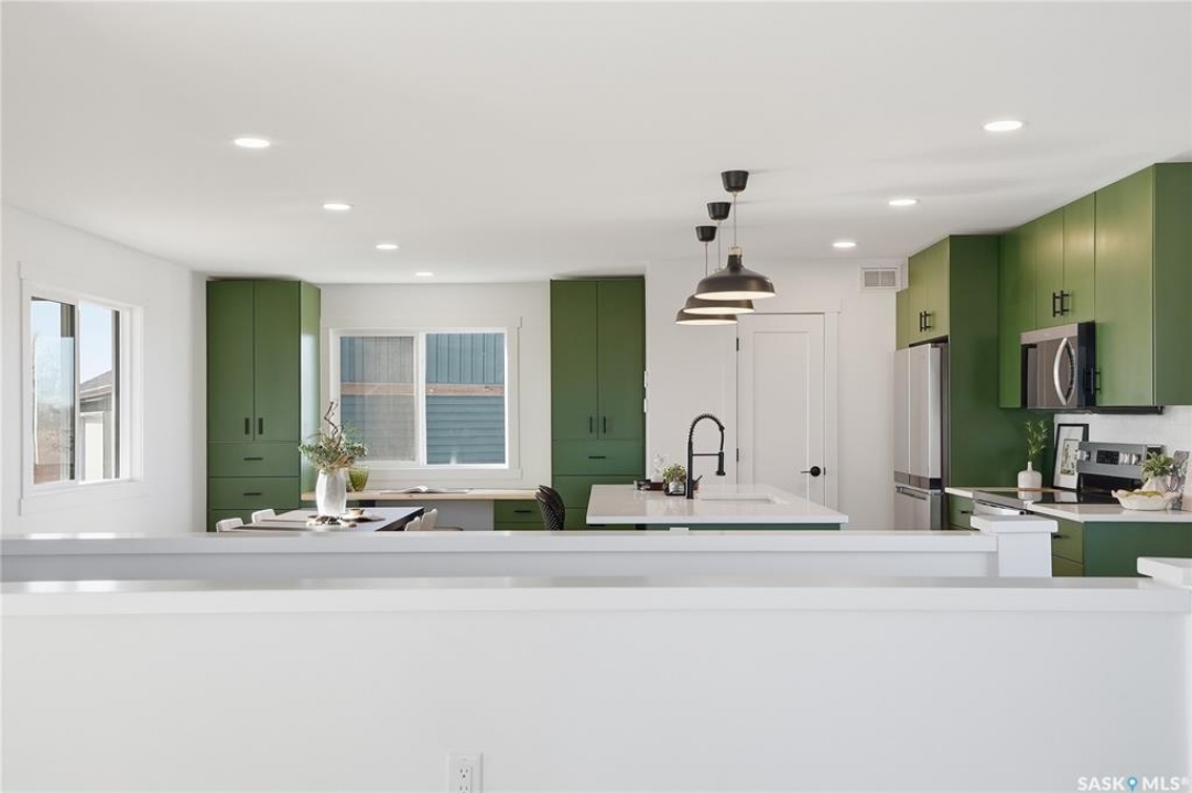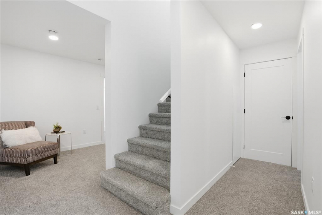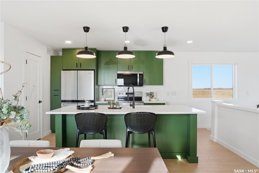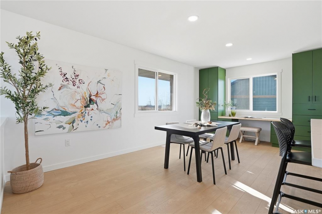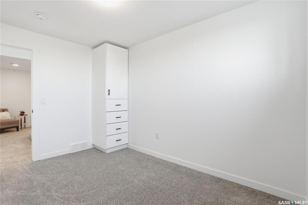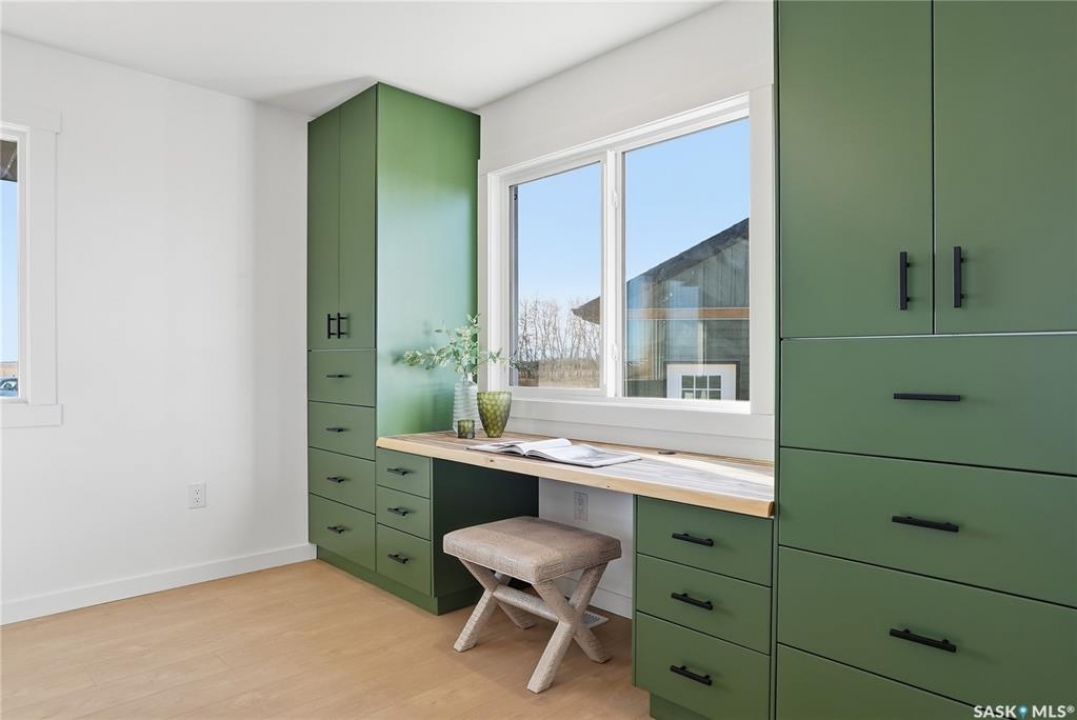 What an Opportunity! Just minutes west of Saskatoon-enjoy peaceful acreage living with city convenience! This newly constructed property sits on 7 acres and offers just over 1,700 sq. ft. of developed space (856 sq. ft. on the main level), featuring 4 beds, two baths, a fully developed basement, and an impressive heated triple detached garage (36' wide with a double overhead door). The home welcomes you home with a charming covered front porch and a functional large foyer complete with a built-in bench and a separate boot room area with floor-to-ceiling wardrobes. The open-concept main floor connects a spacious living room, dining area, and kitchen. The kitchen is a standout, showcasing an abundance of custom lacquer cabinetry, full-height pantry storage, quartz countertops, stainless steel appliances including a microwave hood fan, subway tile backsplash, and an oversized island ideal for large gatherings. The adjacent dining room easily accommodates a large table for the entire family! A convenient two-piece bath completes the main level. An open staircase leads to the bright lower level, which offers four bedrooms (one smaller-ideal as a nursery, office, or den), a spacious family-style 4-piece bathroom, and a large walk-in closet in the primary bedroom. Outside, the detached 36' heated and insulated garage is a dream setup-complete with a workshop area and a double overhead door. The yard is unlandscaped but cleared and ready for your personal design-bring your garden plans and your green thumb. Property is built by a reputable experience Saskatoon builder.