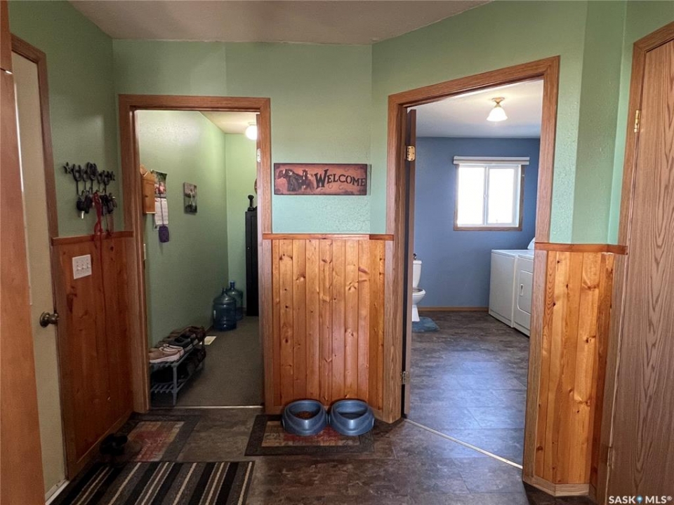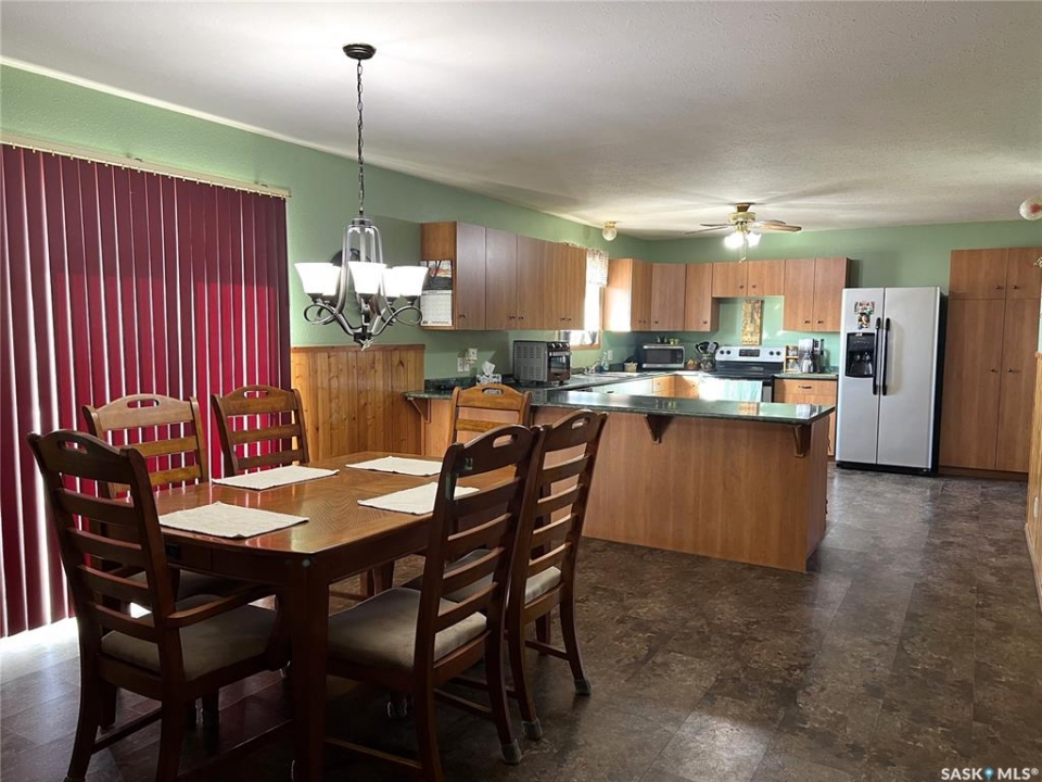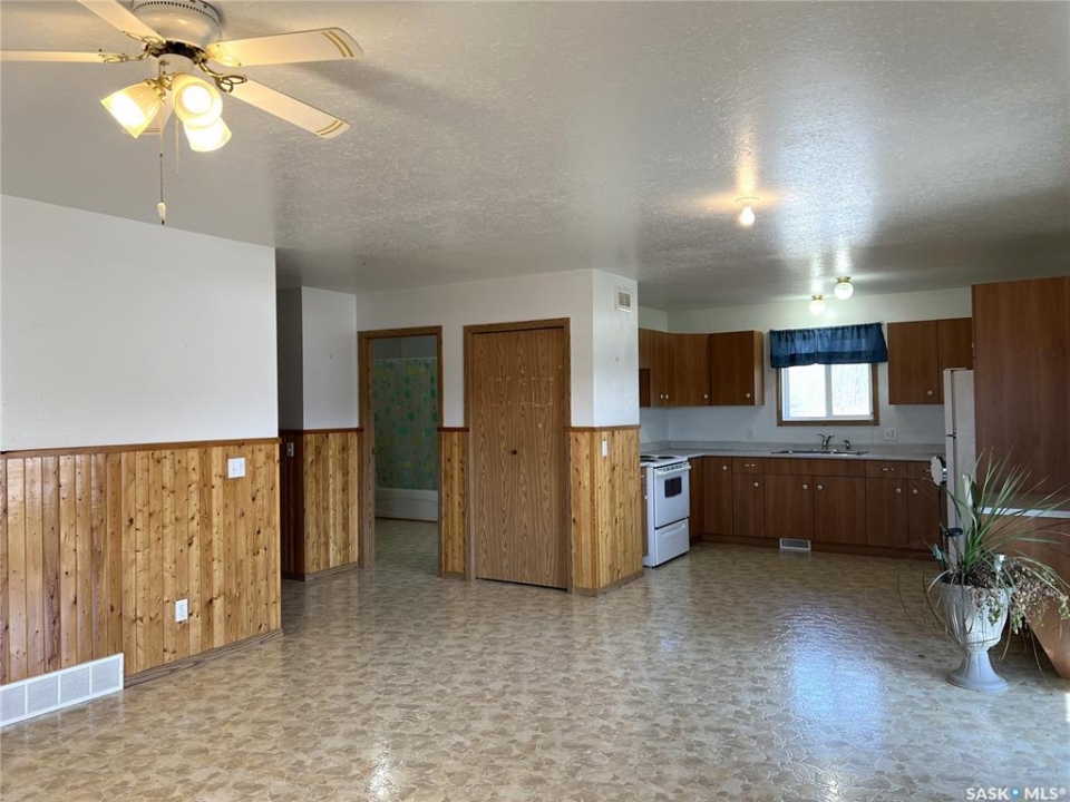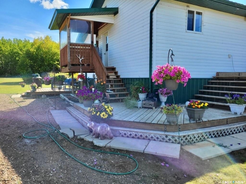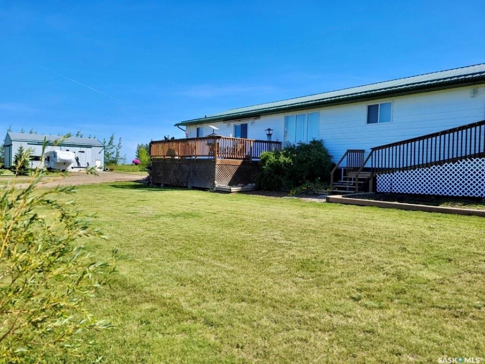 This 2006 bungalow is 2,220 sq ft with a 30'x50' shop on 10 acres in the RM of Loon Lake and would make an excellent family home. Main level features large kitchen with lots of counter space, dining area with access to a west facing deck, living room, primary bedroom with 4pc ensuite, 2nd bedroom, 2pc bathroom/laundry, mudroom plus a one bedroom fully self-contained nanny suite on main level. Suite has its own laundry and south facing covered deck. The basement hosts a large family room, 2 more bedrooms, 4pc bathroom, utility room, cold storage room, large storage room and another small storage room. You also have access to the back yard from the basement. New propane furnace in 2015 and basement has hot water infloor heat. New water treatment system in 2021, pressure tank and septic tank pump 2022. Metal walled/roofed shop built in 2008 has 16' walls set on concrete foundation, two sliding doors, 220 volt plug, loft/storage area and air compressor. Yard is beautifully landscaped with lots of shrubs, fruit trees, garden area and 2 sheds. Located 9km West of Makwa