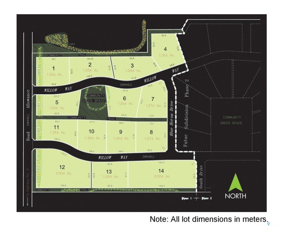 Buy Now, Pay Later! Get ready to build your dream home at Prairie View Properties! Lot 2 Willow Way at Prairie View Properties is an extra wide lot that is well suited to a home with a sprawling footprint and side entry garage. This lot overlooks the community greenspace. 1.25 acres with a South facing view. Colorado Spruce line the back yard perimeter on the North side of the lot, just beside the community trail. A flowering hedge to the East frames the sunrise and the front curved boundary is a landscapers dream. Located in the RM of Humboldt #370, just 2 KM North East of the City of Humboldt & approx. 40 min from BHP Jansen Mine. Relax and enjoy the natural beauty of this acreage development enhanced by greenspaces, walking trails and a pond. Lots are serviced to the Property line with Power, Phone, Natural Gas and SHL Rural Pipeline Water. Sewer Service to be selected by Buyer. Approved for Type 2 Mound or Septic Holding Tank. Purchase Price is Plus GST. Buyer to pay non-refundable down payment to hold the lot with the obligations to pay the balance upon occupancy or two years. Call today for more information or to view!