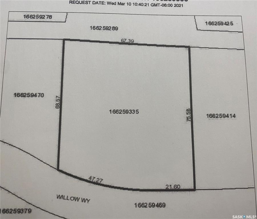 Buy Now, Pay Later! Get ready to build your dream home at Prairie View Properties! Lot 10 Willow Way at Prairie View Properties shared a boundary with the community greenspace. Access to the trail system on the North Side. This deep lot leaves plenty of opportunity for a developed back yard for you to enjoy. The Lilac hedge on the East Side will frame each sunrise just for you! South facing lot on 1.25 acre lot. Located in the RM of Humboldt #370, just 2 KM North East of the City of Humboldt & approx. 40 min from BHP Jansen Mine. Relax and enjoy the natural beauty of this acreage development enhanced by greenspaces, walking trails and a pond. Lots are serviced to the Property line with Power, Phone, Natural Gas and SHL Rural Pipeline Water. Sewer Service to be selected by Buyer. Approved for Type 2 Mound or Septic Holding Tank. Purchase Price is Plus GST. Buyer to pay non-refundable down payment to hold the lot with the obligations to pay the balance upon occupancy or two years. Call today for more information or to view!