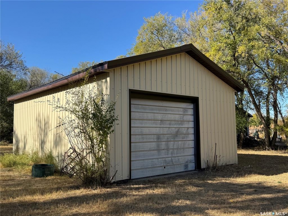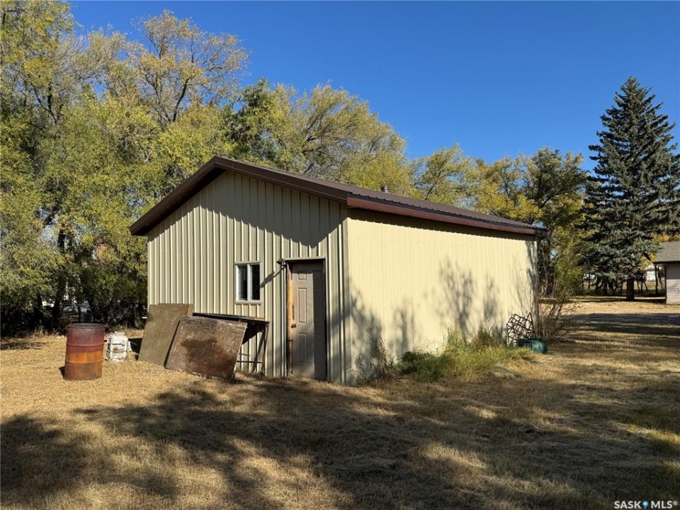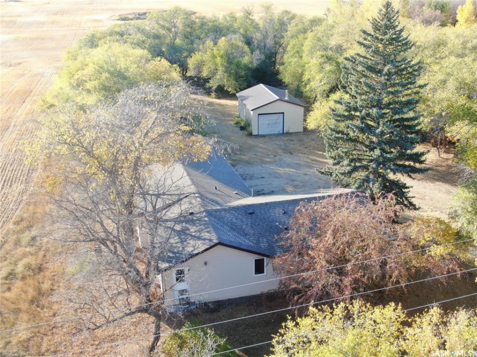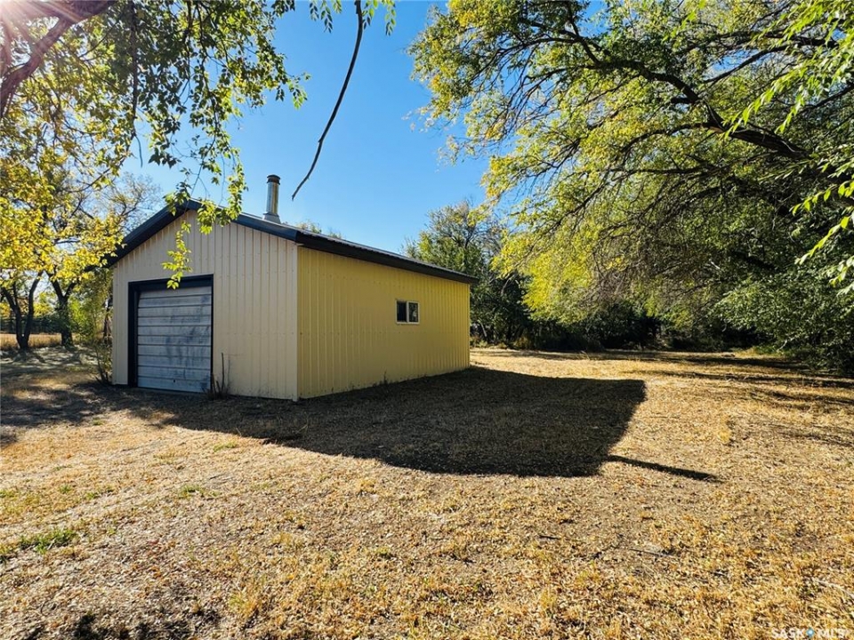 Looking for the comfort of acreage living without sacrificing convenience? This beautifully updated 1,500 sq ft bungalow sits just steps from the Biggar town limits, giving you the perfect blend of space, privacy, and accessibility. Originally expanded in approximately 2011 with a generous 400 sq ft addition and an attached double garage, the home offers a bright and welcoming layout. A practical back entry with direct garage access leads into a combined laundry/bathroom, making everyday living extra convenient. The kitchen is equipped with a natural gas stove and built-in dishwasher and flows easily into the dining area and cozy living room. Down the hall, you'll find the primary bedroom, two additional bedrooms, and a 4-piece bathroom complete with a relaxing corner jetted tub and shower. Comfort is a year-round luxury here thanks to in-floor heating throughout the home. The basement is dedicated to all mechanical systems, including the water heater, water softener, electrical panel, in-floor heat components, and equipment for both the well and septic. This property also features a 20' x 27' tinned shop. Major updates give you peace of mind: 2022 – New septic mound system, shingles, soffit, fascia, and eaves troughs on the house. 2023 - Shop received a new tin roof and siding. 2024 – well was insulated. Additionally, a sump pump has also been added to the house for extra security. Water is supplied by a private well, and sewer is handled by the new septic mound system located west of the home. If you've been dreaming of a little more room to breathe—without adding miles to your commute—this acreage is a must-see. Call today to book your viewing!