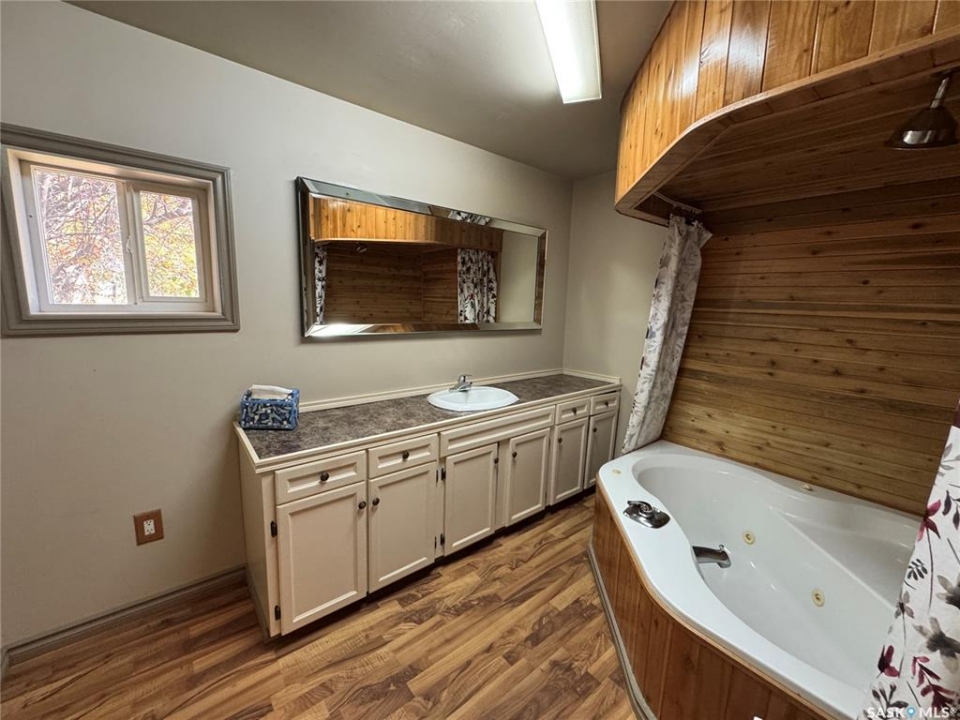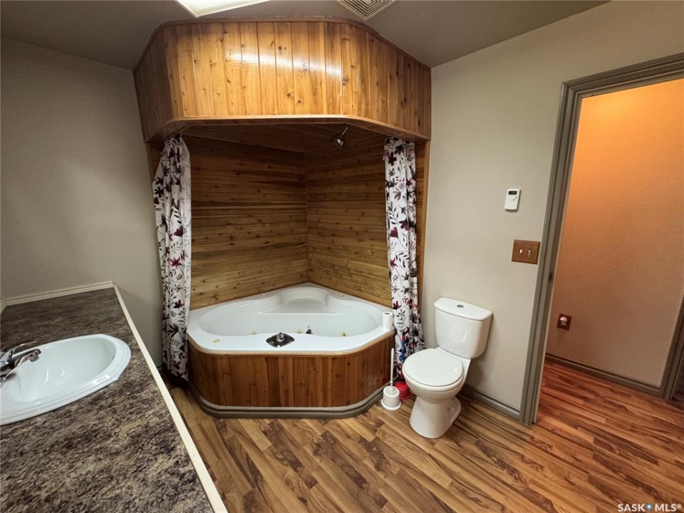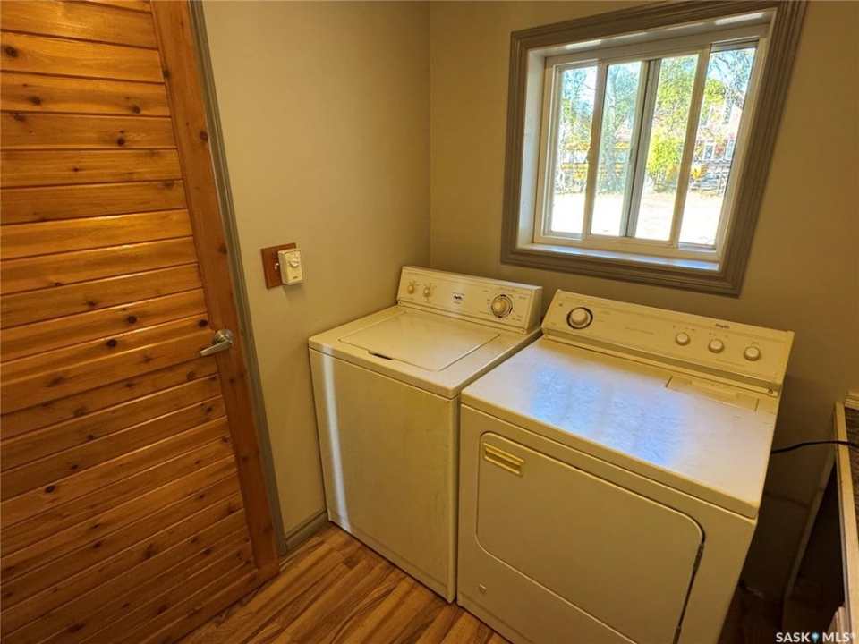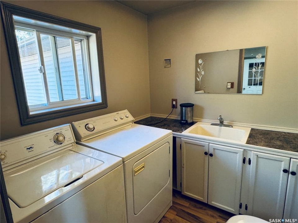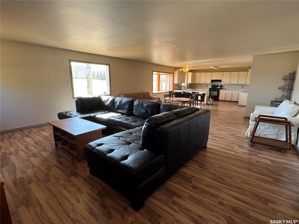 Looking for the comfort of acreage living without sacrificing convenience? This beautifully updated 1,500 sq ft bungalow sits just steps from the Biggar town limits, giving you the perfect blend of space, privacy, and accessibility. Originally expanded in approximately 2011 with a generous 400 sq ft addition and an attached double garage, the home offers a bright and welcoming layout. A practical back entry with direct garage access leads into a combined laundry/bathroom, making everyday living extra convenient. The kitchen is equipped with a natural gas stove and built-in dishwasher and flows easily into the dining area and cozy living room. Down the hall, you'll find the primary bedroom, two additional bedrooms, and a 4-piece bathroom complete with a relaxing corner jetted tub and shower. Comfort is a year-round luxury here thanks to in-floor heating throughout the home. The basement is dedicated to all mechanical systems, including the water heater, water softener, electrical panel, in-floor heat components, and equipment for both the well and septic. This property also features a 20' x 27' tinned shop. Major updates give you peace of mind: 2022 – New septic mound system, shingles, soffit, fascia, and eaves troughs on the house. 2023 - Shop received a new tin roof and siding. 2024 – well was insulated. Additionally, a sump pump has also been added to the house for extra security. Water is supplied by a private well, and sewer is handled by the new septic mound system located west of the home. If you've been dreaming of a little more room to breathe—without adding miles to your commute—this acreage is a must-see. Call today to book your viewing!