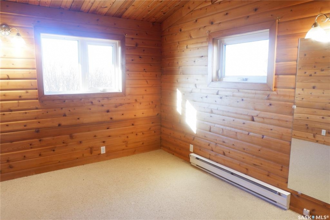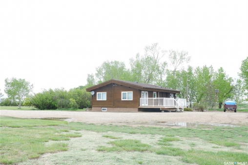 Located in the RM of Gravelbourg a short 7 km Southeast of the Town of Gravelbourg. This is the acreage you have been waiting for! The is a Pan Abode Cedar home constructed in 1980 on a full concrete basement. The cedar logs make for a very comforting home with the rich wood finishes. The semi open design is amplified by the vaulted ceilings. The kitchen cabinets were completely upgraded in 2008. The white cabinetry pops with the wood walls. You will enjoy the large Island in the dining room, with lots of extra storage room. The patio doors from this room lead to the large maintenance free deck. The living room has large windows to allow for lots of natural light and to enjoy the prairie views! The triple pane windows were all replaced in 2016. The primary bedroom features a double wide closet. The second bedroom has been refitted as main floor laundry for extra convenience. You will find a large storage room/den and a 4-piece bath to complete the main floor. The basement is fully developed with the addition of a family room, 3 extra bedrooms, 2 two-piece baths and tons of storage. Currently the owner has installed a 1500 Fibreglass Cistern for water for the home. Gravelbourg offers Reverse Osmosis water that is great to drink and easy on the fixtures. The shop is separated into two separate areas. Great for parking/storage and tinkering. The shed is 30 x 60 with the front 24 x 30 insulated. There is also another storage shed included as well as a play structure. This property is in great condition and has been very well maintained. Information on the Solar system and warranty is available. Book your appointment to view the property today. You are going to love it! Directions: East of Gravelbourg to RR3042 then 1 Mile south