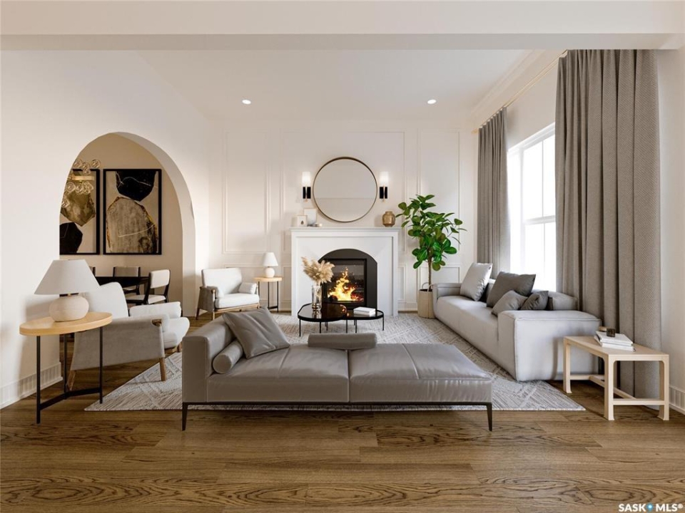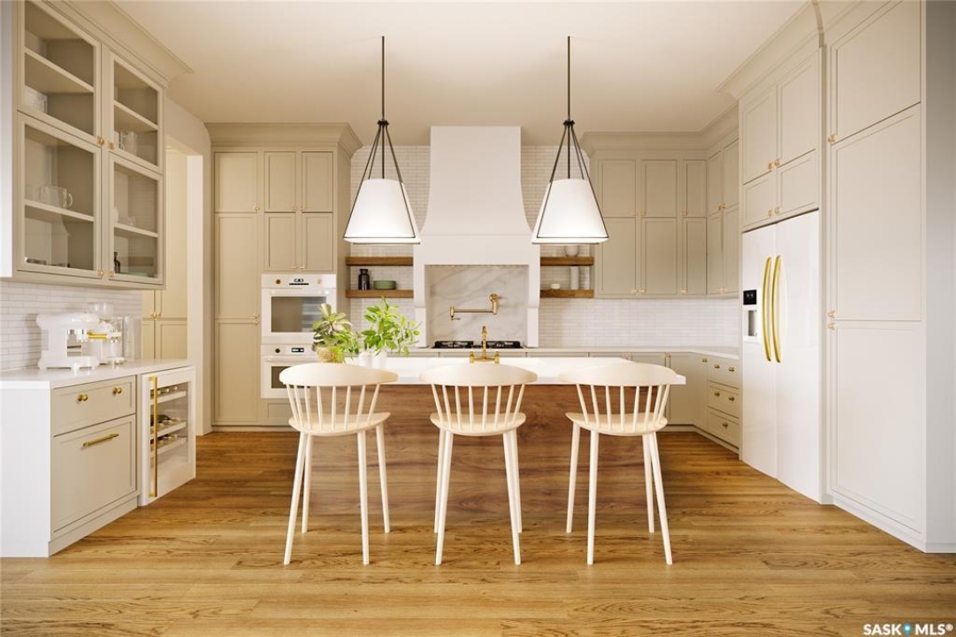 Nestled on a beautifully treed lot surrounded by natural reserve at Applewood Estates, just 4 minutes from the City's edge, this traditionally-styled 2-storey is both classy and functional at the same time. This home was designed to have a spot for everything – you will find built-in cabinetry in almost every room, alongside large windows that maximize natural light throughout the home. Upon entering the house you will be met with a jaw-dropping curved staircase and a foyer to the left that was designed as a spot for guests to take off their jackets and use the conveniently situated powder room. The kitchen is one-of-a-kind with floor-to-ceiling cabinets and Cafe White Kitchen Aid appliances to accent the cream cabinetry. The mudroom/pantry combo is the perfect blend of function for both everyday jackets and shoes as well as large appliances and closed storage that you want to be kept out of sight! The living room has incredible windows and views into the backyard as well as wainscoting, a gas fireplace, and an arched entrance into the dining room. No detail was missed when designing these spaces for everyday living as well as entertaining! Heading upstairs you'll be amazed by the 20ft tall wainscotting wall leading to the second floor as well as the open-to-below view you have of the main floor. The primary bedroom is a retreat like none other featuring a see-through gas fireplace into the ensuite. The 12.5ft vanity has plenty of room to store all your items and leads directly into your walk-in closet complete with custom cabinetry and even an island! On this floor, you will also find the laundry room, two additional bedrooms and a main bath complete with a tiled tub and unique floor tile. The basement is ready for development and already designed. Down here you will find space for a bonus room, dry bar, guest bedroom, 4-piece bathroom and large gym! Call you agent for more details about this amazing one-of-a-kind boutique home.