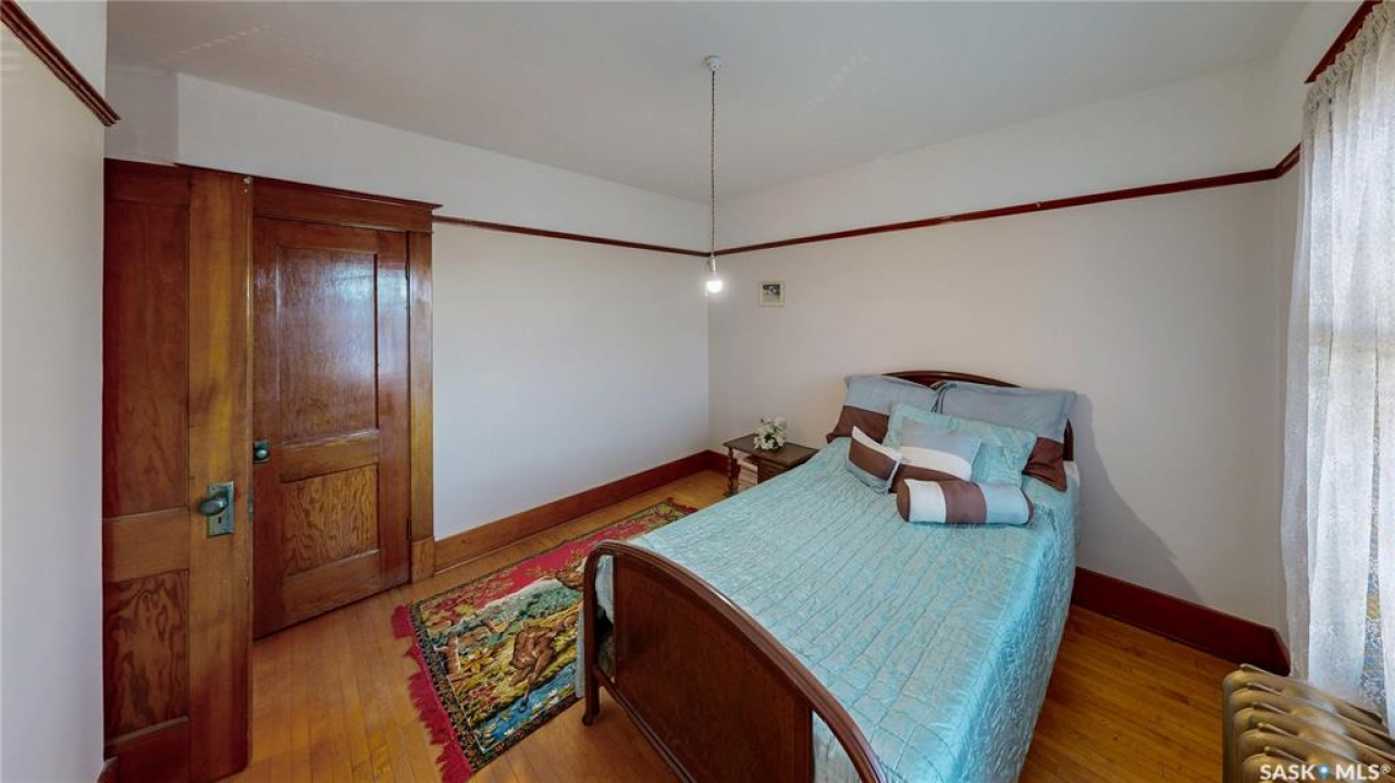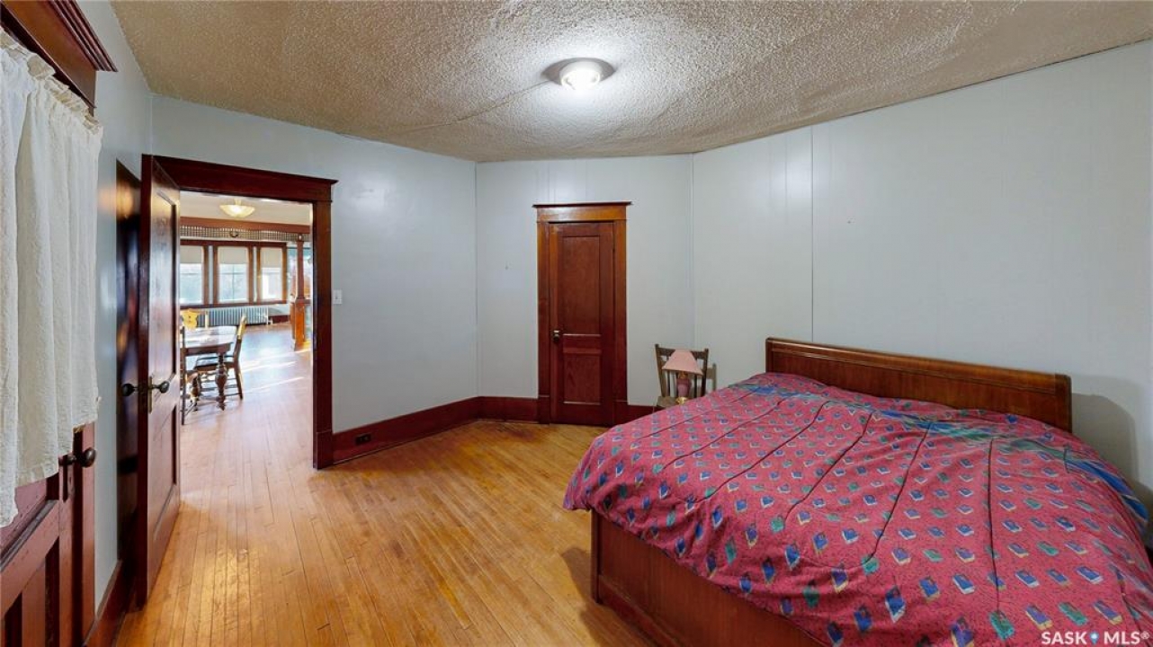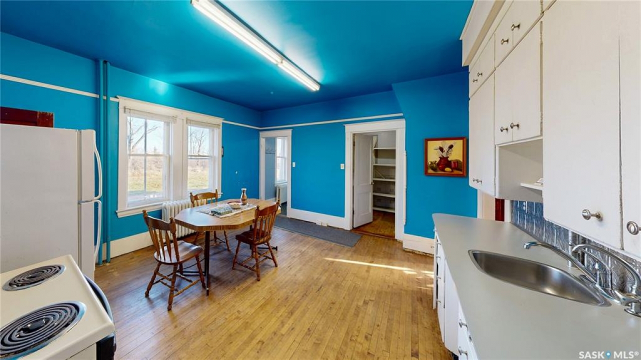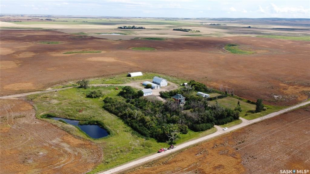 Welcome to the beautiful and historic Hamilton House acreage in the scenic Last Mountain Valley. This 1918 built, 2032 square foot, 5 bedroom 2 bathroom, 2 storey, brick farm house exudes timeless character and sits on a massive 12.56 acres of land close to the town of Cymric Saskatchewan. Steeped in heritage and surrounded by prairie serenity, the property also includes an impressive collection of outbuildings. A 38 x 58 2 storey barn, a 40 x 80 quonset with electricity, and a 28 x 40 heated shop with electricity. You enter this home into the porch that has plenty of room for your outdoor wear. The spacious kitchen has room for a table and chairs or a future island. With the right vision this space has the potential to be the dream kitchen you've always wanted. The fridge and stove are included. To the side is a 4 piece bathroom. The living room is bright with multiple windows, original hardwood flooring flows throughout the home and stunning hand painted murals line the top of the walls. Adjacent to the living room is the formal dining room, perfectly sized to host large family gatherings and holiday dinners with ease. Finishing off the main floor is the first bedroom that also makes a great home office. Upstairs on the second floor you'll find 4 more great sized bedrooms. All with their own unique charm and personality. A handy two piece bathroom is also on this level. Even more potential awaits in the huge attic, which could be transformed into a spectacular primary suite, studio, playroom, or cozy loft lounge. The possibilities are endless. The home also includes a full unfinished basement, housing the owned furnace, an electric water heater, and a backup electric furnace. With its captivating history, expansive land, charming character details, and incredible opportunity for customization, the Hamilton House acreage is the perfect canvas for your dream rural lifestyle. This is your chance to create something truly special to enjoy for generations to come.
