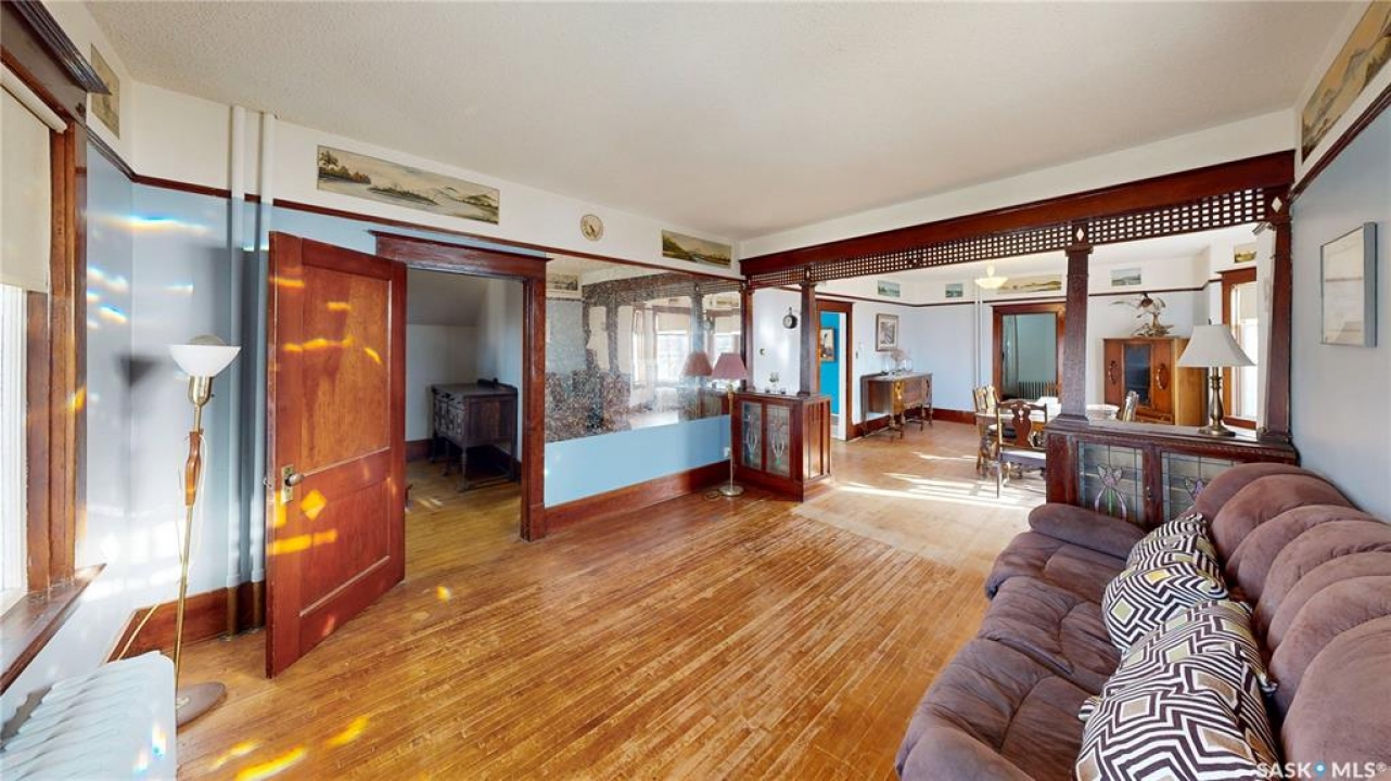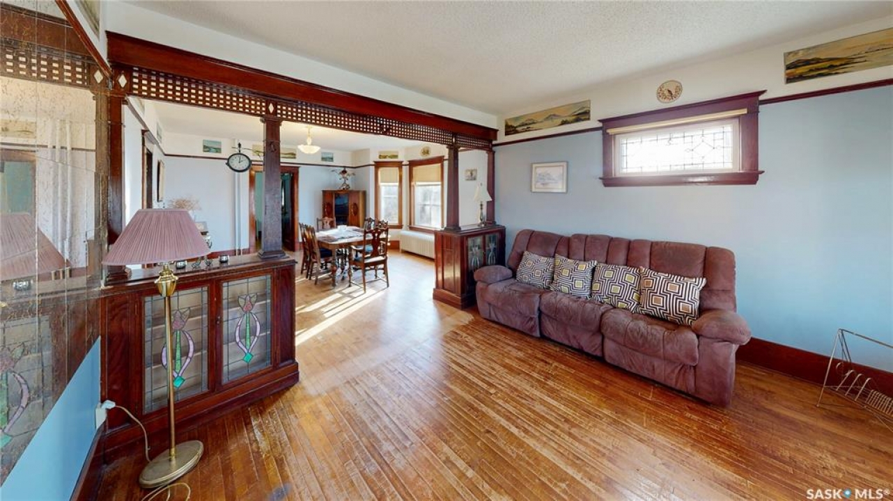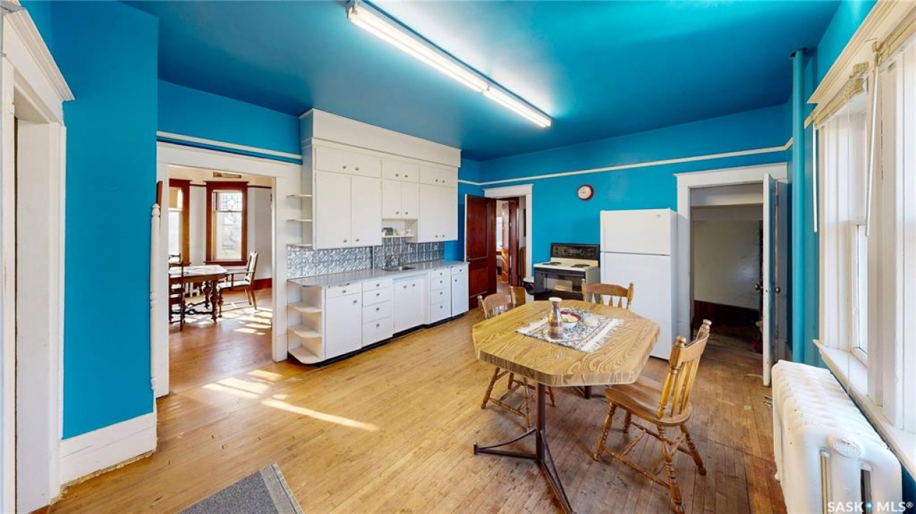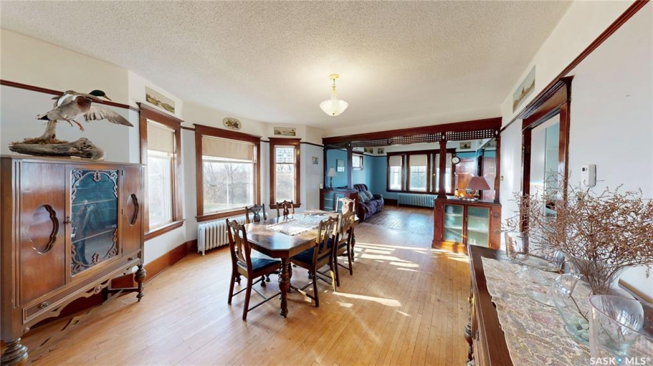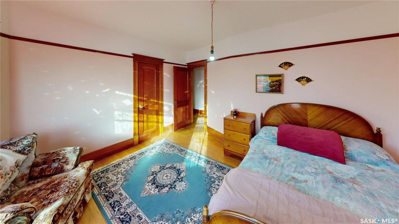 Welcome to the beautiful and historic Hamilton House acreage in the scenic Last Mountain Valley. This 1918 built, 2032 square foot, 5 bedroom 2 bathroom, 2 storey, brick farm house exudes timeless character and sits on a massive 12.56 acres of land close to the town of Cymric Saskatchewan. Steeped in heritage and surrounded by prairie serenity, the property also includes an impressive collection of outbuildings. A 38 x 58 2 storey barn, a 40 x 80 quonset with electricity, and a 28 x 40 heated shop with electricity. You enter this home into the porch that has plenty of room for your outdoor wear. The spacious kitchen has room for a table and chairs or a future island. With the right vision this space has the potential to be the dream kitchen you've always wanted. The fridge and stove are included. To the side is a 4 piece bathroom. The living room is bright with multiple windows, original hardwood flooring flows throughout the home and stunning hand painted murals line the top of the walls. Adjacent to the living room is the formal dining room, perfectly sized to host large family gatherings and holiday dinners with ease. Finishing off the main floor is the first bedroom that also makes a great home office. Upstairs on the second floor you'll find 4 more great sized bedrooms. All with their own unique charm and personality. A handy two piece bathroom is also on this level. Even more potential awaits in the huge attic, which could be transformed into a spectacular primary suite, studio, playroom, or cozy loft lounge. The possibilities are endless. The home also includes a full unfinished basement, housing the owned furnace, an electric water heater, and a backup electric furnace. With its captivating history, expansive land, charming character details, and incredible opportunity for customization, the Hamilton House acreage is the perfect canvas for your dream rural lifestyle. This is your chance to create something truly special to enjoy for generations to come.
