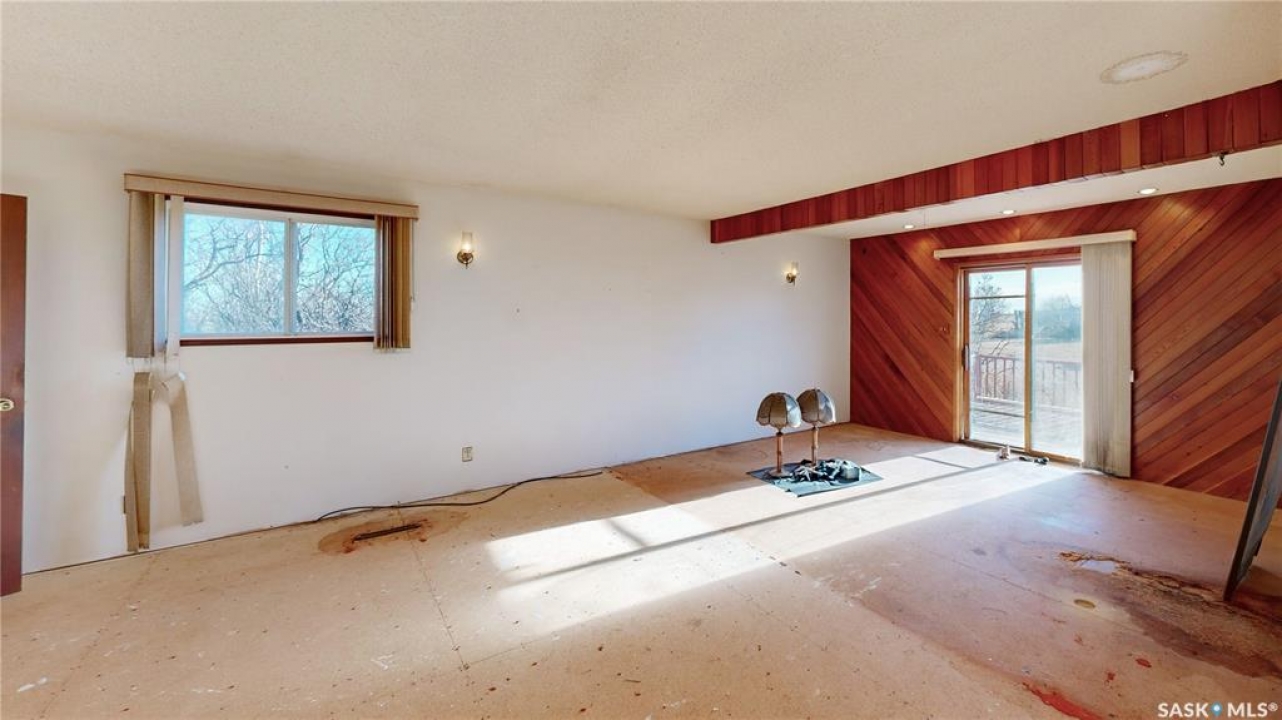 Welcome to the Irvine-Kelln Acreage in the serene Last Mountain Valley. This 1920 built, 3 bedroom 2 bathroom, 2 storey house is 1,976 square feet with natural gas and electricity service and sits on 10 acres of expansive prairie land close to the town of Cymric Saskatchewan. The property includes a large barn, a single detached garage and a shed providing ample room for equipment, vehicles, animals, and hobby projects. While the home is in need of some TLC, it presents incredible potential for the right buyer with a vision whether you're dreaming of a modern farmhouse transformation or a cozy family retreat. You enter into the porch that leads to the kitchen and just behind that is the laundry room with an attached 4 piece bathroom. A formal dining room is next. The massive L-shaped living room features large windows that frame views of the property and sliding patio doors that lead out to the deck. Perfect for enjoying quiet mornings or sunset evenings. A 3 piece bathroom is attached to the primary bedroom with double closets. Upstairs features a bonus area and two more bedrooms! There is also a full concrete basement that is unfinished and includes the owned furnace and electric water heater. This property has a well for water supply.