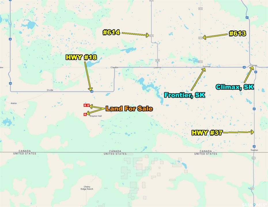 Three quarter sections of mainly cropland with some pasture located near Frontier, SK in the RM for Frontier #19. The SCIC soil classification is “K” for all three quarters. SAMA Field Sheets identify 420 cultivated acres and 56 native grass acres. The NE & NW 10-2-23 W3 offers a wide open half section that is farmed as one field with 100% cultivated acres as per SAMA. The SW 3-2-23 W3 is one mile to the south with a mix of open cultivated acres and native grass land with a dugout for water supply. There is a lease agreement in place expiring at the end of 2029 which provides a 3% return at the asking price. Contact for lease details. Asking Price Breakdown: $2,201.21 ISC Titled Acre, 1.79 x 2025 Assessed Value