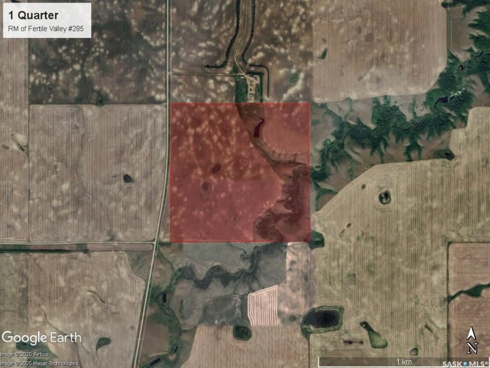Incredible opportunity to acquire one quarter of productive crop production land in the RM of Fertile Valley #285, with additional land and yard site for sale nearby via separate MLS listings. Located near the community of Macrorie, SK, this farmland offers a productive soil class rated H by SCIC. This quarter section features productive dark brown soil with a respectable SAMA Soil Final Rating Weighted Average of 44.80. SAMA field sheets report approximately 124 cultivated acres (Buyers are encouraged to do their own due diligence regarding the number of acres suitable for crop production). The property features great access along the West side of the property. There is a dugout on the North side of the property which has been a reliable water source according to the Seller. This could be used for watering livestock. The pasture could support a small herd or provide excellent spring/fall pasture for a larger herd. There are also two steel grain bins located on the North side of the property. In addition to the agricultural uses, the property features picturesque coulees in the Southeast portion of the property, which could be used for hunting or wildlife watching. This property would be an excellent addition to an existing farm base or would make a great start for someone looking to get started with one to four quarters and a yard in this productive part of Saskatchewan. If you are looking for more land, there are an additional three quarters of productive farmland with a yard site for sale nearby via separate listings (see MLS #'s SK025122 & SK025125).