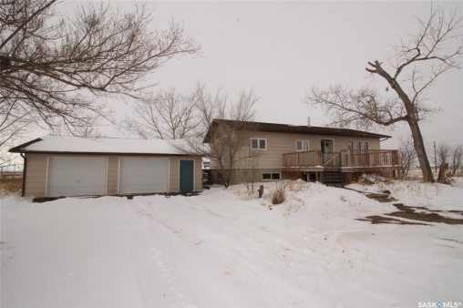 Located on the corner of highway 37 & 13 this acreage is gives you lots of space with all town amenities in walking distance. The home is a fixer upper but has a good basement and lots of potential. The main floor hosts two bedrooms up with two bathrooms. The kitchen, dining and living room are all open so you can entertain and keep conversation alive. The basement has had some rooms being framed, but not complete. There is another 4 pc bath downstairs as well as dedicated laundry space. The back deck looks out to the West to catch the best Sunsets. There is some other outbuildings and room to grow and create a little homestead!