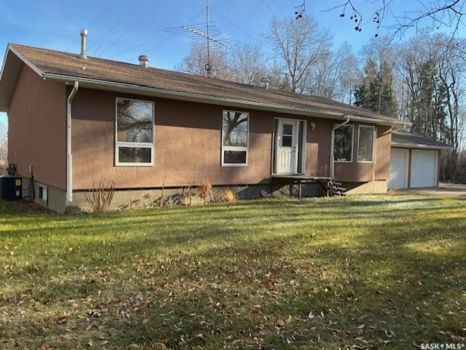 Nestled on a private 2.12-acre lot just 5 miles from town, this charming 1480 sq ft bungalow offers the perfect blend of modern comfort and serene country living. With 3 spacious bedrooms and 3 bathrooms, the home has been beautifully renovated, featuring laminate flooring throughout, updated doors and windows, and maintenance-free stucco siding. The main floor also includes a convenient laundry area, while the expansive, nearly finished basement with a concrete foundation boasts a large family room and a generous office—ideal for those working from home. Surrounded by lush trees, the property provides a peaceful, private setting, complete with a fire pit area for summer lounging, a garden space, and a cold storage room for vegetables and canning. Large triple-pane windows flood the home with natural light, and the low-maintenance yard offers plenty of room to enjoy the outdoors. With plenty of storage and a warm, inviting atmosphere, this home is a true retreat.