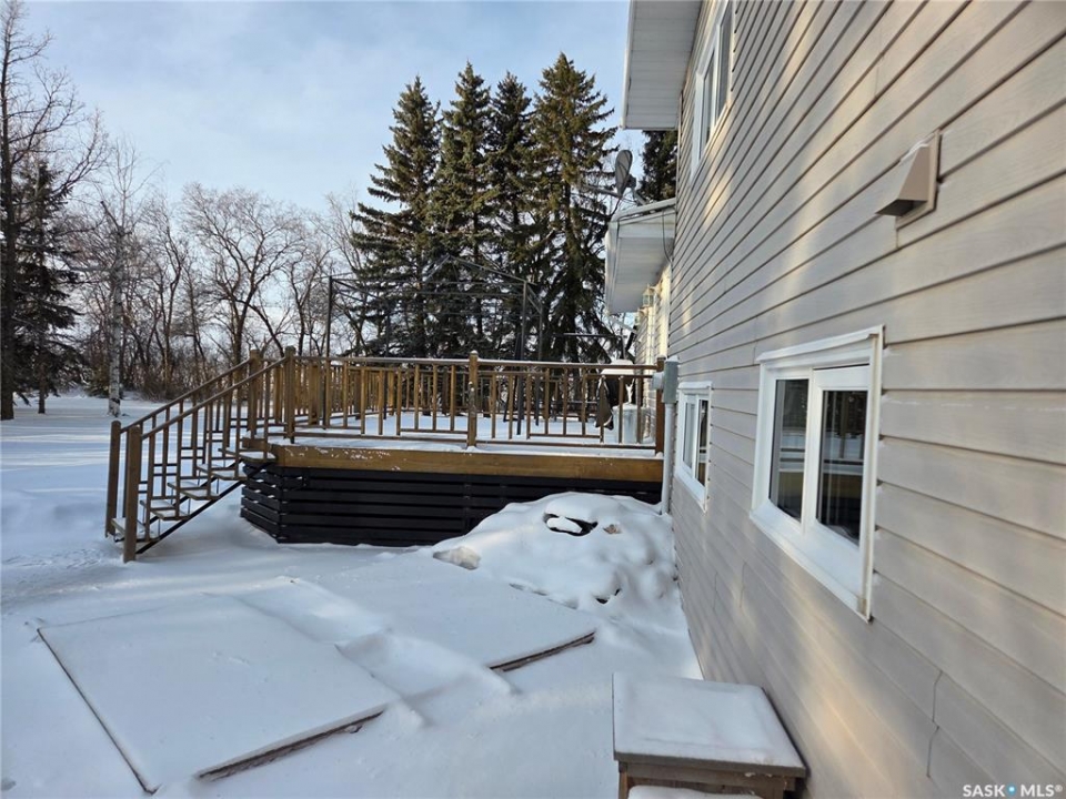 Welcome to the perfect acreage to fit anyone's needs. 5 bedrooms, 2 bathrooms, 3 living areas and plenty of storage on this 4 level split just a short 8kms from the heart of Tisdale. 3.72 acres enclosed with in a complete shelterbelt with a large storage shed, 20x30x12 tarp shed, garden area and tree house for the little ones. Large deck with covered gazebo off the back entrance, year round fish pond with fish along the patio entrance to garage, enclosed CATIO for the cats with separate house entrance and a 2 car 30x24 attached garage with built in cabinets and electric plug in heater. All appliance except bar fridge and basement freezer included (stove and hood fan new) as will the couches and electric fireplace in the basement, bed in first upper bedroom, lawn sweep and garden tiller. Sewer is by septic tank with pump out to south east, water is rural pipeline, 200 amp panel box. Sump pump pumps out far behind garage. Many many upgrades in the past years make this home ready to move in and live the life.