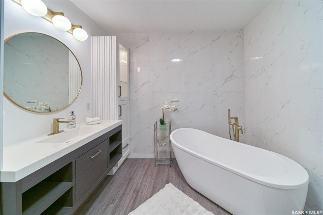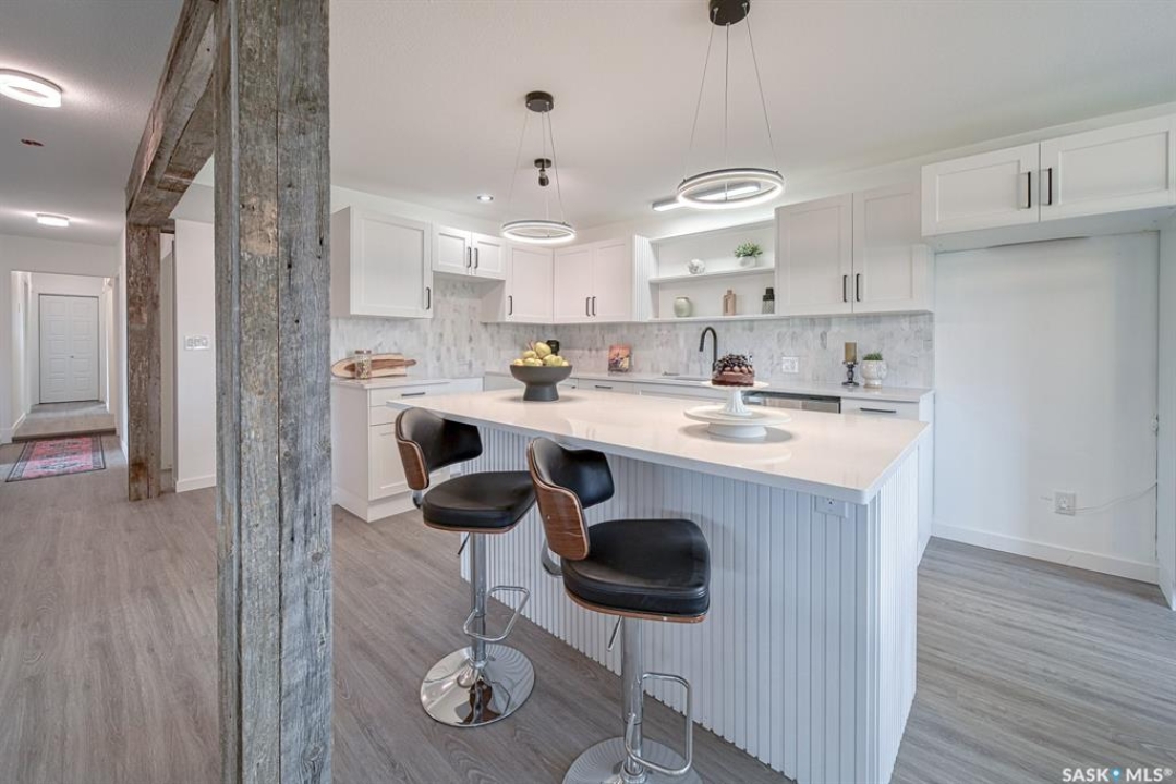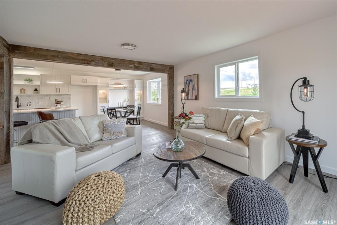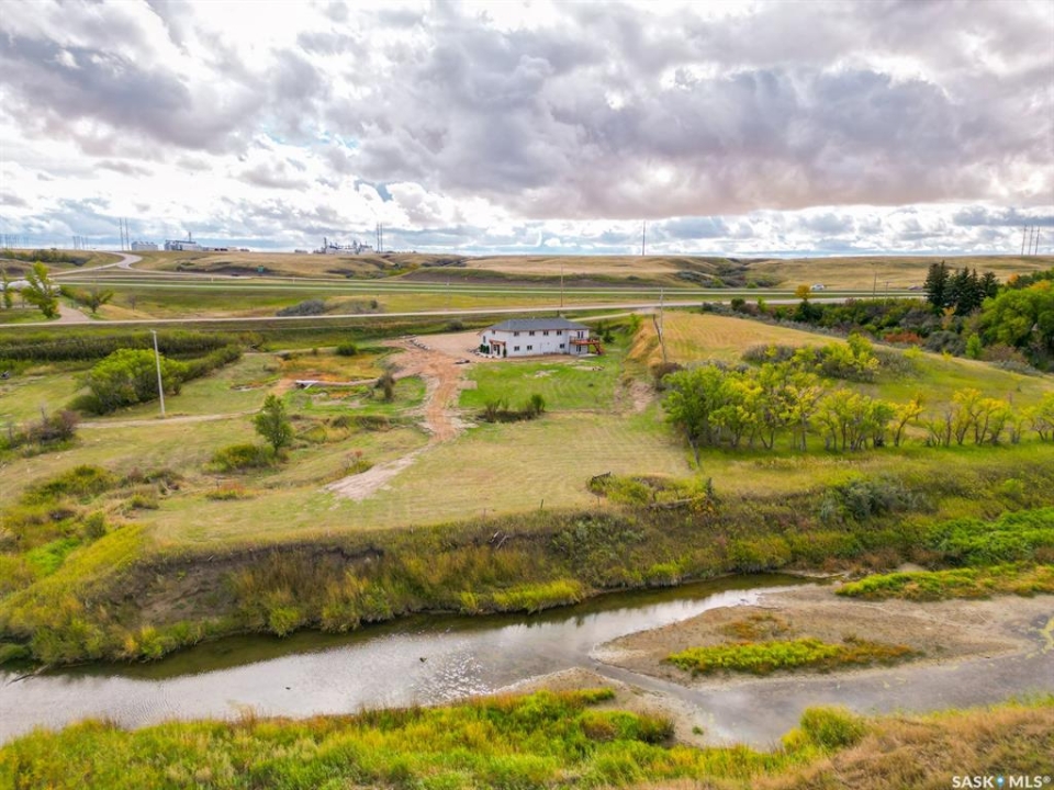 Your wait is over to own an amazing acreage property just 6 km east of Moose Jaw! River's Edge Acreage is a must-see opportunity you do not want to miss!! Combining an amazing location on the river's edge with just completed beautiful on-trend finishes to over 2400 sq/ft of this home, you will be amazed as you enter the great room with vaulted ceiling & gas fireplace! A games room or home office (330 sq/ft) has so much potential for families of any size & is adjacent to the great room! Stepping upstairs, you will absolutely love the fabulous open concept living area with a kitchen designed for all the chefs in the family! Quartz countertops, central island, lovely dining area, along with a spacious living room that steps onto the deck overlooking the beautiful river valley views with a staircase to take you out to the firepit area! Down the hall, a stunning bath with a gorgeous soaker tub walled in striking stone tiles is magazine-worthy! Three bedrooms, a laundry area, as well as another bath lead to the primary suite that has yet another beautiful bath plus a very special walk-in dressing room where you will love to spend time getting ready for your day! The walkout lower level has amazing potential to be another living space for family, income, or Airbnb, as 2 exits from the level go to lovely patio spaces (one is covered), or used for your personal needs! The 2.62-acre property has so much beauty that you will vacation at home! Just imagine taking out your kayak to the river's edge of your own private property! River's Edge Acreage must be seen to appreciate how amazing it is! Just a few features: 4 bedrooms, 3 baths, 2400 sq/ft newly finished interiors, 1600 sq/ft walkout lower level, new well, beautiful landscaping, minutes to Moose Jaw, no gravel roads to drive!, a virtual new home with gorgeous views,....I know!!! Be sure to view the 3D scan of the amazing floor plan & 360s & drone shots of the outdoors!! Directions: 50.3979722 -105.4138056