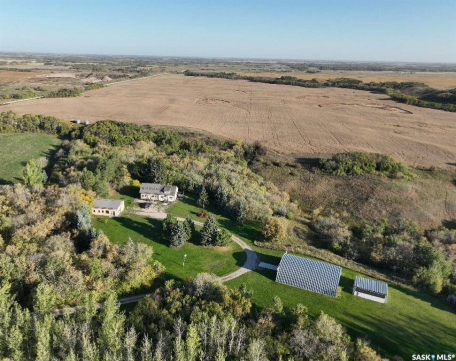 An old pilots quarter with 2 shops on 159.99 acres, practically on the valley edge just North of Round Lake lays a renovated 1950 1.5 story home with updated mechanical, siding, and 26x30 addition. 117 acres of Hayable Land, 40 acres of quality ravine & prime treed hunting play ground and 3 acres of well sheltered, manicured yard site & rumours of an old airplane runway are ready for the next owners. The home boasts NATURAL gas with forced air & boiler infloor heat in the addition with a large main floor bedroom & ensuite with dual access for prime main floor function. The original dining room has a natural gas fireplace with hardwood floors and a fully renovated galley style kitchen with updated stainless steel appliances including gas oven & a large walk in pantry. Sliding deck doors to the east view of the property will have you never missing a sunrise. The entire home boasts prairie views and copious amounts of natural light via south facing windows and sky lights. 3 second floor bedrooms and a 3 pc bath addd extra power to this purchase as well as a clean usable basement. Out side the purchase plot thickens with a natural gas insulated shop, and a cold storage quonset with a central concrete area and 2 gravel storage areas on either side of the quonset. Minutes from round lake and 12 miles to Stockholm and a short distance to the number 9 HWY give Marlas Place a special spot for potential buyers to navigate themselves home in South East Saskatchewan.
