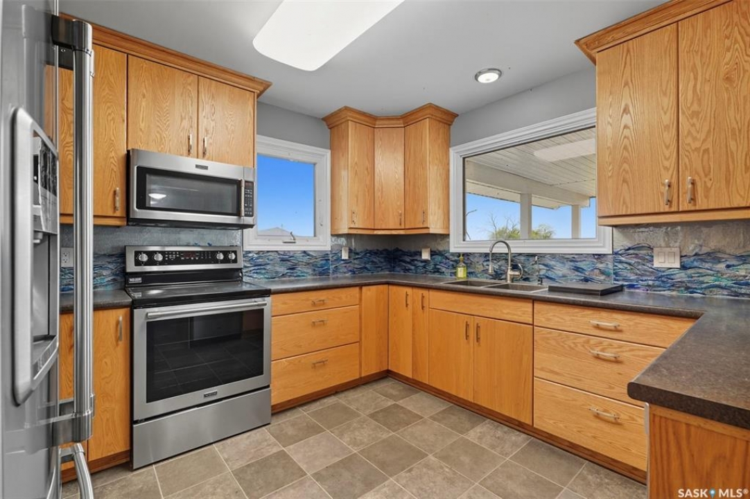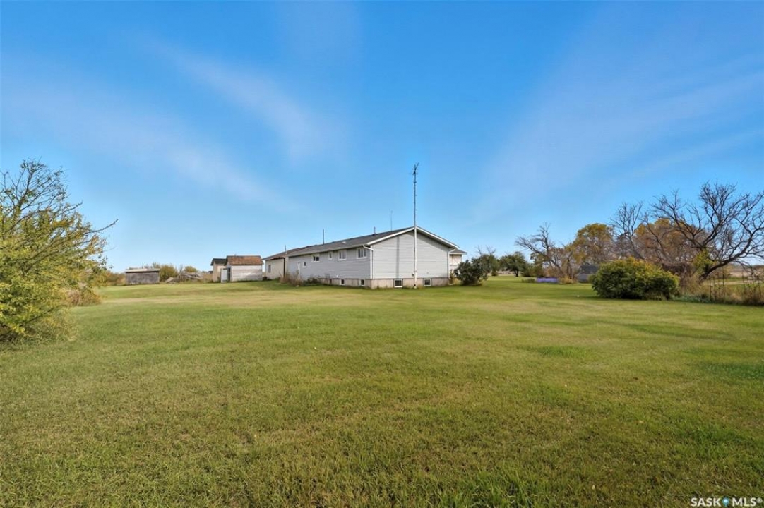 Discover the perfect blend of rural tranquility and modern living with this spacious 1,521 sq ft bungalow situated on 7 acres, under 10 min to Watrous and a short drive to Nutiren Lanigan and BHP Jansen mine sites. Ideal for families, commuters, or anyone seeking space and privacy in a convenient location. Step in the side door to a large mudroom that gives access to the attached single garage, basement or kitchen. Kitchen offers tons of workspace and storage - you'll love the custom oak cabinets! This well-maintained home offers 3 bedrooms, 3 bathrooms, and an open-concept layout that includes a bright kitchen, large living room, and dedicated dining area with patio doors that lead to a newly added covered deck. Basement offers additional living space with a wood fireplace and storage. Recent upgrades include new boiler January 2025,New septic line/RO System April 2025, upgraded electric panel 2021. Boiler heat is cost efficient, with floor heat in kitchen. Enjoy panoramic prairie views, mature yard site, and plenty of space for hobbies, gardening, or outbuildings. Access is easy via a well-maintained road, and services including well power, well and septic are in place.