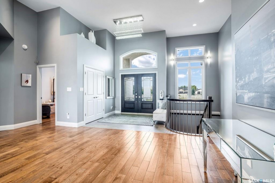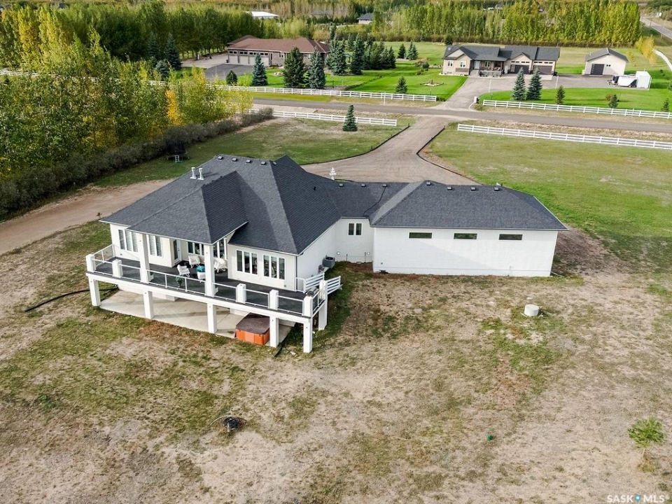 This peaceful 3.5 acre retreat features a sprawling walkout bungalow with close to 4,800 sq ft of living space designed for luxurious country living, yet still close to city amenities. Built on an ICF foundation, this bright open-concept layout has high ceilings and lots of windows allowing for plenty of natural sunlight. The gourmet kitchen showcases elegant cream cabinetry, granite countertops and high-end stainless steel appliances, along with a convenient kitchen sweep, and walk-in pantry. A spa-inspired primary bedroom has cozy fireplace and direct access to the back deck, also features a relaxing jetted tub, spa shower and a huge walk-in closet complete with custom built-in dressers. Second bedroom on main floor would also make a great home office. Main floor laundry room is thoughtfully designed with plumbing and electrical setup for a potential conversion into a nail or hair salon. Walkout basement is ideal for entertaining or multi-generational living, with room for theatre seating and hook up for potential bar or kitchenette. 3 bedrooms with large windows, 2 bathrooms, a workout room and furnace room complete the basement. No shortage of storage space in this home! Comfort is elevated with in-floor heating in all of the bathrooms. Garage floor and basement floor have separate boiler system, which would also work to heat potential swimming pool. Oversized triple-car garage provides ample storage and workspace with heated floor and 220 amp service. Large driveway for plenty of parking space and eco-friendly driveway constructed from recycled highway asphalt. Step out onto the expansive deck, perfect for morning coffee or evening sunsets, surrounded by nature, this property offers tranquility, space, and sophistication!
