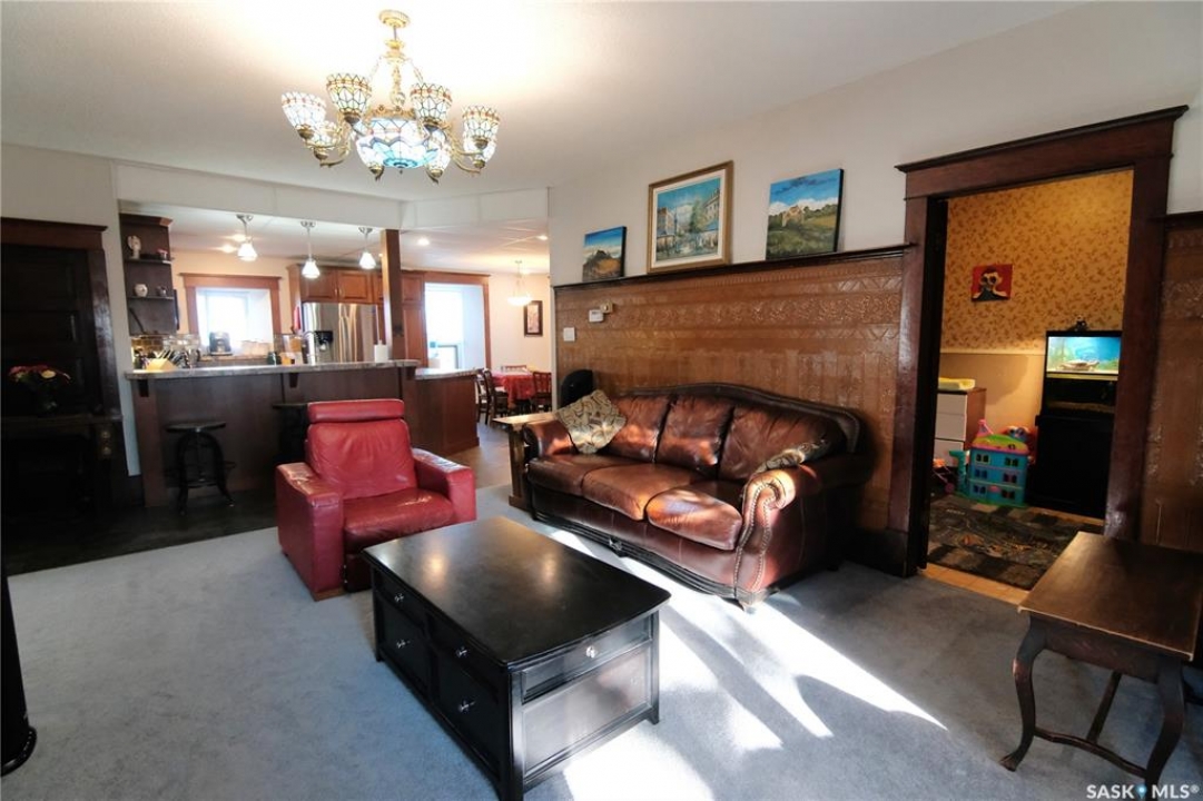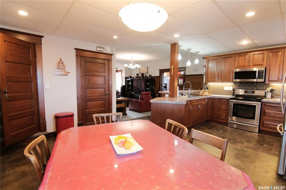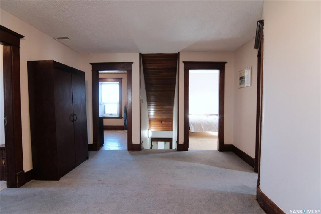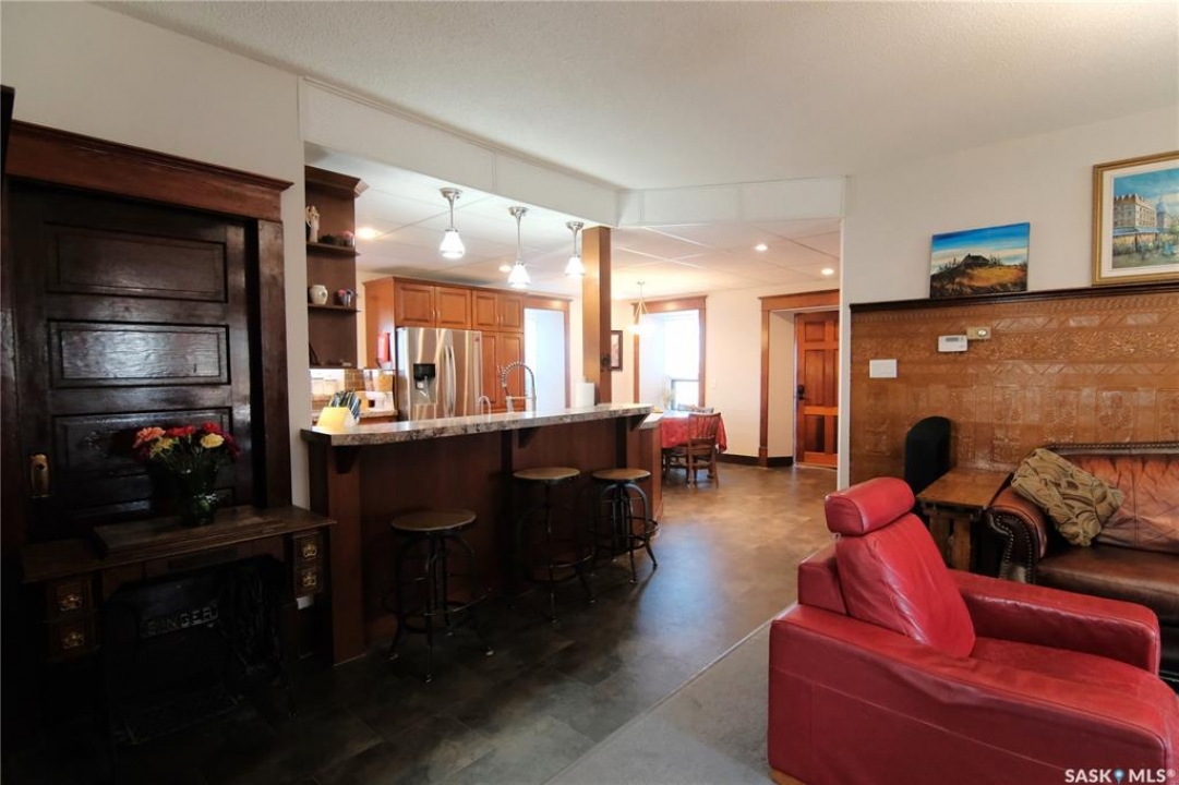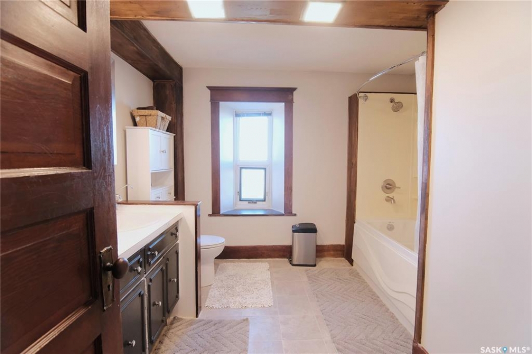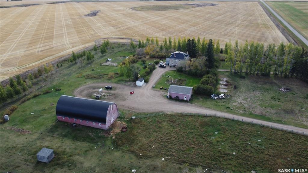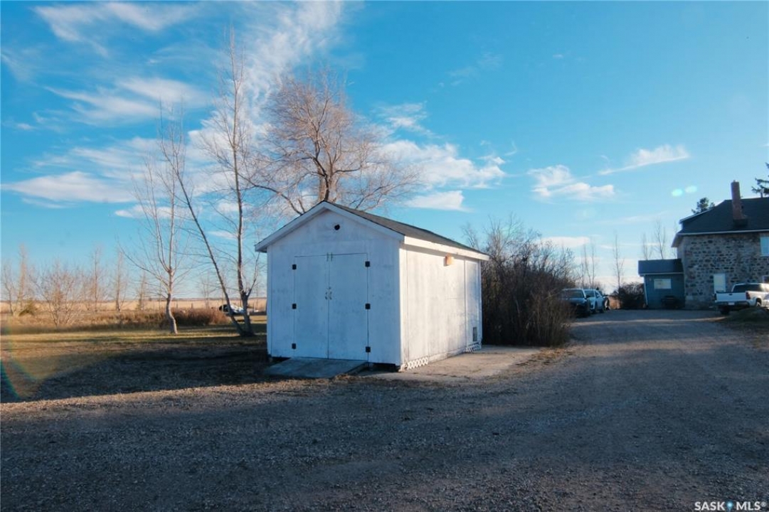 Steeped in more than a century of family legacy, this remarkable 10-acre homestead offers a rare opportunity to own a true piece of prairie history. The impressive 3,697 sq ft stone home welcomes you with a spacious vestibule and features 5 bedrooms, 3 bathrooms, an updated kitchen, a large second-floor laundry room, and a beautiful third-floor primary suite with stunning sunrise views. The well system includes a softener, iron removal, and reverse osmosis. The iconic 100' x 36' barn, complete with an architectural metal roof, remains a community landmark whose upper loft once hosted gatherings and celebrations for neighbours from miles around. Historical tack will remain, and the barn is equipped with a cistern for rainwater collection and a manual water feeder leading to the fenced pasture. Additional features include an original outhouse, metal and plastic play structures, and a heated 1972 shop with gas heat and 220V power. Ten usable acres provide ample space for livestock, gardening, recreation, or simply enjoying the peace of rural living. Located just 13 km from Wolseley, with K–12 schools and the charm of small-town Saskatchewan life nearby.