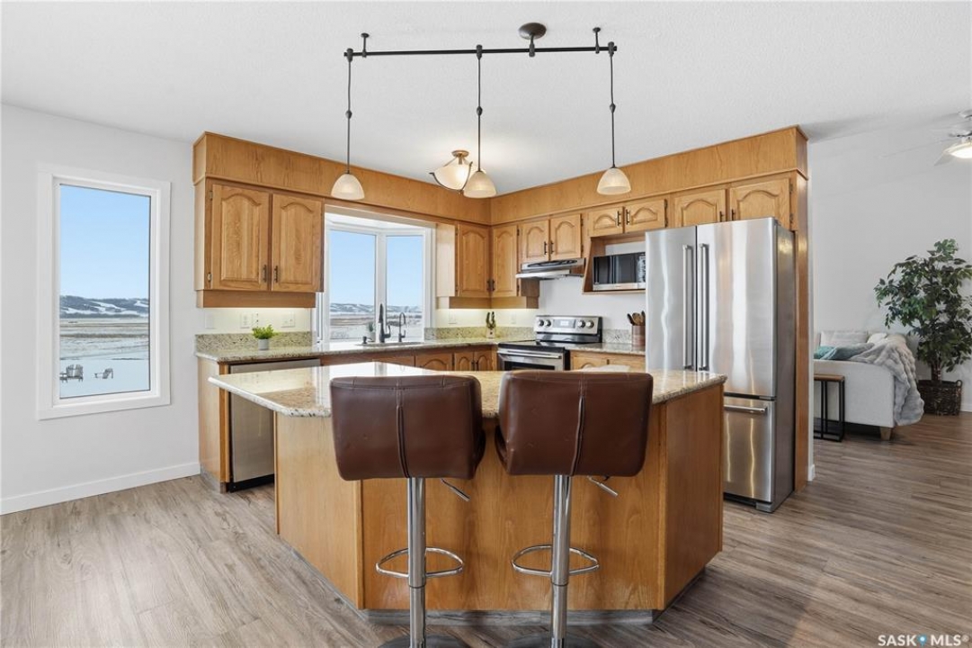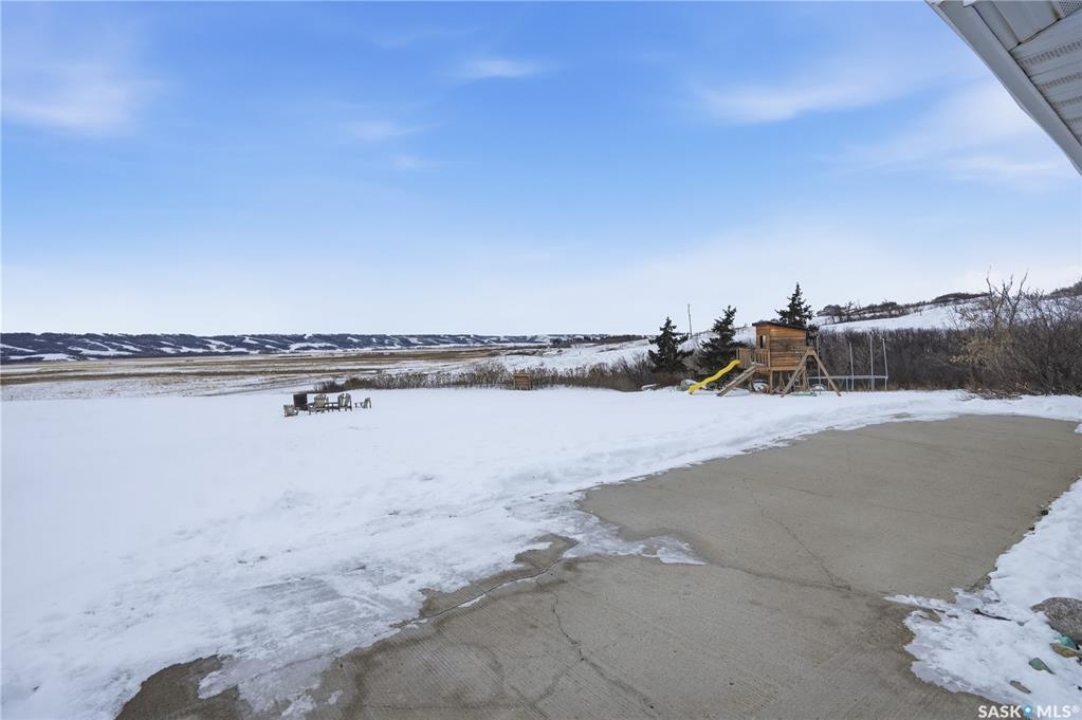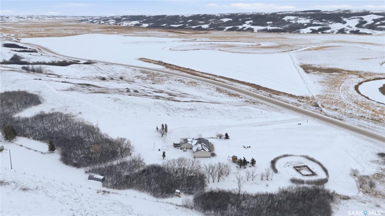 Beautiful 1,524 square-foot bungalow set on 24 scenic acres of valley hillside, offering stunning views of the Lumsden Valley. The home features a large kitchen with spacious eating area, an abundance of cabinetry with built-in dishwasher, granite countertops and backsplash, a center island , stainless steel appliances, and a reverse osmosis system. The fridge was updated in 2023 and the dishwasher in 2021. The main floor offers three generous bedrooms, including a primary bedroom with walk-in closet and three-piece ensuite. New flooring and paint were completed in 2020. The living room boasts a vaulted ceiling, new blinds installed in 2021, and updated windows and living room door completed in 2023. A huge laundry, storage area, and foyer is conveniently located on the main floor with direct entry to the heated garage. The basement features a massive family room, two additional bedrooms, a bathroom, dedicated storage area, and one large unfinished space. New basement windows have also been added. Additional upgrades include a furnace and air conditioning system installed in 2019, new garage door, and garage heater. The front of the property has been enhanced with new concrete and fencing, and the nicely landscaped yard complements the well-treed acreage. Steel roof, The land offers a blend of private open spaces and excellent potential building sites for future outbuildings. A truly impressive acreage property—call the seller's agent today for your own private viewing.