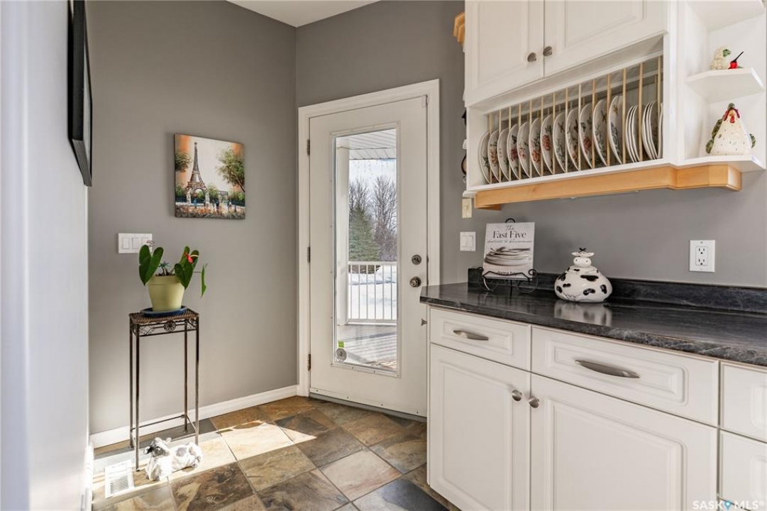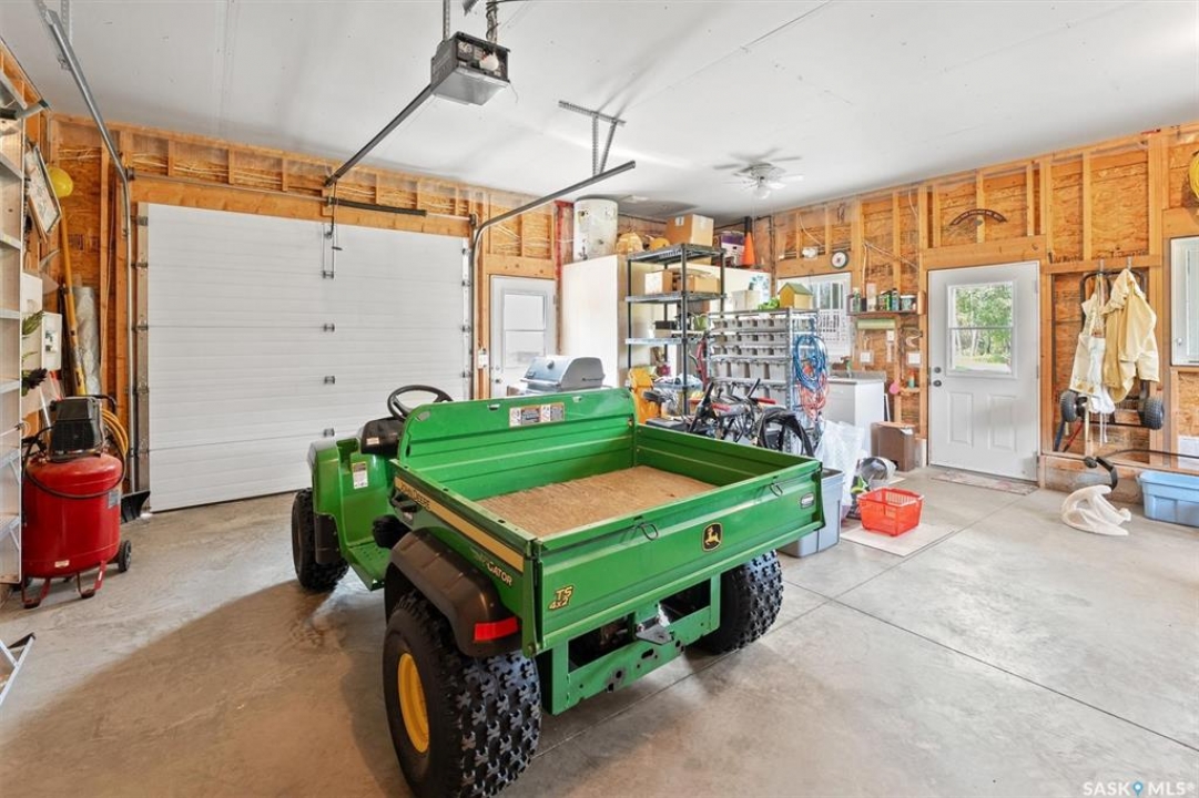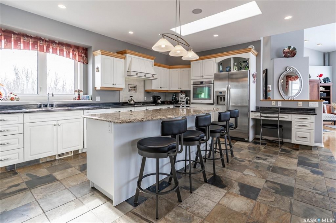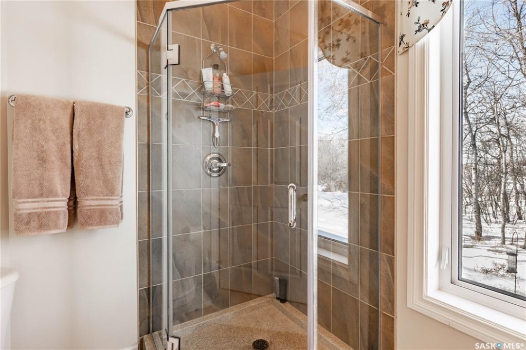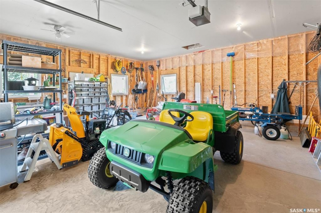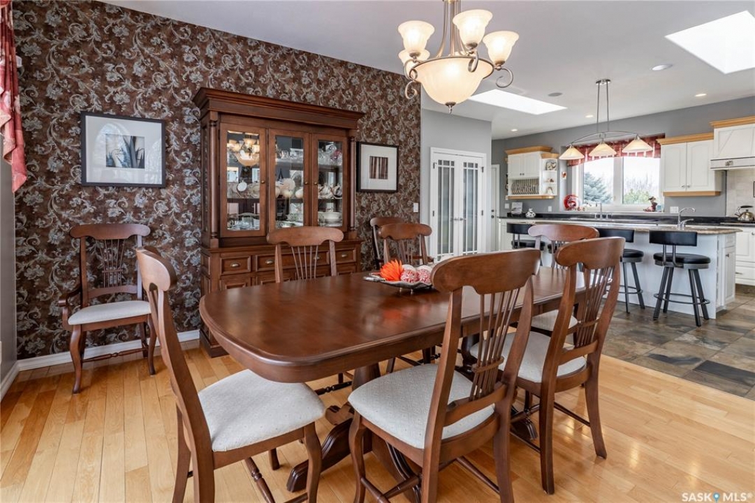 Welcome to The Meadow, 80 acres of pure serenity on the southeast doorstep of Saskatoon. This peaceful paradise offers the privacy and tranquility of country living, just minutes from Costco and Greenbryre Golf & Country Club. This sprawling, custom-built Ehrenburg bungalow is designed for comfort, beauty, and connection to the nature. The grand front entry welcomes you with soaring vaulted ceilings and a sweeping sense of space. The centerpiece of the great room is a stunning wood-burning fireplace, creating a warm, inviting atmosphere enhanced by floor-to-ceiling windows that frame breathtaking views of the wilderness waiting for you out your back door. White oak hardwood gleams throughout the main floor, paired with slate tile in the foyer and kitchen. The spacious kitchen features a large 8-foot granite island, gas stove, built in oven, ample cupboard space, and easy flow into a turret-shaped sun porch—perfect for morning coffee or sunny, lazy afternoons. This south-facing gem is flooded with natural light and designed to make the most of every season. The main floor also includes laundry, three well-appointed bathrooms, and three bedrooms. The primary bedroom offers a peaceful retreat, complete with a three-piece ensuite and a private turret-shaped sunroom for year-round quiet moments of rest and reflection. Additional features include a heated double attached garage and a wide single detached garage with shower and bathroom facilities—an ideal workshop with ample space for storage and tons of room for any project. The full basement is ready for your custom development, with in-floor heating lines already roughed in. Whether you're looking to raise a family, escape the city, or simply enjoy life in harmony with nature, The Meadow delivers the best of all worlds—privacy, space, and proximity to everything you need. Must be experienced to be fully appreciated. Call your favourite Realtor � to arrange a private viewing today!