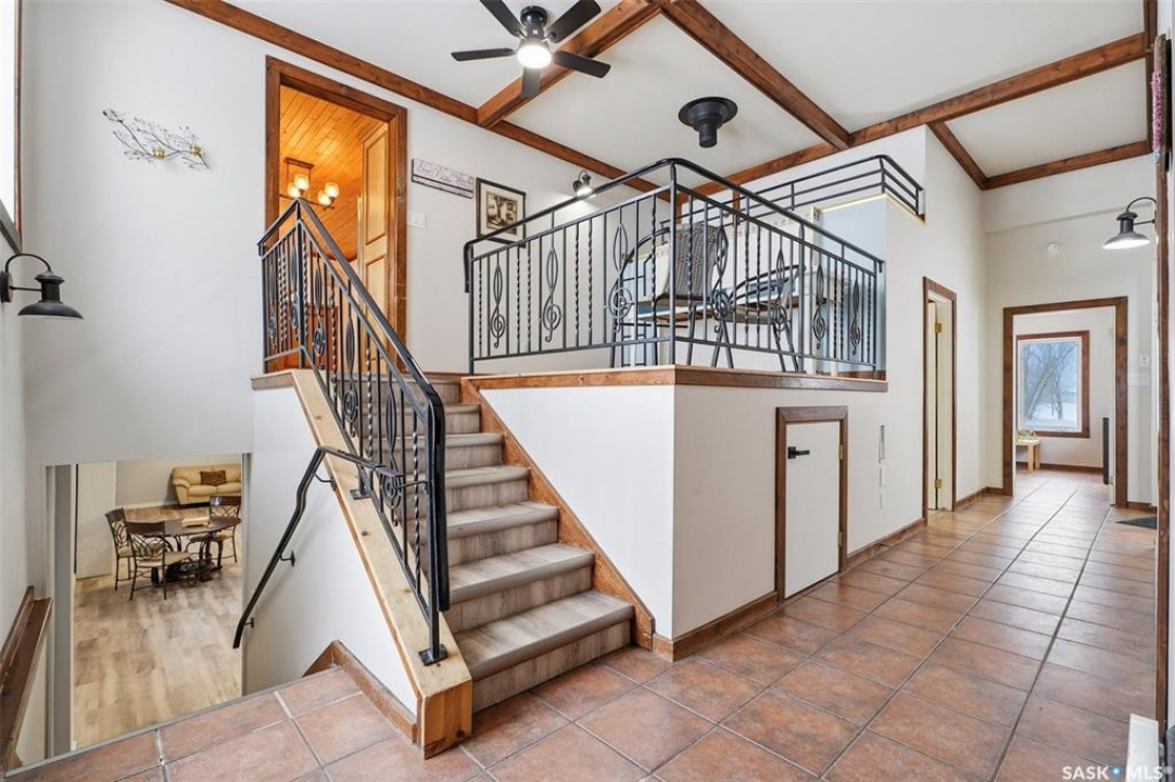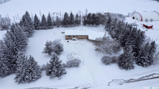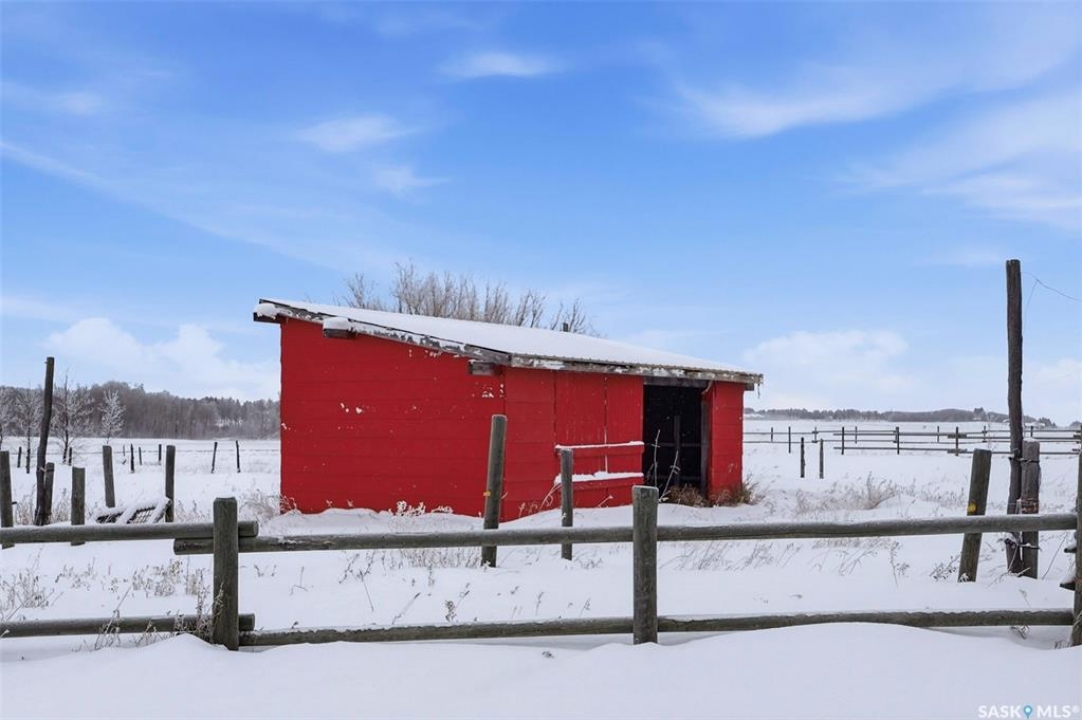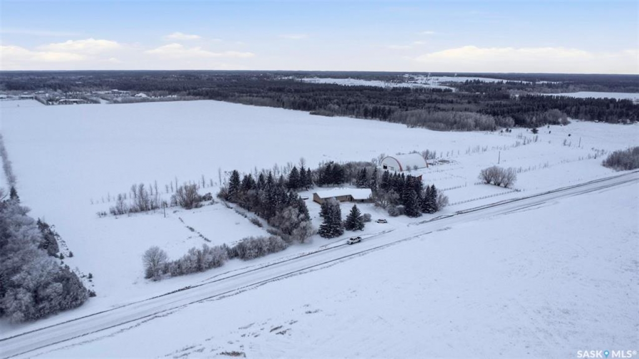 Set on 14.97 acres just minutes west of Prince Albert, this McLeod Road acreage offers the space, privacy, and freedom of true country living - without being far from town. Mature trees provide an excellent shelter belt on three sides, while open land to the east delivers beautiful sunrise views. The home features a unique and functional layout, ideal for acreage life. You're welcomed through a bright foyer with ceramic tile and in-floor heat, set on a slab and designed to handle real life - muddy boots, busy days, and all the gear that comes with country living. This level includes excellent storage, a combined laundry and 3-piece bathroom, and a versatile sunroom that has also been used as a bedroom. Up a short flight of stairs is where daily life unfolds, with the kitchen, dining, and living areas, along with three bedrooms and a full bathroom. Pine floors and ceilings create a warm, rustic-modern feel, while south- and east-facing windows fill the living spaces with natural light. This level is completed by a charming nook area, ideal for a home office, music space, or play area, with additional storage below and an enclosed loft above. Both the furnace and water heater were replaced in 2024 as well. Outdoors is where this acreage truly shines, with multiple outbuildings, including an approx. 950 sq ft barn with power and insulation, a large 60x80 powered coverall suitable for equipment storage or a riding arena, additional shelters and fenced areas for livestock, and a massive garden area on the south side (perfect for a u-pick or just your own harvest). With approximately 12 acres zoned agricultural and room for horses, chickens, and more, this is a well-loved family property, where the current owner was raised and later raised their own family. If you're seeking space, privacy, and true acreage living, this McLeod Road property is ready for its next chapter. You've got to see this one to truly appreciate all it has to offer.