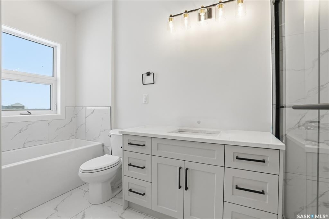 Welcome to this brand new under construction Modified Bi-level home located in Cardinal Estates which is about 14 minutes from Saskatoon city limits. This home offers about 1700 sq ft living space. The main floor offers open concept floor plan, dining area, living area with fireplace, modern light fixtures, White Vinyl windows with triple pane. The modular kitchen offers kitchen backsplash & quartz countertops. On the main floor you will find 2 good sized bedrooms & a 4pc bathroom. Also located on the main floor is the rough in for laundry. Head your way to level 2nd where you will find the master bedroom that offers a 5pc en-suite. The basement is undeveloped & is waiting for you to add your imagination. The home comes with a Covered deck. The property has a triple car attached garage. Looking to book a private tour? Call your favourite REALTOR � TODAY for more info & to schedule a viewing. Directions: Located in Cardinal Estates
