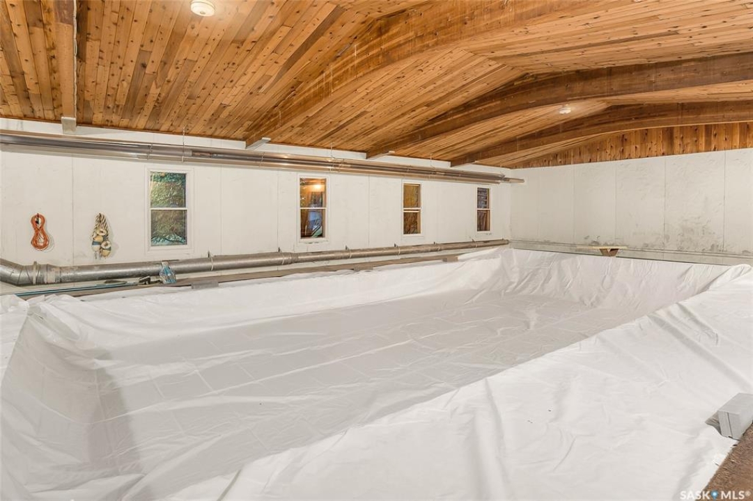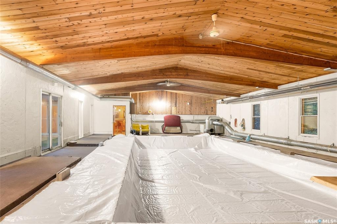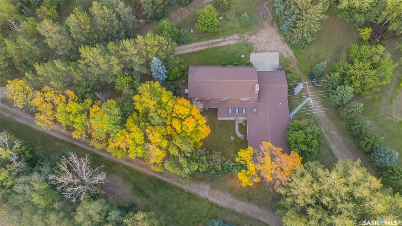 Welcome to one of Gruenthal Road's most iconic residences, a nearly 4,600 sq. ft. two-storey home built in 1977 and cherished by the same family since 1988. Sitting on 9.94 well treed and private acres with pavement right to the driveway and direct access to the double lane highway. This grand estate offers endless potential with its 16x32 ft. indoor pool and hot tub, last used several years ago but professionally shut down, presenting the rare opportunity to revive it as a private oasis or reimagine the space into a multi-purpose recreational hall for events, sports, or a massive gym. The home itself features 5 bedrooms upstairs, including a sprawling master retreat with three closets, a jet tub, dual sinks, and a six-piece ensuite with tub/shower, toilet, and bidet, while the main floor offers a large laundry/mudroom, a sunroom with skylights, wet bar, and direct access to the fenced backyard and pool room, plus a large attached heated 28x28 double garage. Carefully maintained over the years with a new boiler in 2011, shingles redone within the last 10 years, newer front windows within 5 years, central A/C, and new blinds throughout, this home is full of character with its wood-burning fireplace (never used) and timeless 70s design. The acreage is fully fenced and horse/hobby farm ready, serviced by a 200 ft. well, and includes a powered Quonset for vehicle storage plus a large stable/shop with two oversized box stalls and tack/storage rooms, making it ideal for multi purpose. With its impressive scale, rich history, and endless flexibility, this is more than a home—it is a legacy property offering privacy, space, and vision just minutes from the city. You MUST see this home!