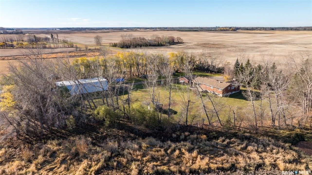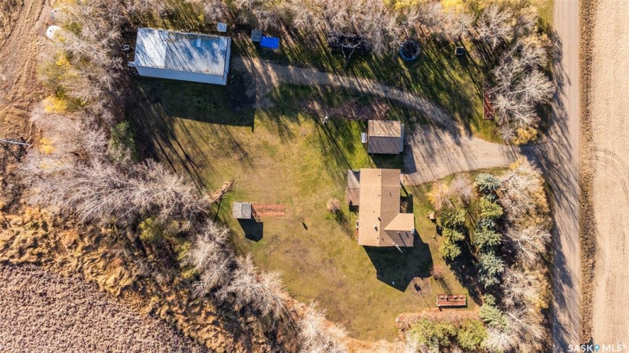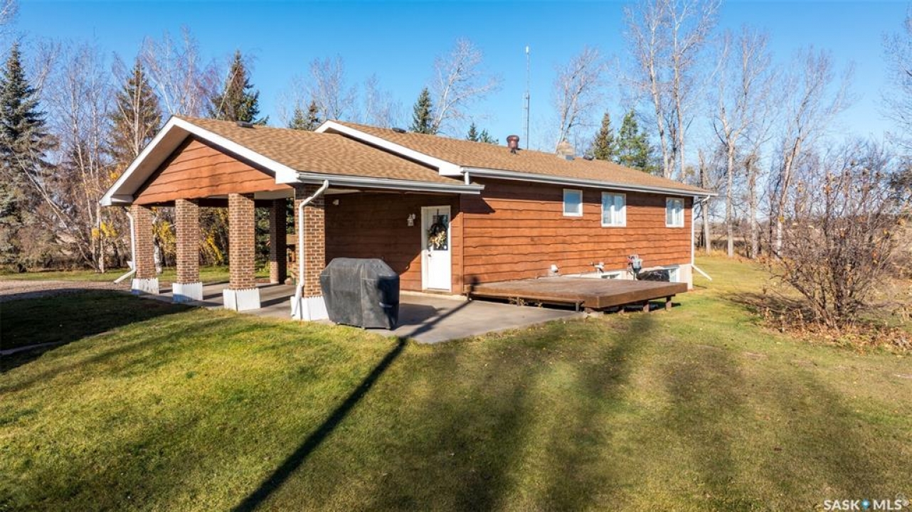 Stunning 1,364 sqft bungalow situated on 9.88 acres, just 20 minutes from Prince Albert and 10 minutes from Meath Park! This beautiful property welcomes you with sleek vinyl plank flooring throughout and an abundance of natural light. The main floor features a large living room with a nice wood burning fireplace, a spacious dining area and a bright kitchen complete with white cabinetry, stylish backsplash and stainless steel appliances. There are also 3 generous bedrooms, a 4 piece bathroom and a convenient combined laundry and bathroom with a stand up shower that completes the main level. The fully finished basement offers plenty of room for hobbies, movie nights and gatherings with family and friends, featuring an expansive family room, a 4th bedroom, a 2 piece bathroom and a utility room. Step outside to enjoy your morning coffee or unwind in the evenings on the deck or patio that is surrounded by mature trees that provide privacy and serene views. Car enthusiasts, hobbyists or anyone in need of extra space will appreciate the insulated double detached garage, carport and large quonset with concrete flooring, perfect for parking, storage or a workshop. There is also a garden area, ideal for someone who enjoys gardening and cultivating a vibrant outdoor space. The property is connected to a well water system and has a lagoon sewer system. Experience the best of country living with this exceptional property. Don't let this opportunity pass by!