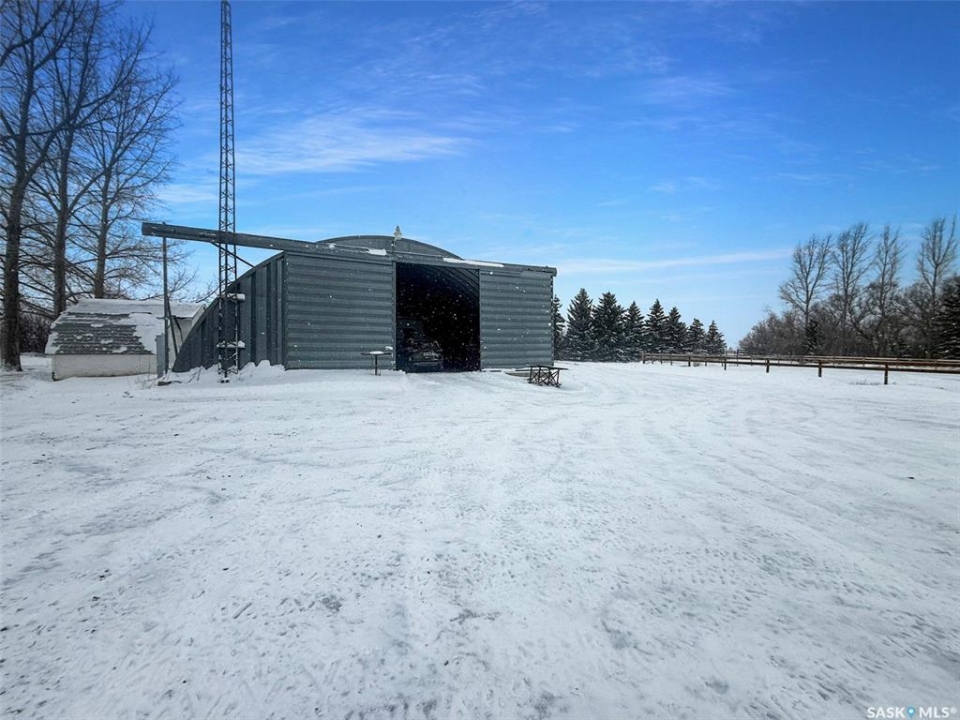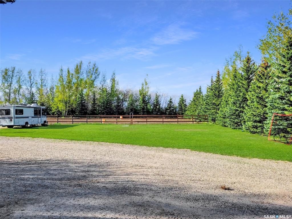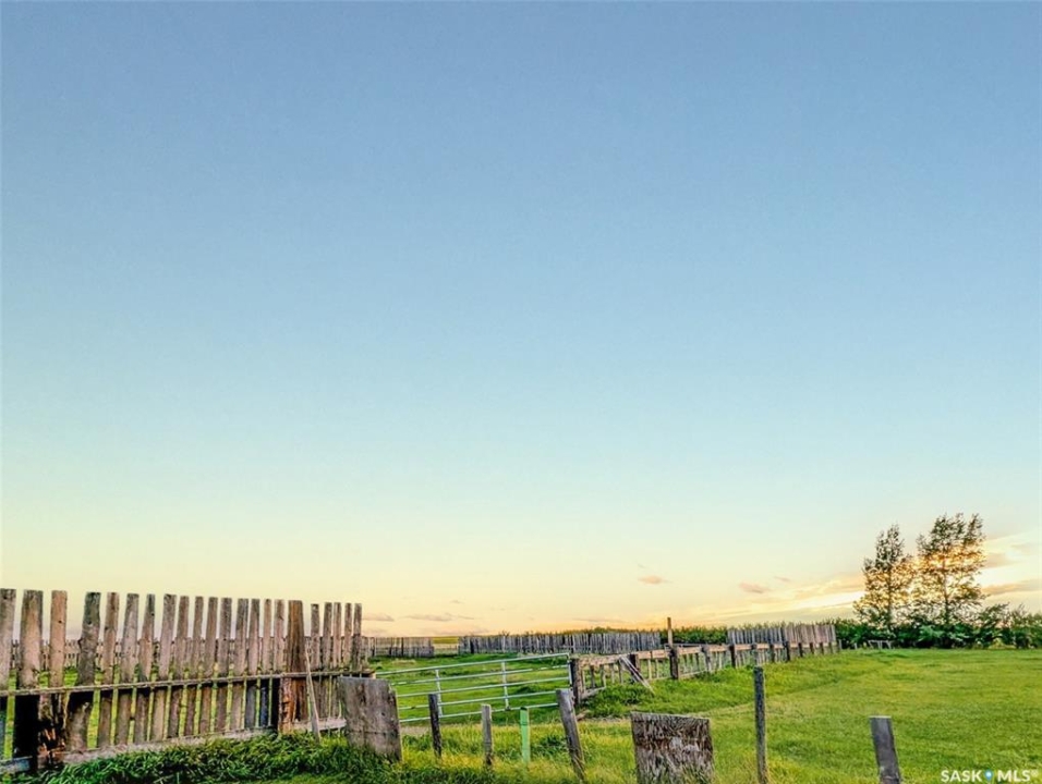 Only 15 minutes from Swift Current, this beautifully maintained 8.5-acre acreage offers a move-in-ready home and exceptional outbuildings for hobby farm or rural living. The home has been meticulously cared for and features fresh paint, updated PVC windows, new trim, some updated flooring, updated light fixtures and modern feature walls throughout. The kitchen has been refreshed with painted cabinetry, new hardware, and butcher block countertops. Enjoy a perfectly positioned window directly over the sink showcasing the fabulous yard behind. Two bedrooms, a front living room leading onto the spacious deck and large dining area complete the main floor. A convenient interior breezeway leads to an attached single garage that has been converted into a flex room(not included in the home's square footage). It is insulated, heated with an electric heater, and finished with rubber flooring—ideal for a gym, theatre room, mudroom, or additional storage. The basement offers a utility/ laundry room, family room, four piece bathroom, two additional bedrooms and an additional storage room. Outside, the property is well thought-out with a 46' x 71' quonset, a smaller barn (also suitable as a chicken coop), dog run, sheds, and excellent corrals, including a heated watering bowl. One shed houses the water hydrant and includes a root cellar. Enjoy the (almost complete) riding arena and fresh stain on the majority of the woodwork in the yard. Gardeners will appreciate the mature shelter belt, large garden area and the abundance of fruit trees and bushes, including apple, chokecherry, saskatoon, honeyberries, strawberry, raspberry, and rhubarb. The seller notes abundant, high-quality water from a shallow aquifer. Additional updates include underground power (2007), 100amp panel, shingles (2020), fibreglass septic (2007), barn electrical brought up to code (2011), and a newer central AC (1.5 yrs old), updated hot water tank, new septic pump 2025, Call today for more information.
