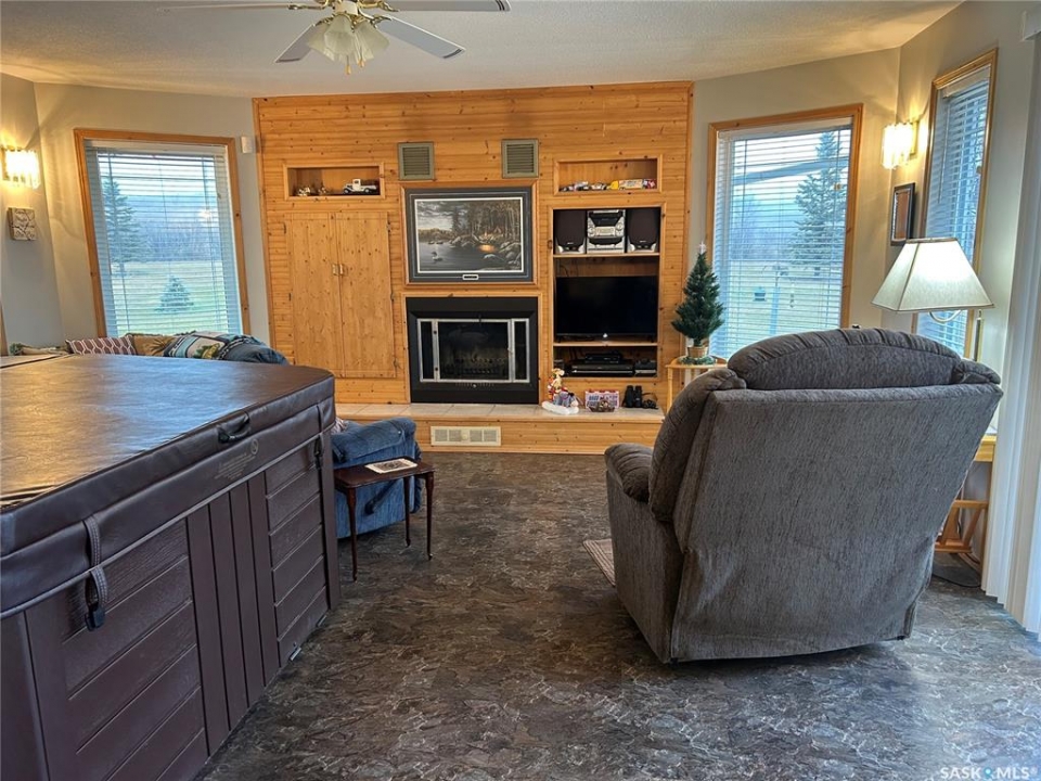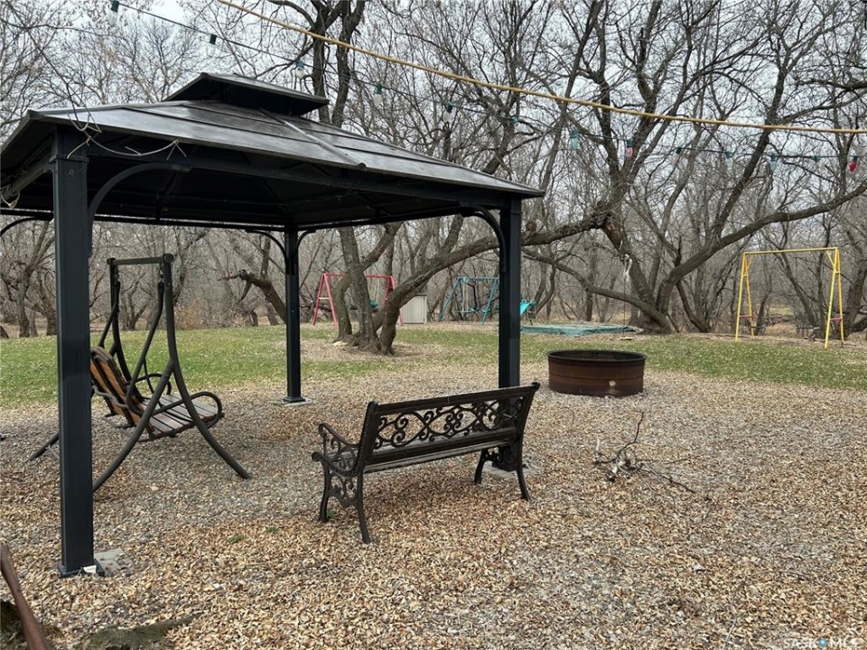 Enjoy breathtaking views of the Roche Percee Valley from this remarkable acreage just 15 minutes—entirely on pavement—from Estevan. Set on nearly a quarter section (153.45 acres), the land includes approx. 50 acres of cultivated fields, 40 acres of alfalfa, 30 acres of pasture, a beautifully treed river and bush area, the main yard site, a separate campground area, and a second powered yard site. The 1,711 sq. ft. home has an attached heated garage, and there is a detached garage, and multiple storage sheds. Utilities include power and natural gas, with water supplied by a well. The landscaped yard surrounding the home has underground sprinklers, a large back patio, two composite decks, and a natural-gas BBQ hookup on the rear deck—ideal for entertaining while taking in the stunning scenery. Built with quality in mind, the home offers fir framing at 16" on centre, fir floor joists, 6" insulated walls, and central air conditioning. Most windows have been replaced, the furnace is mid-efficiency, and shingles were updated in 2018. The home has never been smoked in and has never housed pets. Inside, the main level provides direct entry from the heated garage, a separate dining area off the kitchen, an expansive living room, and a family room complete with a wood-burning fireplace and hot tub. The spacious primary bedroom easily accommodates a king-size bed and features three closets along with a private ensuite. Two additional bedrooms and a full bathroom complete the upper level. The basement continues to impress with a family room featuring beautiful cedar walls imported from Spain, along with an additional bedroom, den, 3-piece bath, and an abundance of storage. The private campground area adds to the property's versatility, offering a screened-in tent building with a metal roof, gazebo, firepit, playground, outhouse, and metal storage shed—perfect for hosting family and friends. This a truly special rural property that must be seen to be fully appreciated.