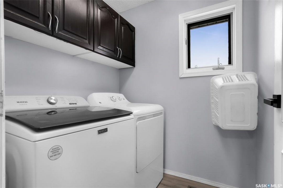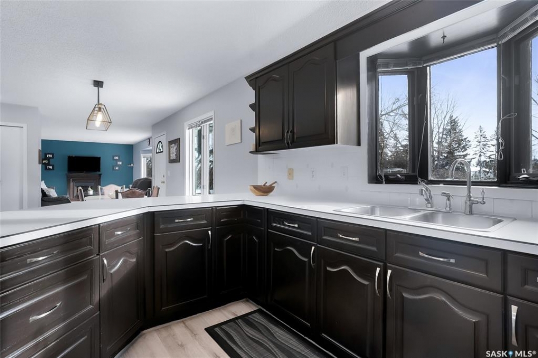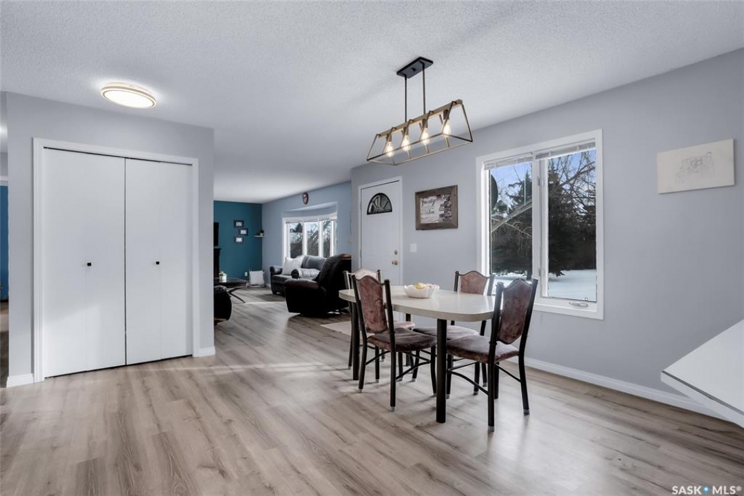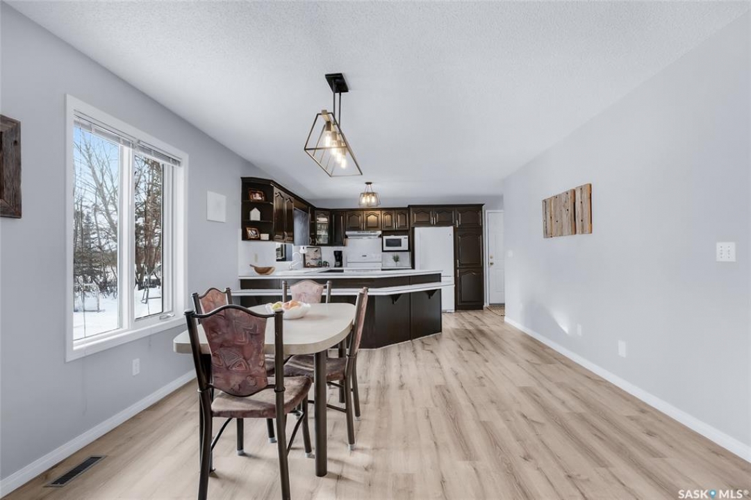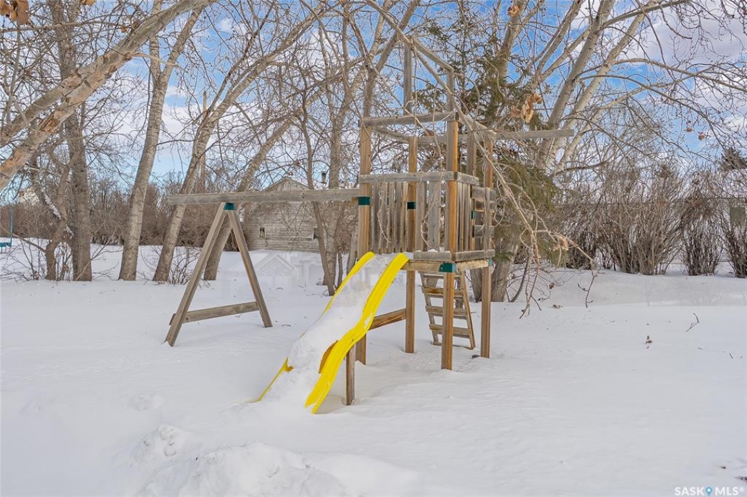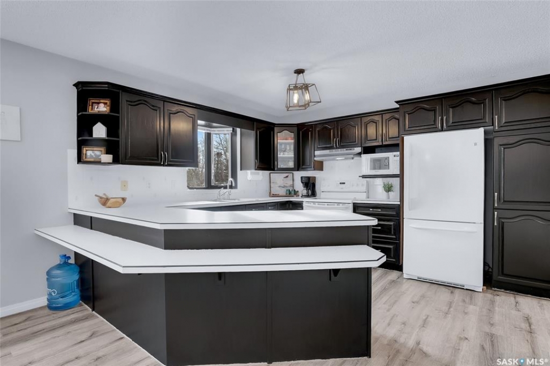 Tucked away in the RM of Rosthern on 1.58 acres, this private country property is surrounded by mature trees, wide open prairie views, and the kind of peaceful setting families love. It offers the perfect amount of space to enjoy acreage living without the heavy maintenance, with plenty of room for toys, outdoor fun, and summer days by the above ground pool. The home was built in 1996 and has seen some updates including newer paint and luxury vinyl plank flooring through the main living area. Upstairs you'll find three bedrooms, including a primary bedroom with a 3 piece ensuite, along with a full 4 piece main bath and convenient main floor laundry. The basement includes two additional bedrooms, one currently used as storage and not fully finished, with no egress windows. A 26x28 insulated detached garage adds great extra space, and the property is equipped with natural gas heat, central air conditioning, central vac, well water with an owned softener, municipal water available at the road, and a septic mound system. A quiet, comfortable acreage with privacy, nature, and those beautiful prairie country views.